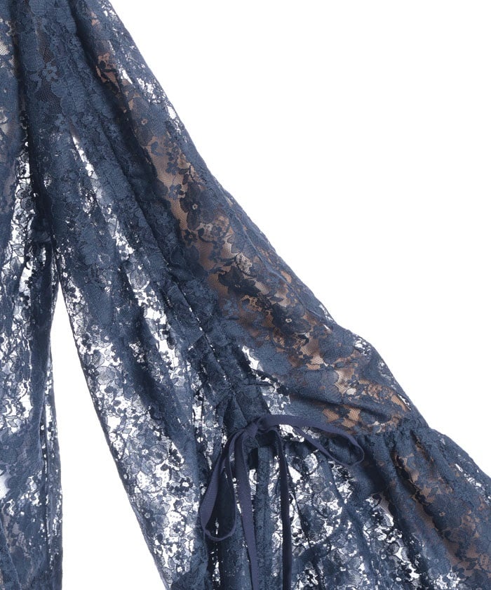 The kimono-inspired sleeves are made with plenty of lace, and feature drawstring ribbons to create a beautiful drape.