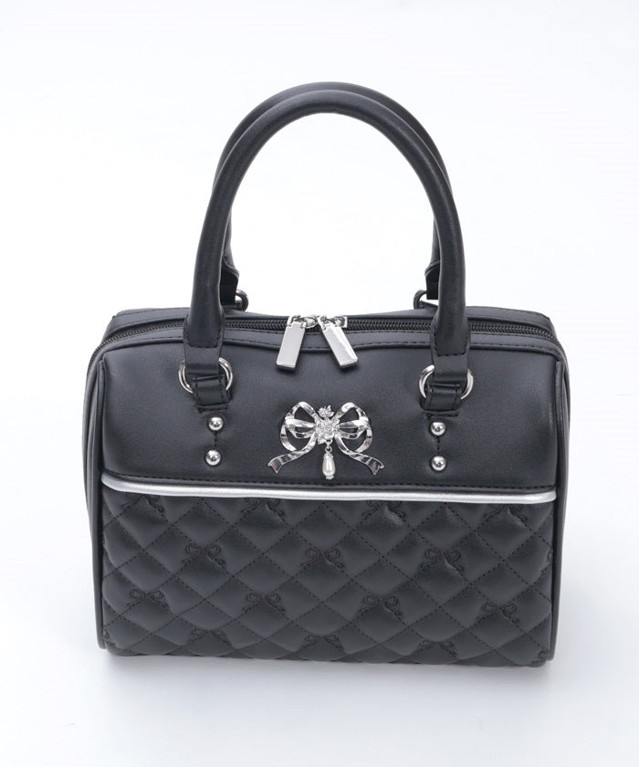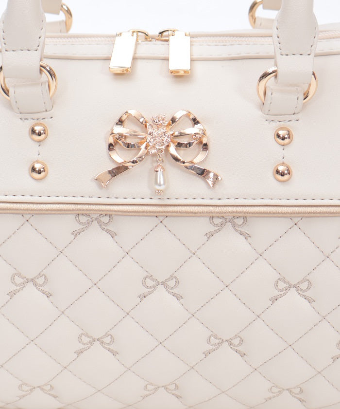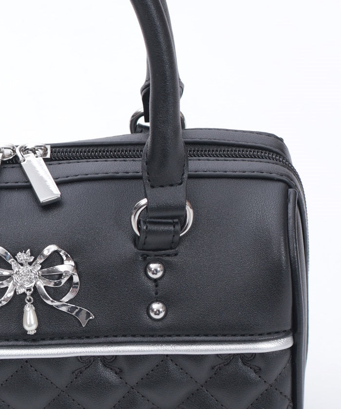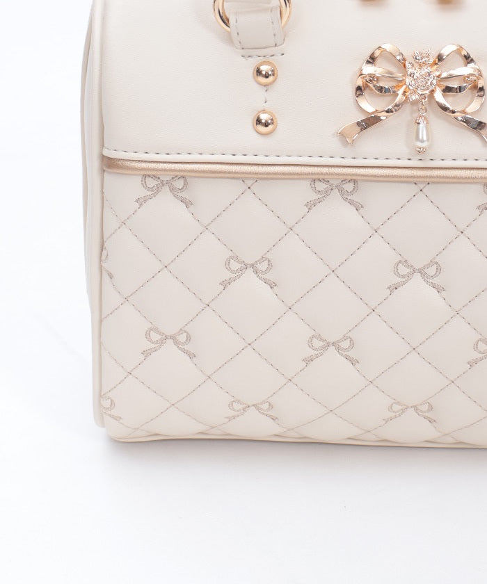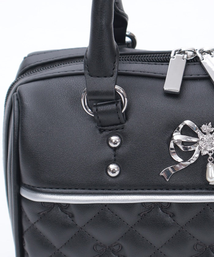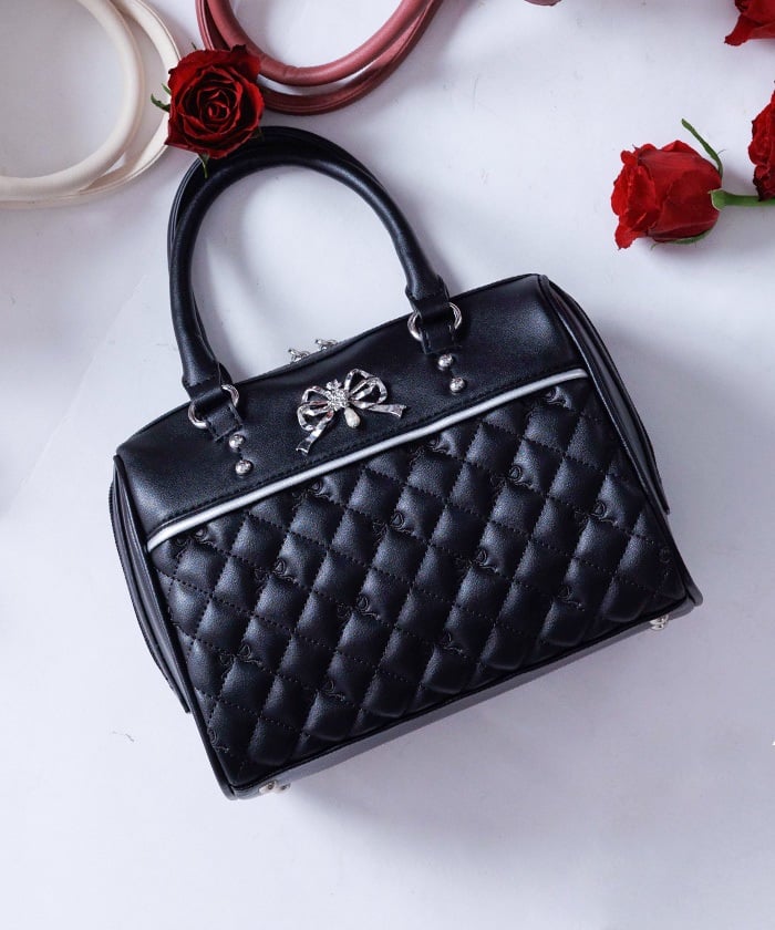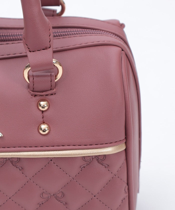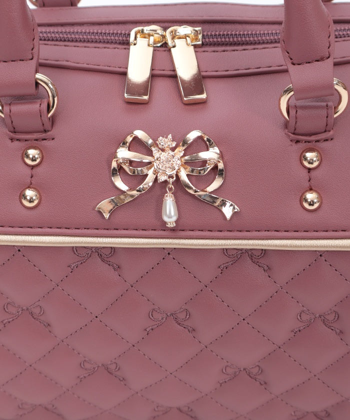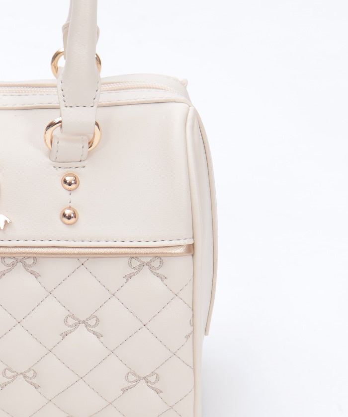 This Boston bag features a quilted design with ribbon embroidery.