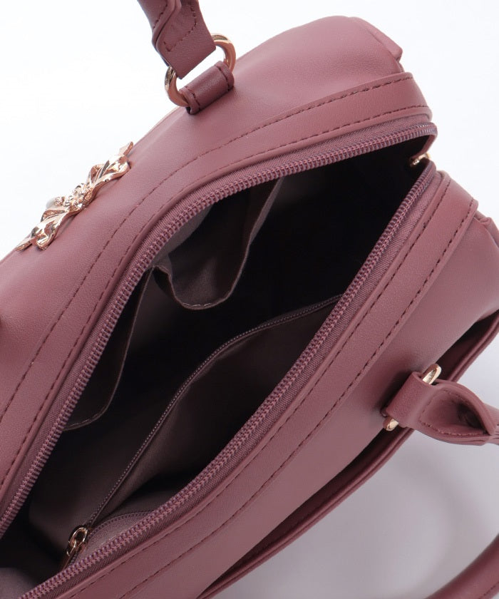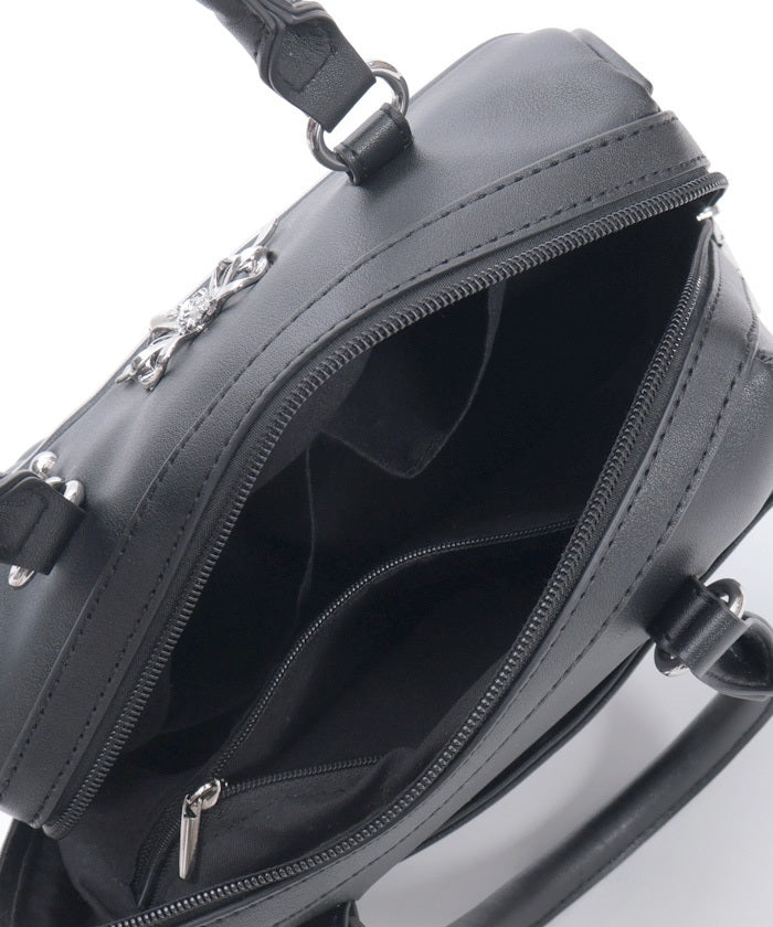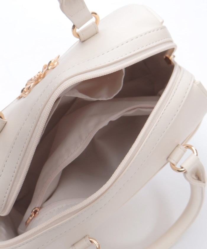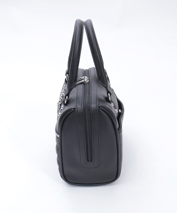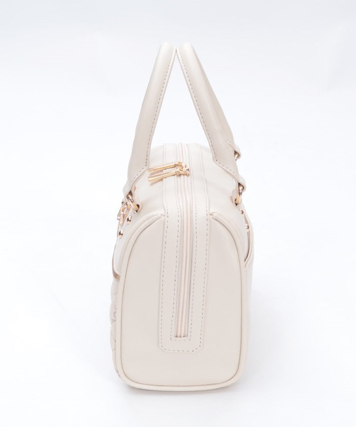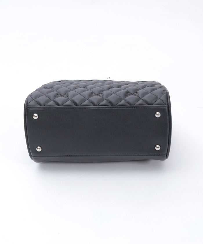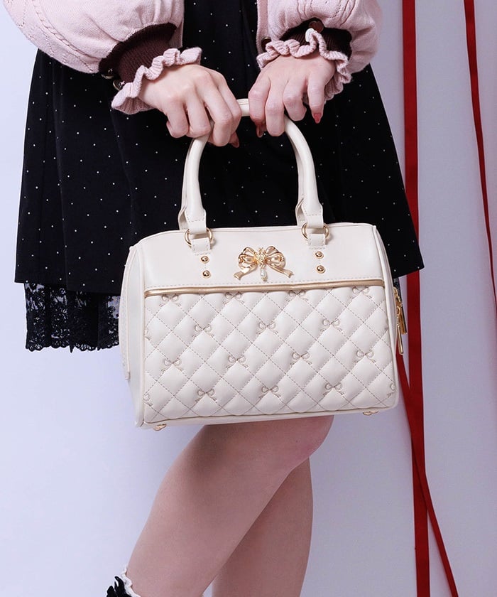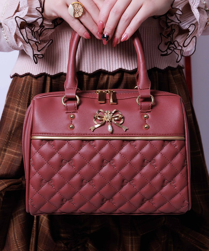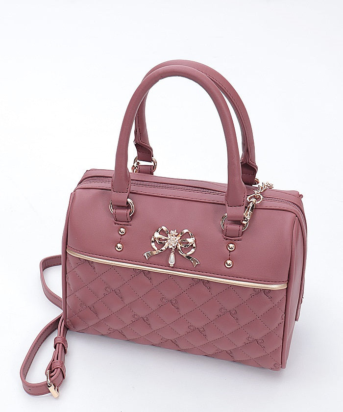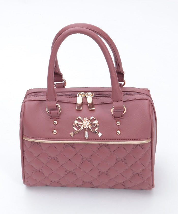 This Boston bag features a quilted design with ribbon embroidery.