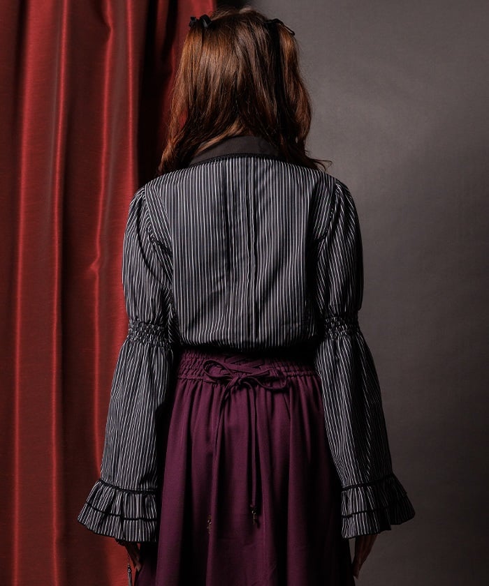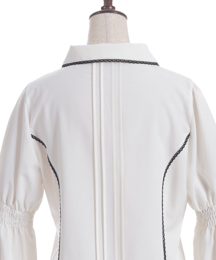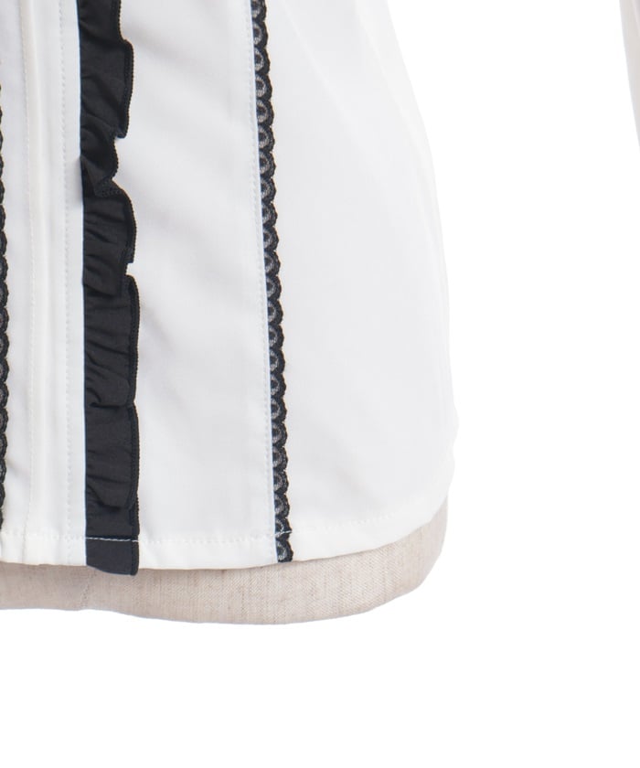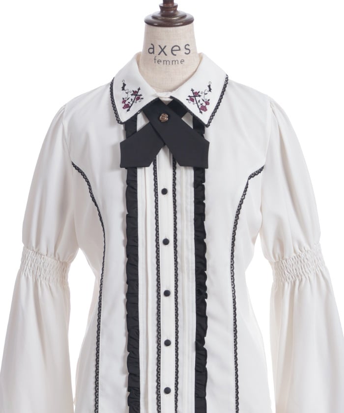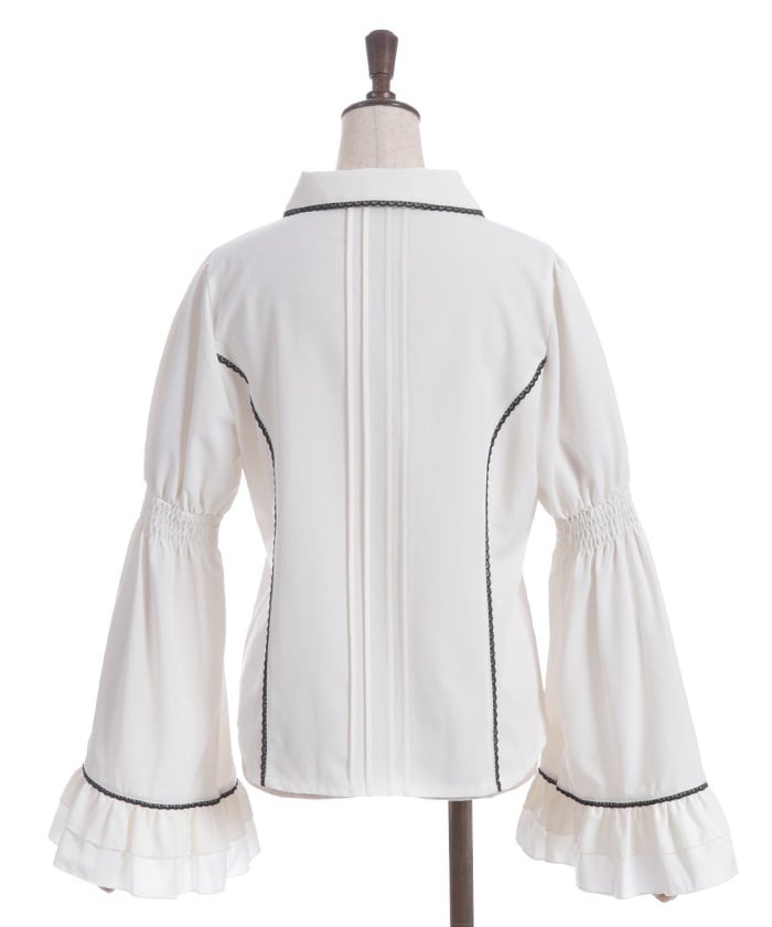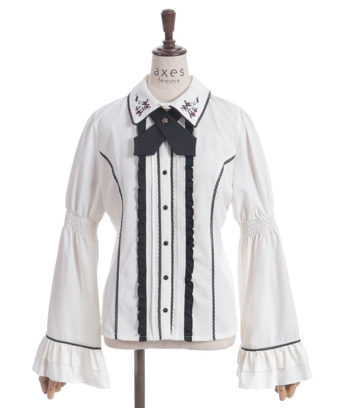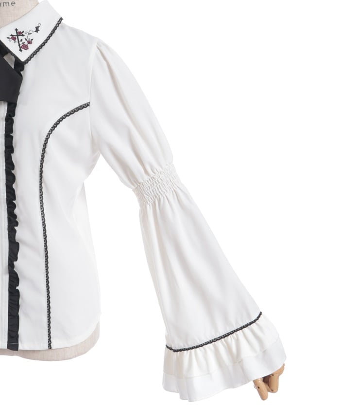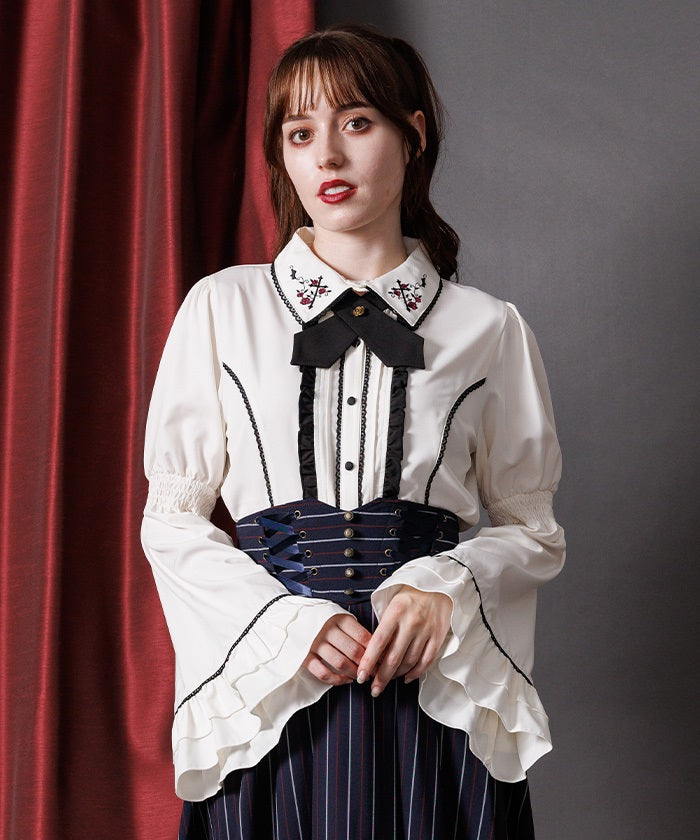 The flowing, princess-like sleeves create a classical and elegant impression. The front features frills and contrasting lines for a chic yet refined look. The detachable tie allows you to customize the look to suit any occasion and mood.