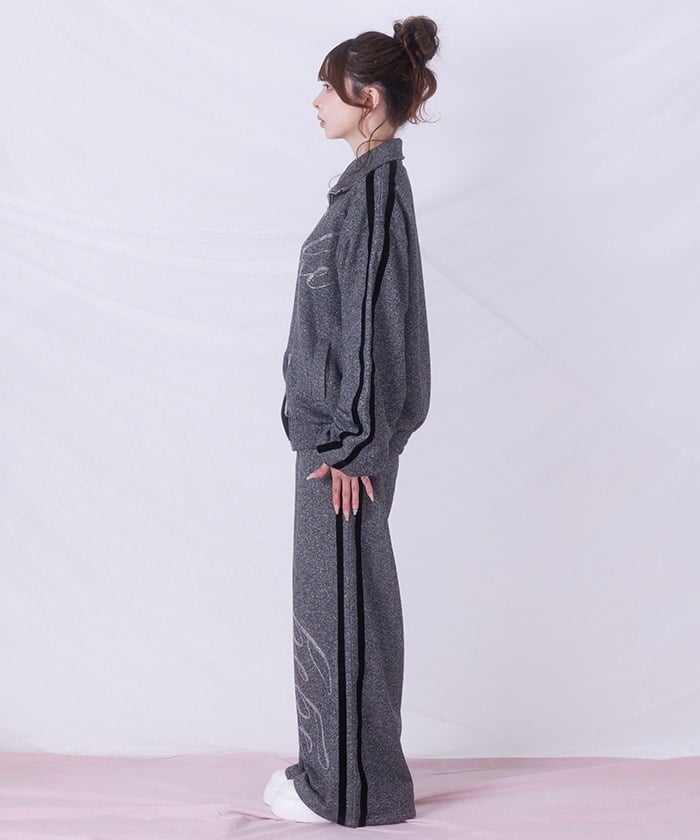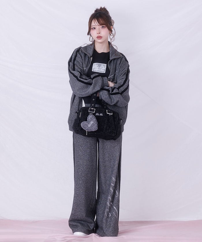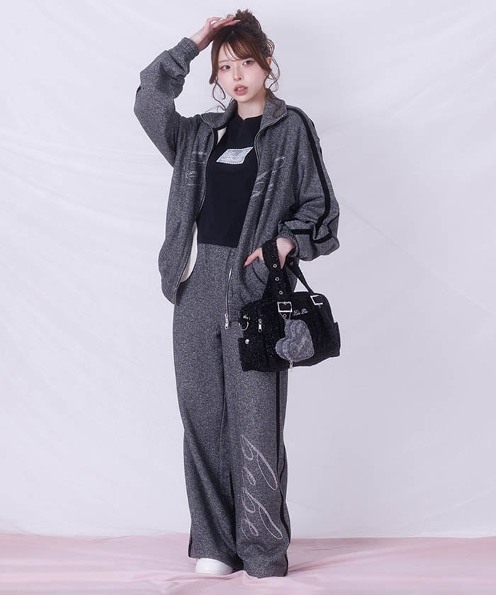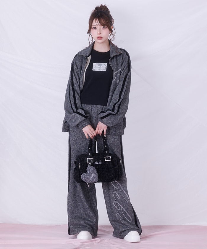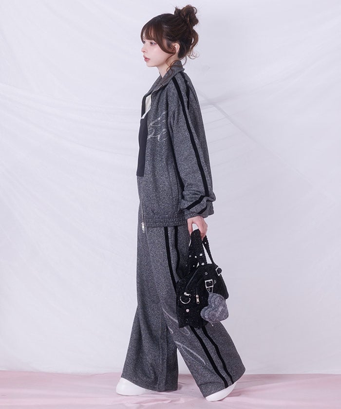 The casual sweatshirt fabric with a touch of glitter gives them a relaxed look.
