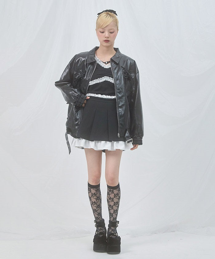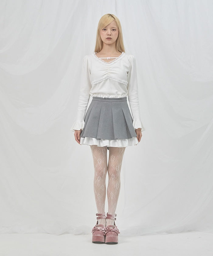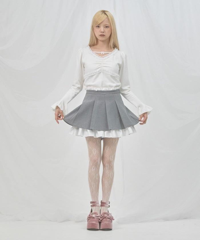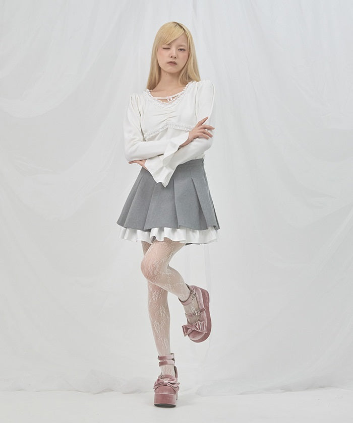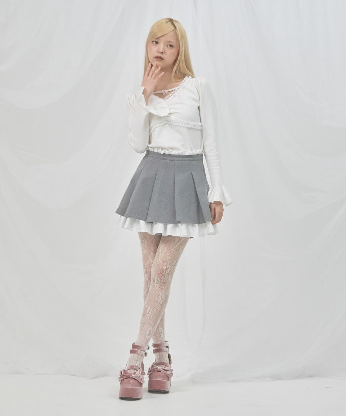 A layered skirt with soft ruffles and elegant pleats.