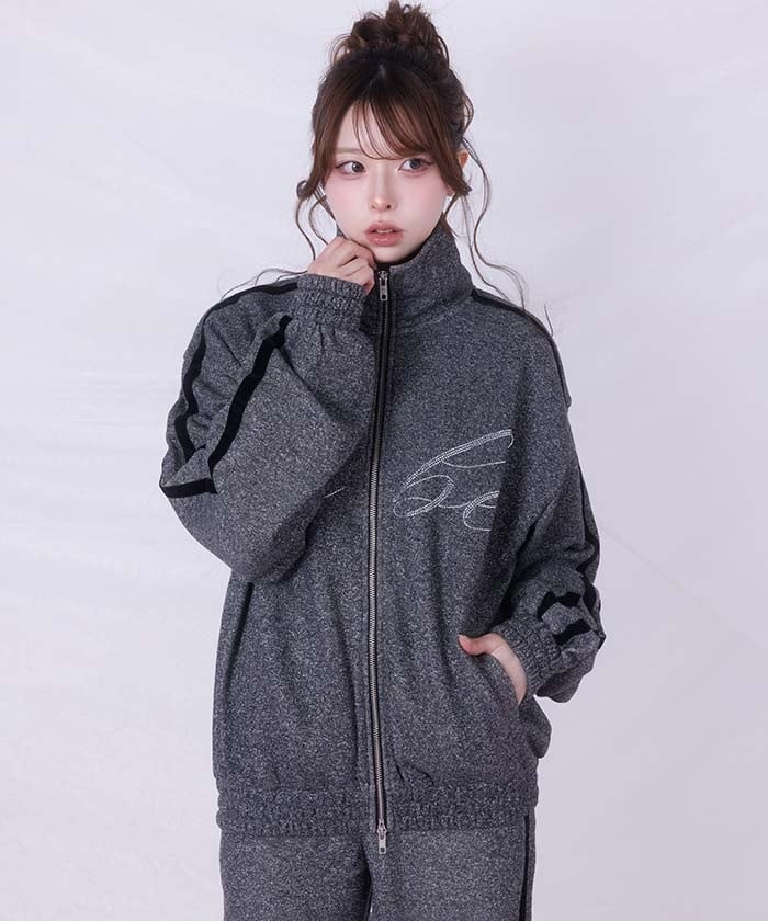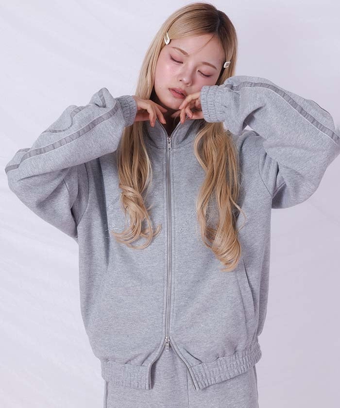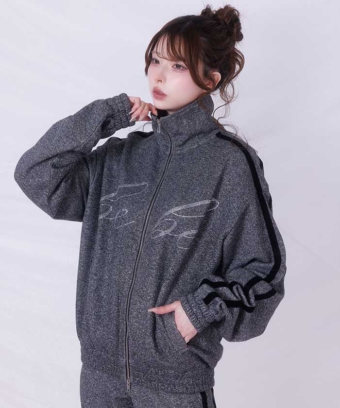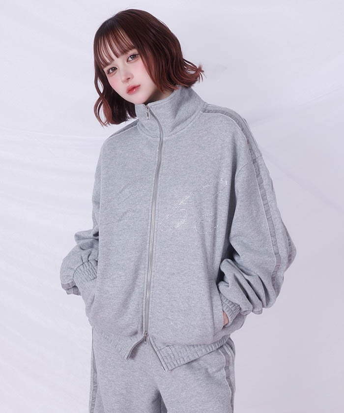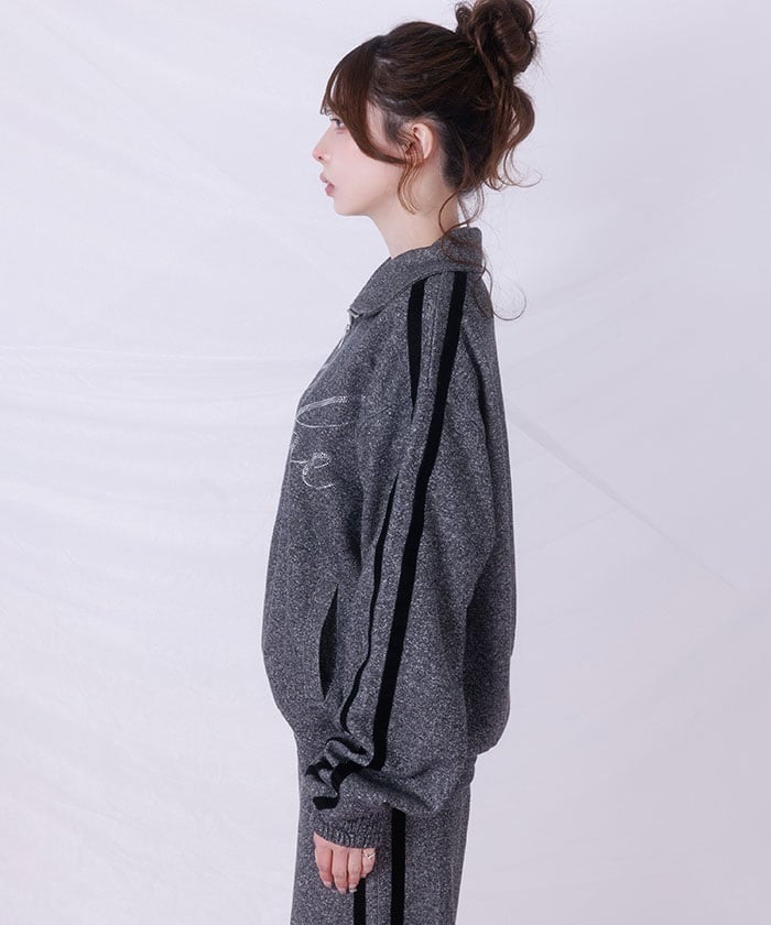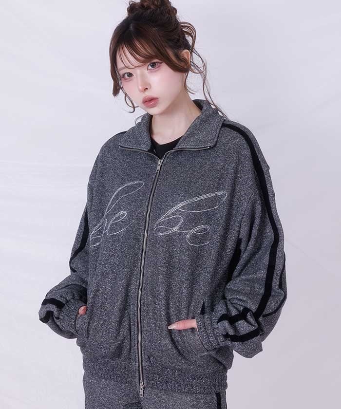 This zip-up jersey features a striking, subtly sparkling jeweled logo.