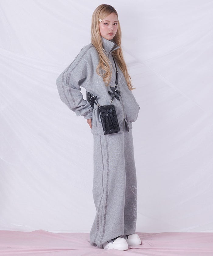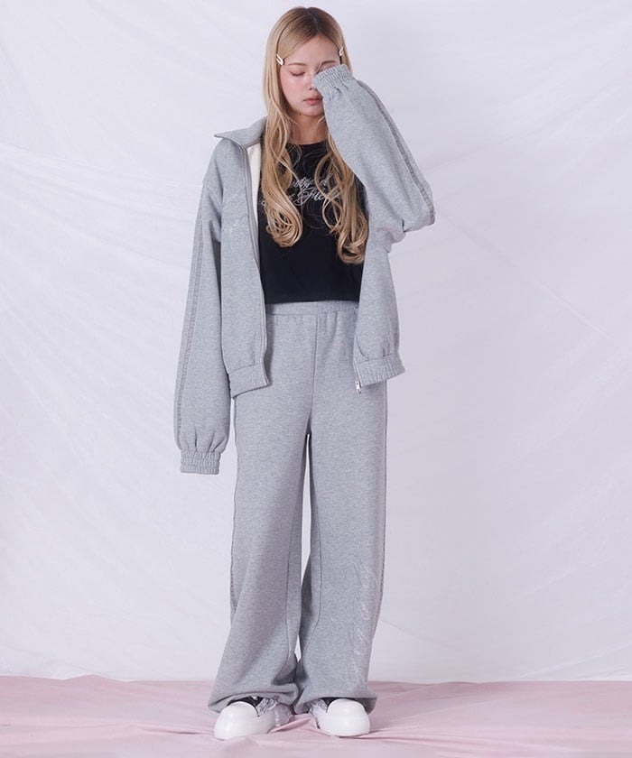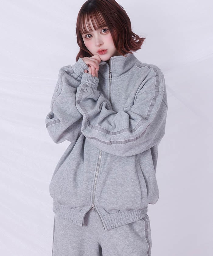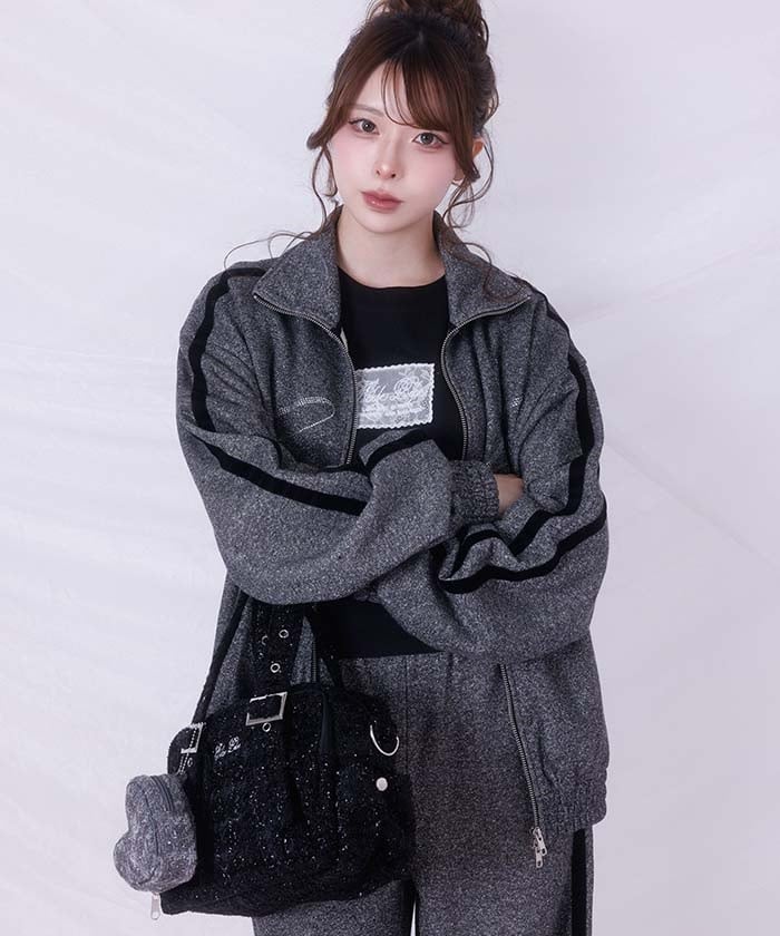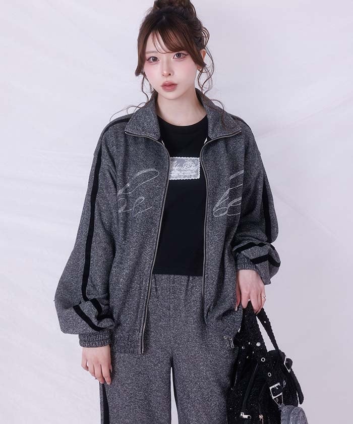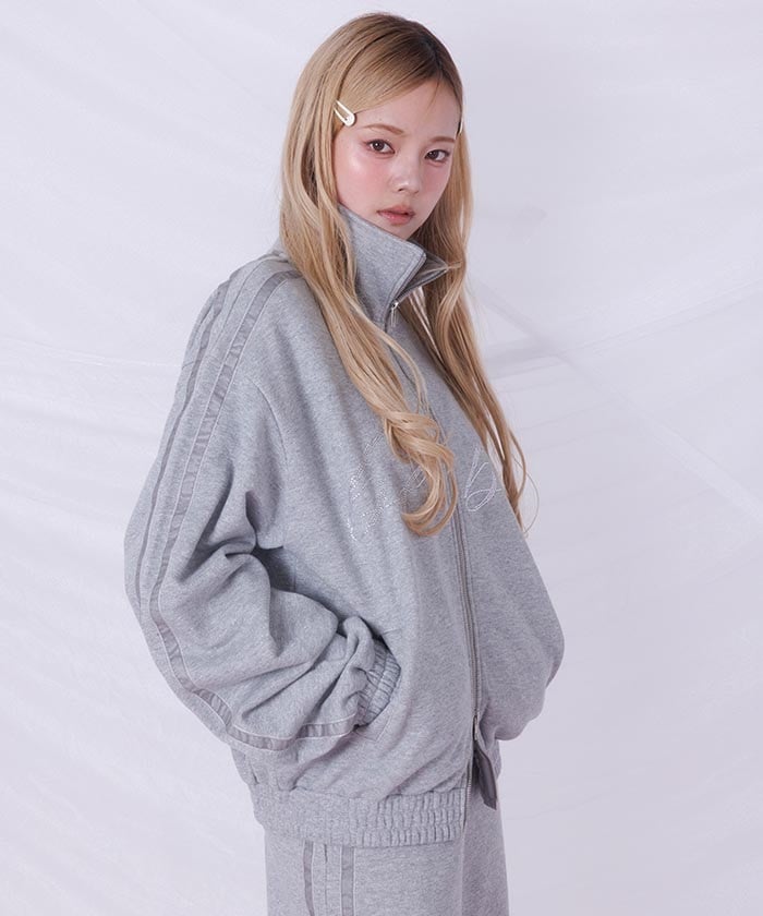 This zip-up jersey features a striking, subtly sparkling jeweled logo.