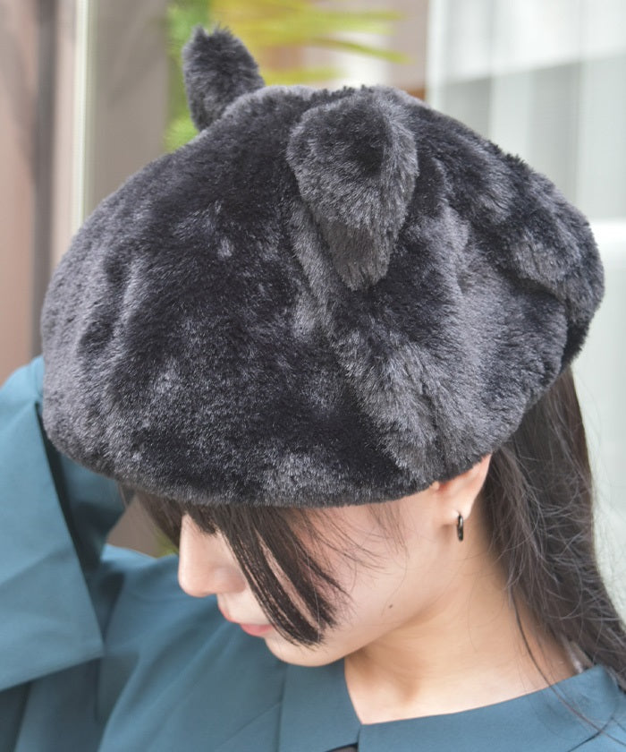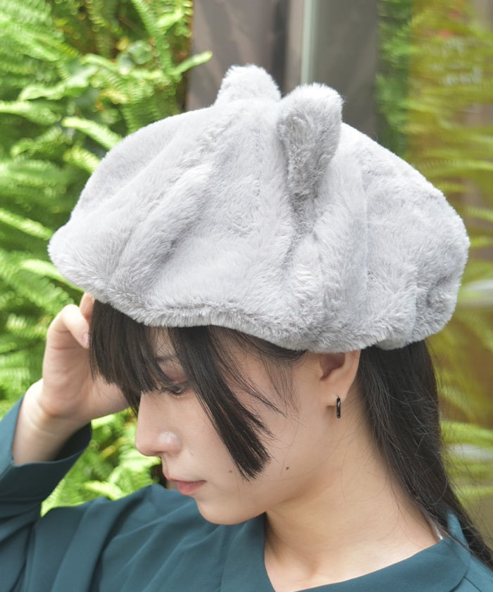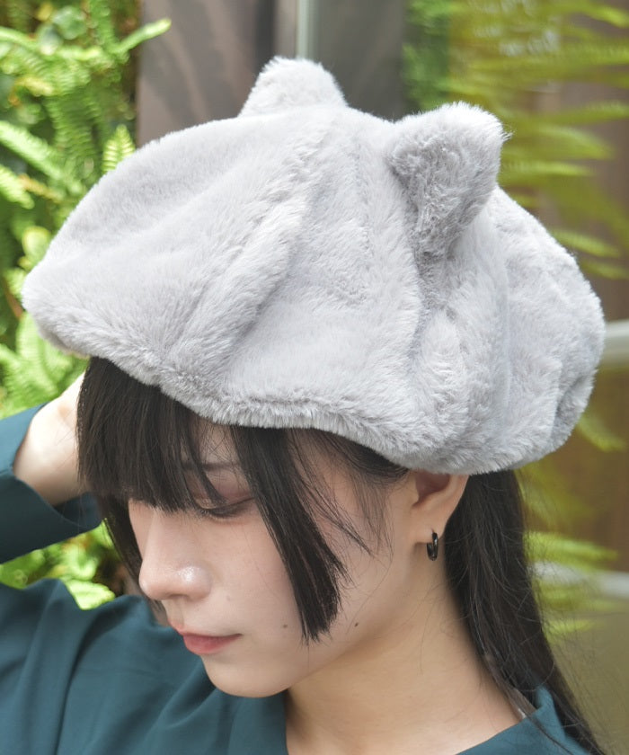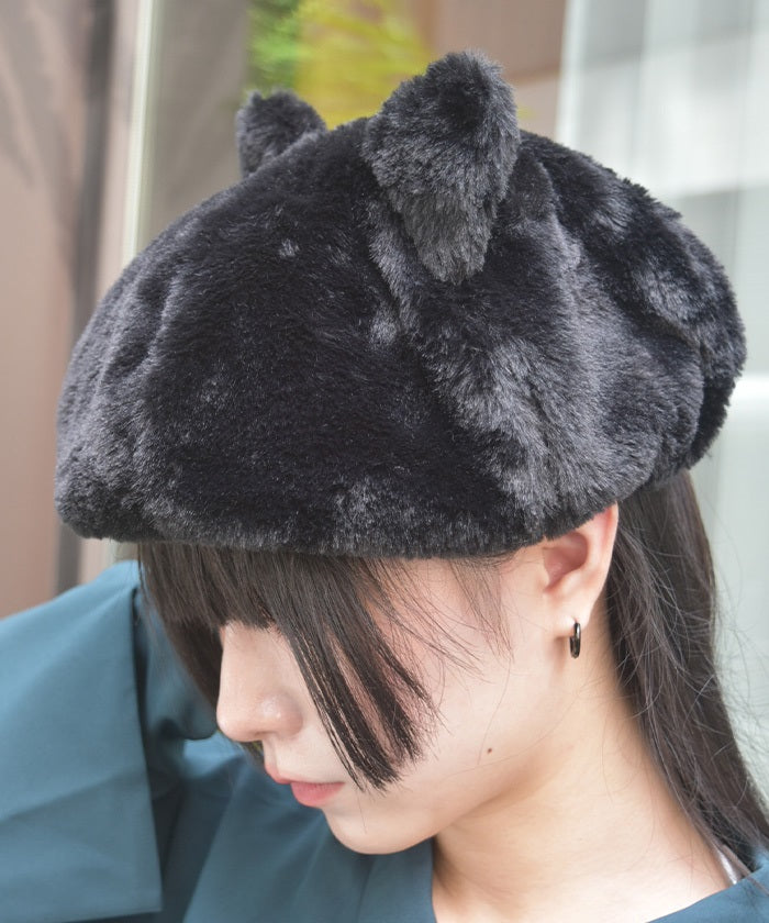 A faux fur beret with fluffy cat ears.