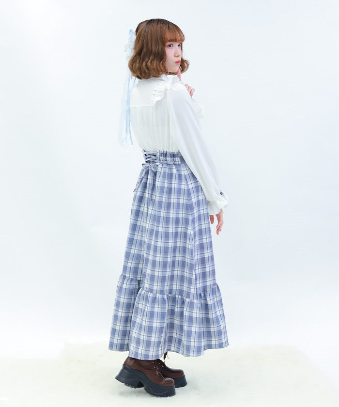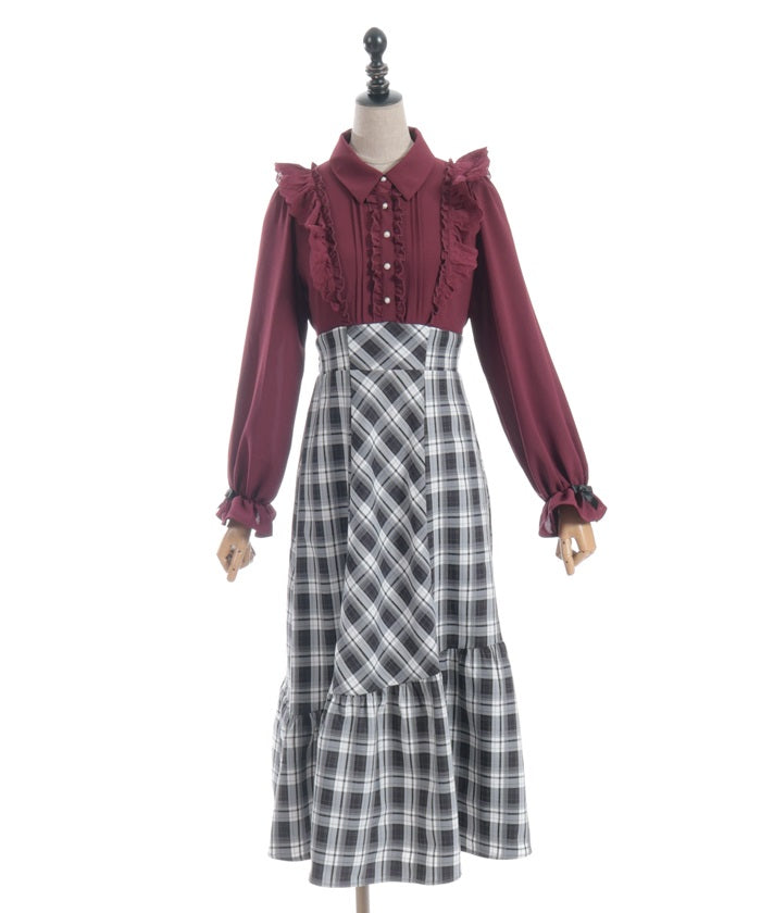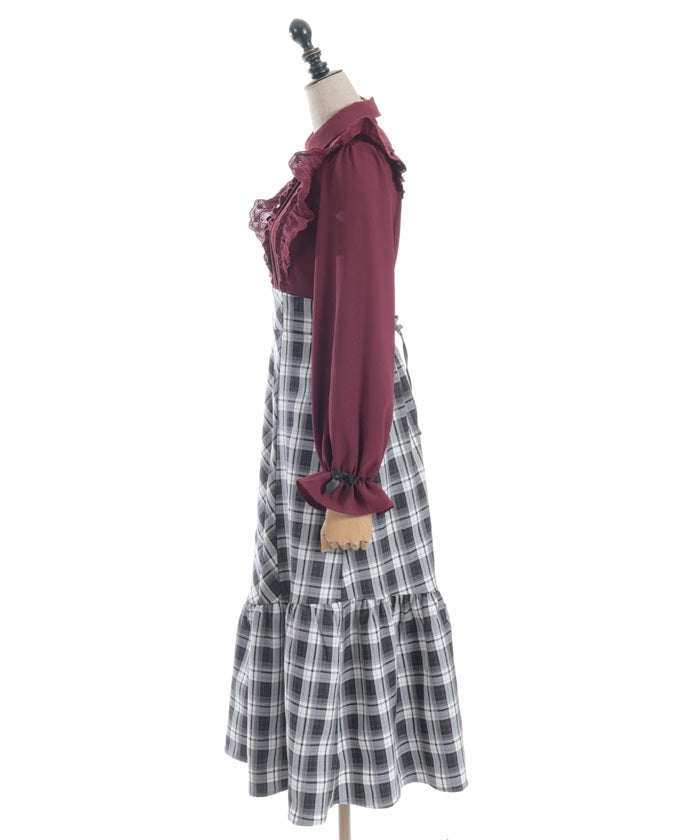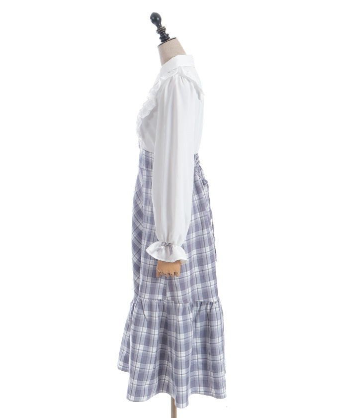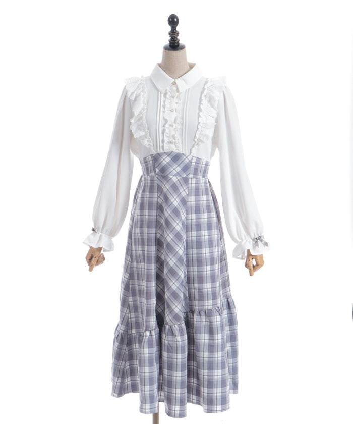 This dress has the design of a blouse combined with a long skirt.