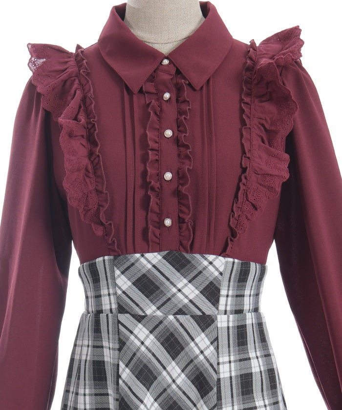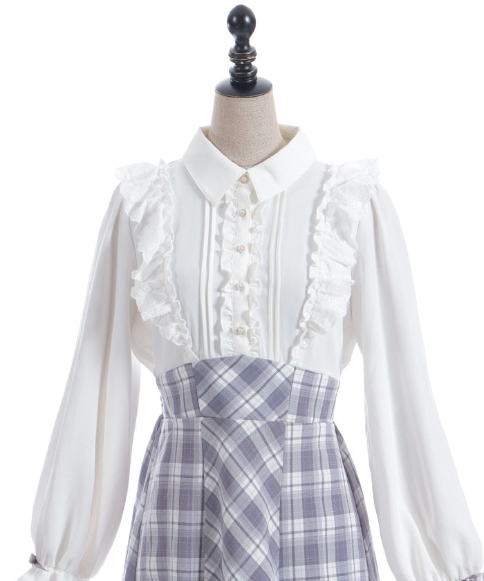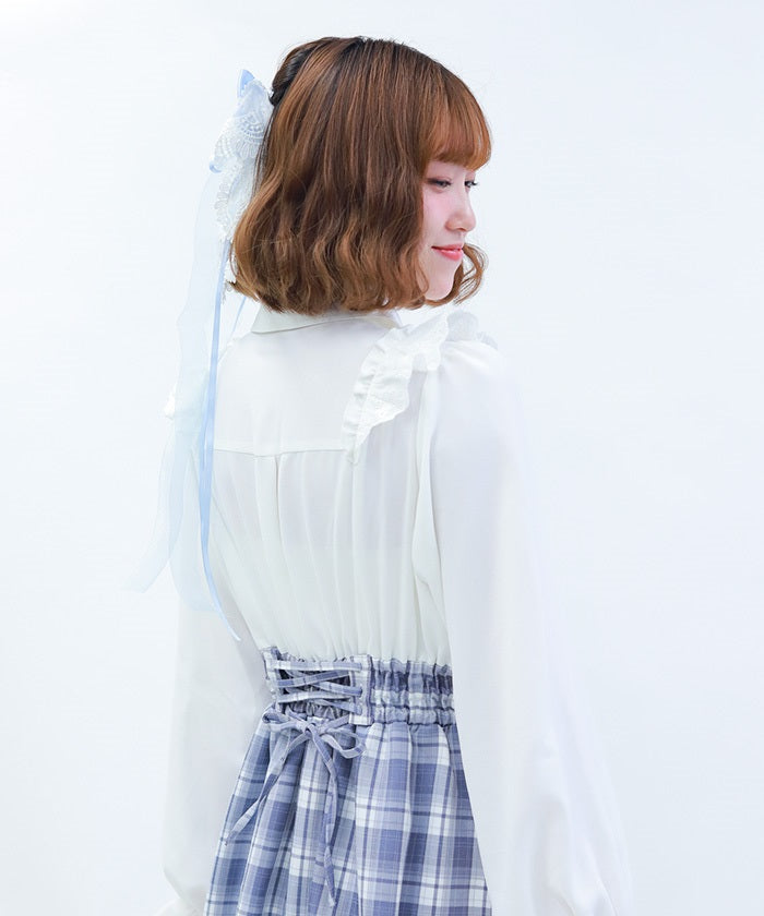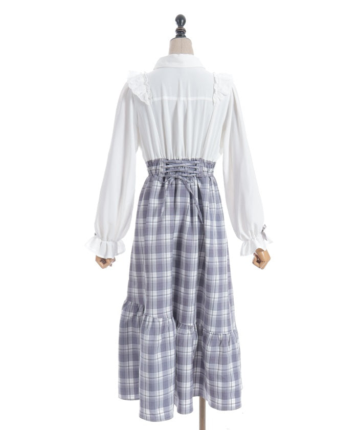 This dress is packed with girly details, such as contrasting ribbons on the cuffs and cotton lace frills.