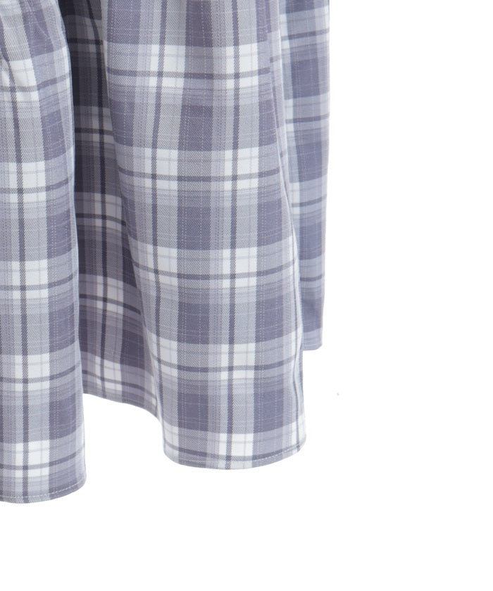 The skirt features an asymmetrical design with a diagonal cut.