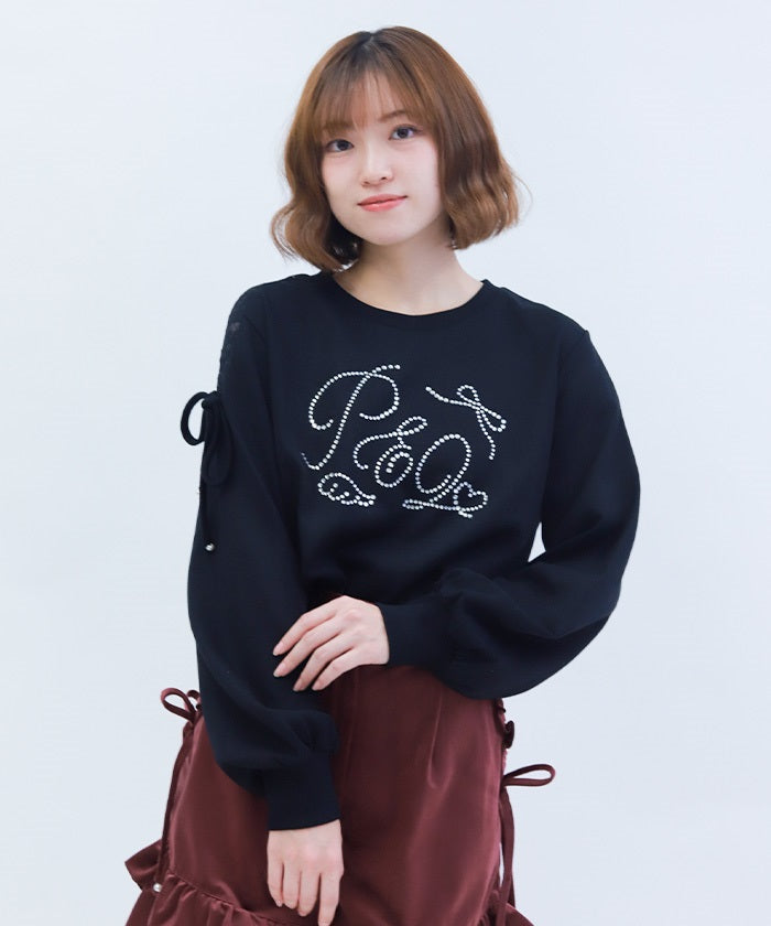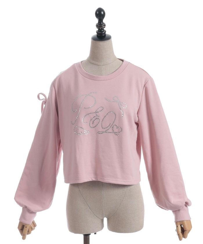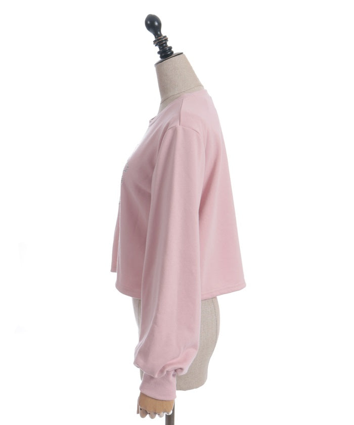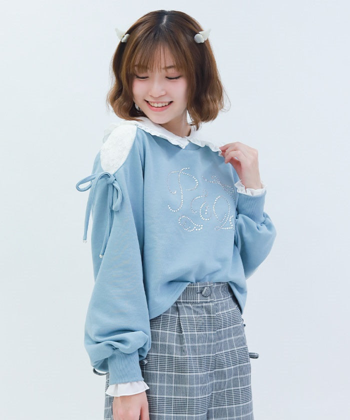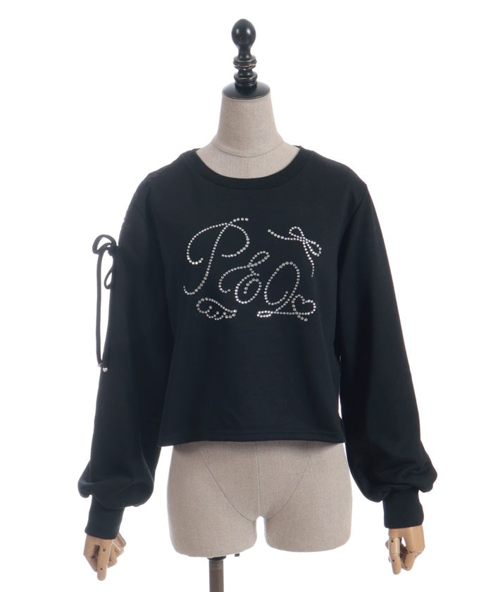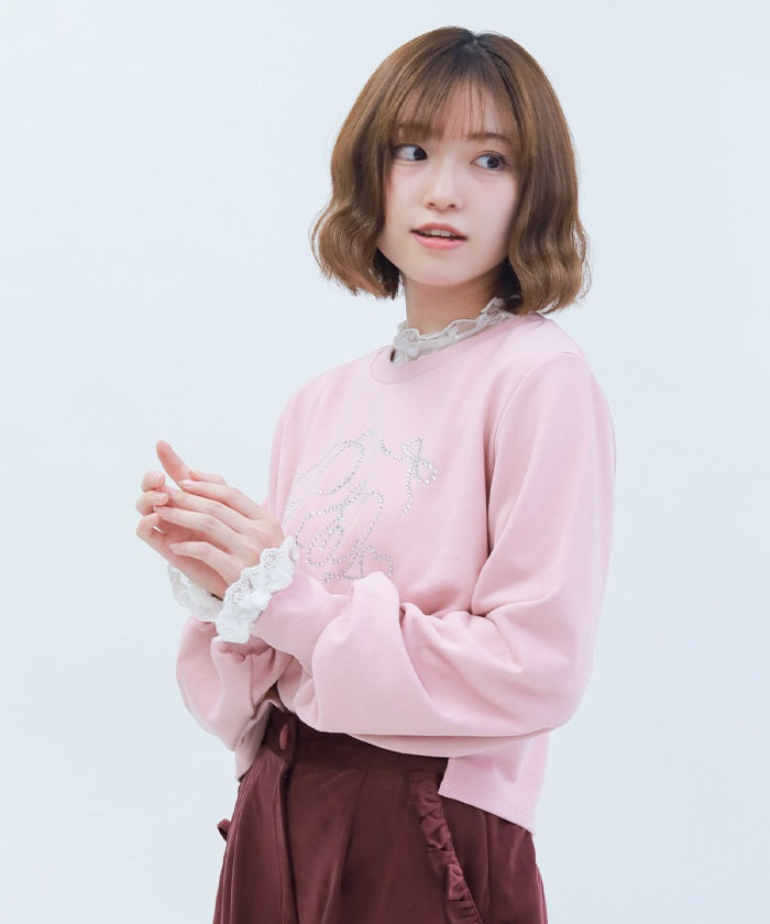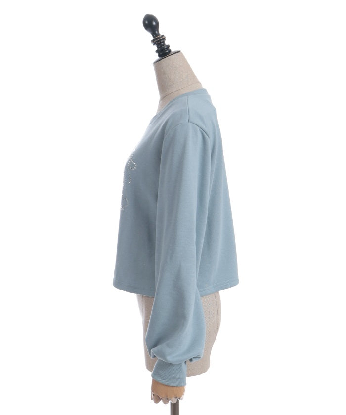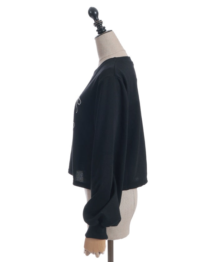 This eye-catching sweatshirt features rhinestone embellishments incorporating wishcore-inspired feather and ribbon motifs.