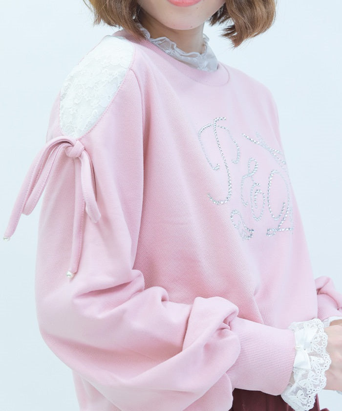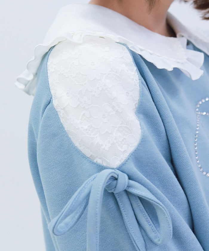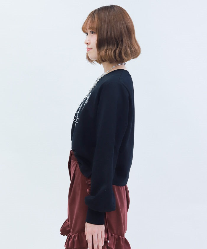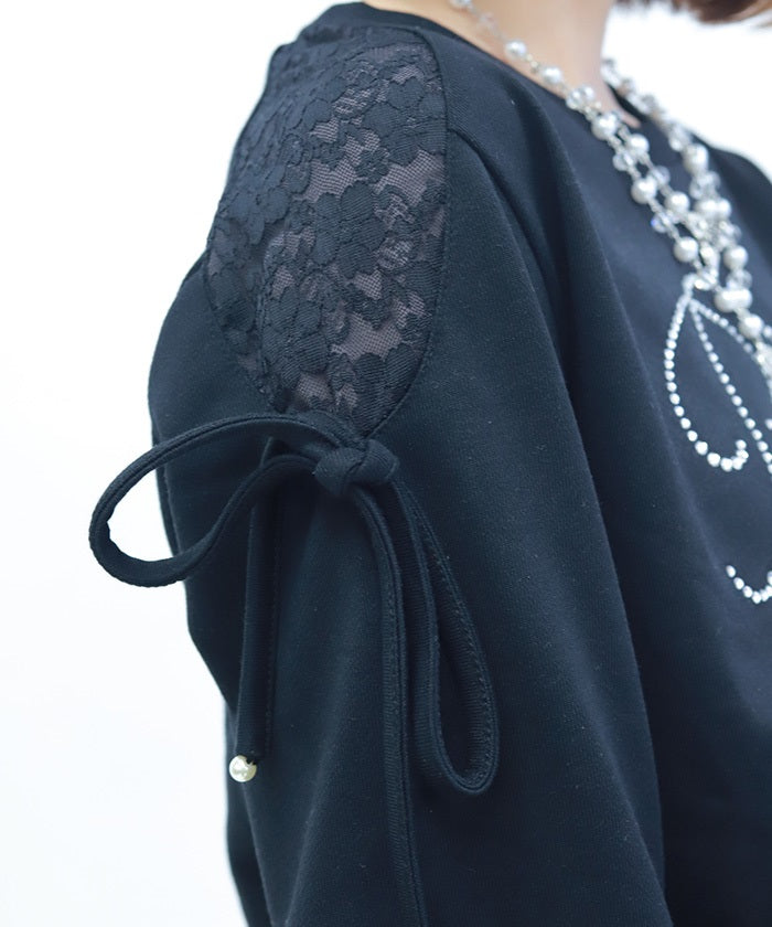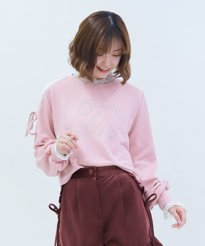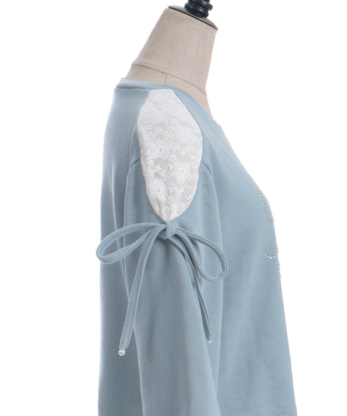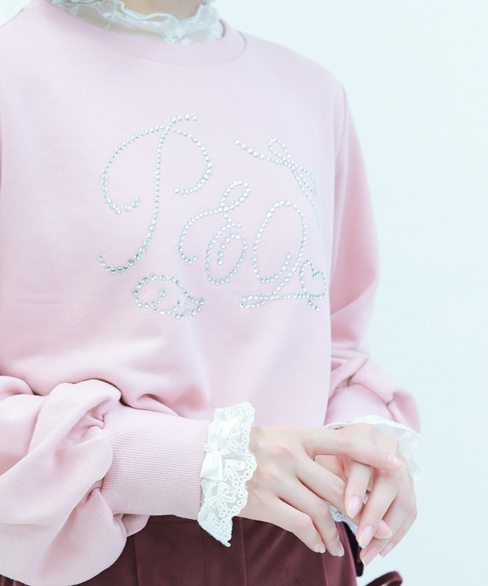 This eye-catching sweatshirt features rhinestone embellishments incorporating wishcore-inspired feather and ribbon motifs.