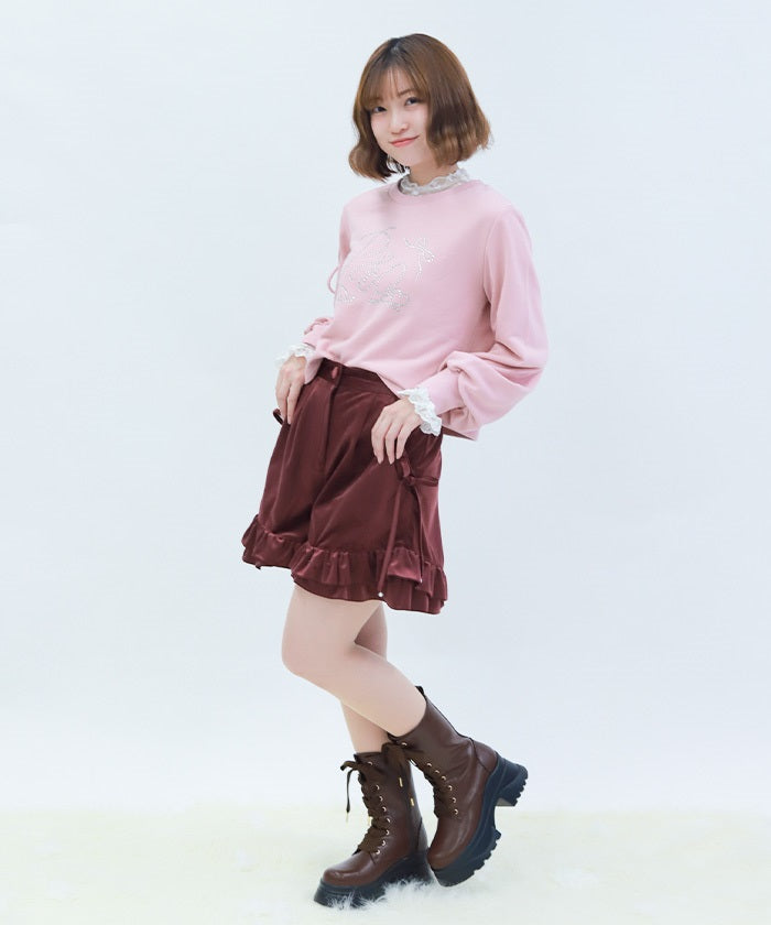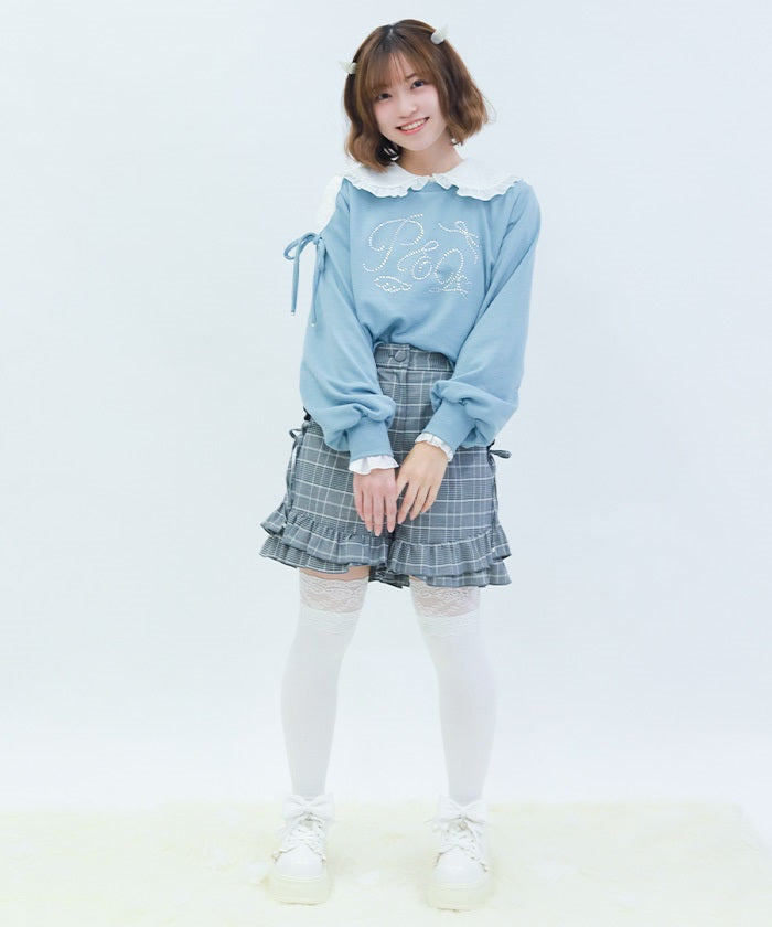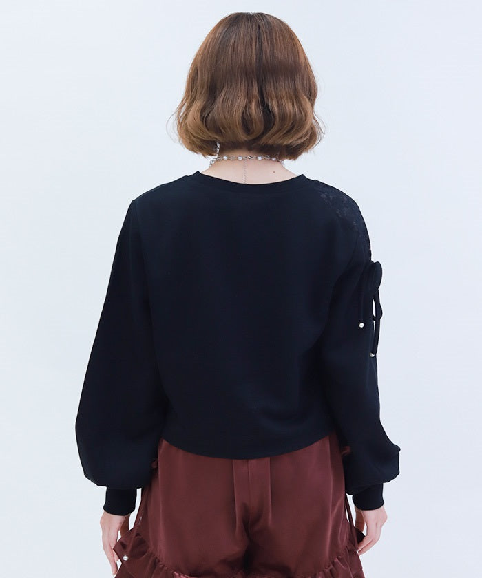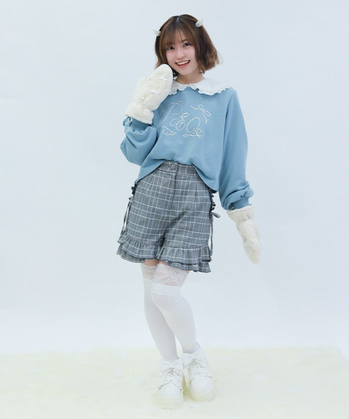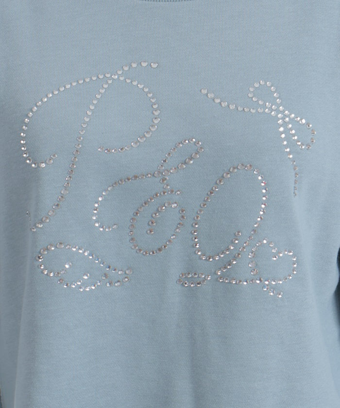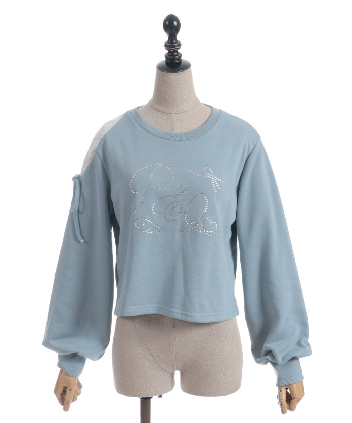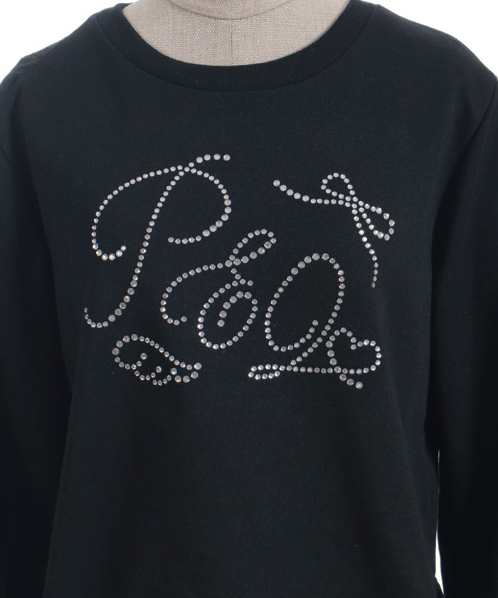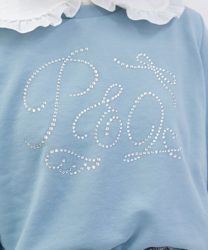 This eye-catching sweatshirt features rhinestone embellishments incorporating wishcore-inspired feather and ribbon motifs.