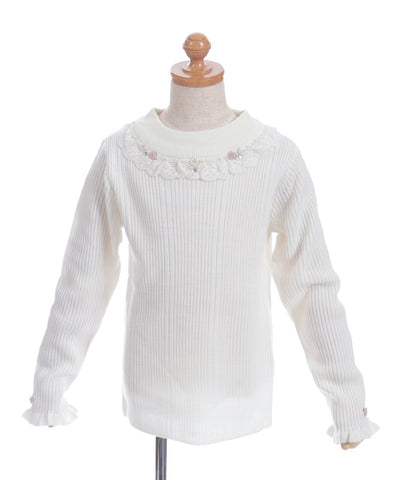 Embroidery & Ribbon Brushed Boa Sweatshirt