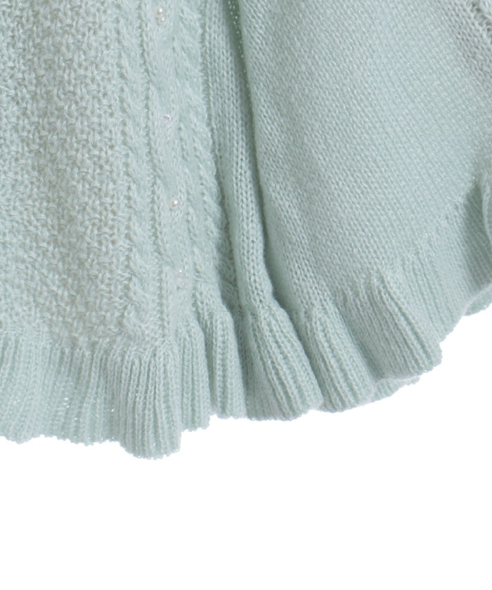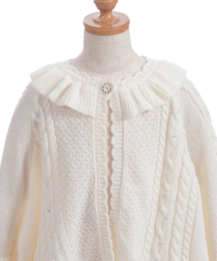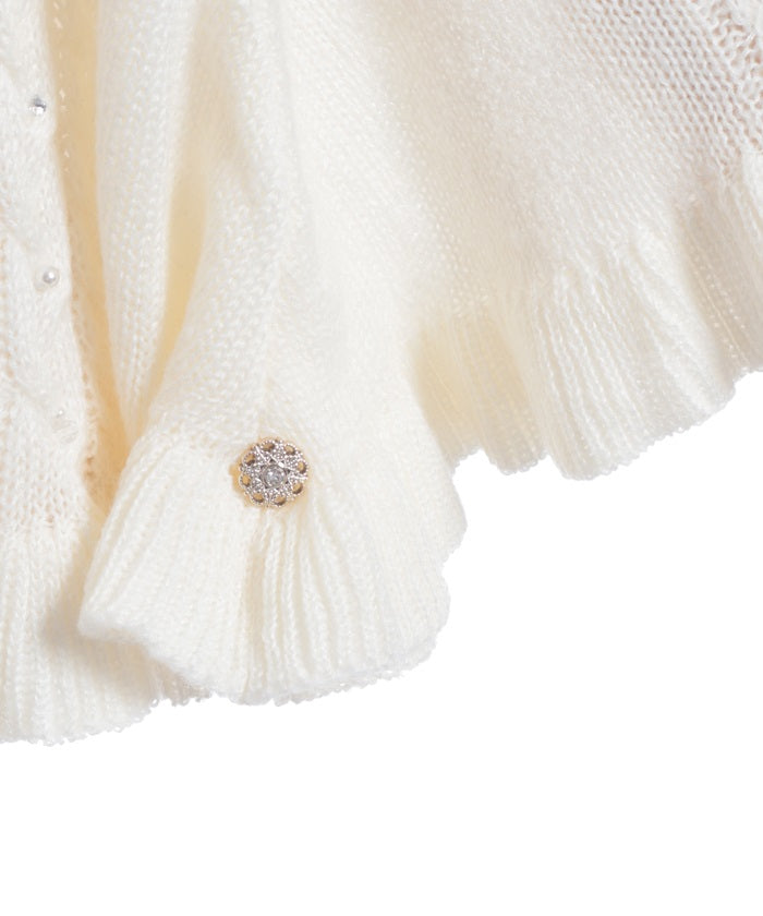 This design is packed with attention to detail, including sparkling pearls and beads along the cable and sparkling openwork buttons.
