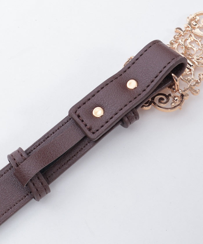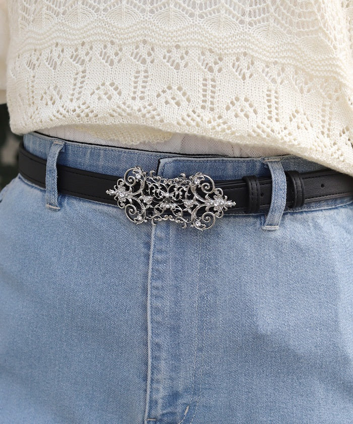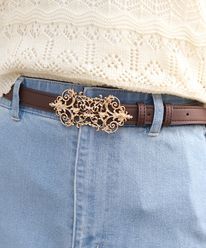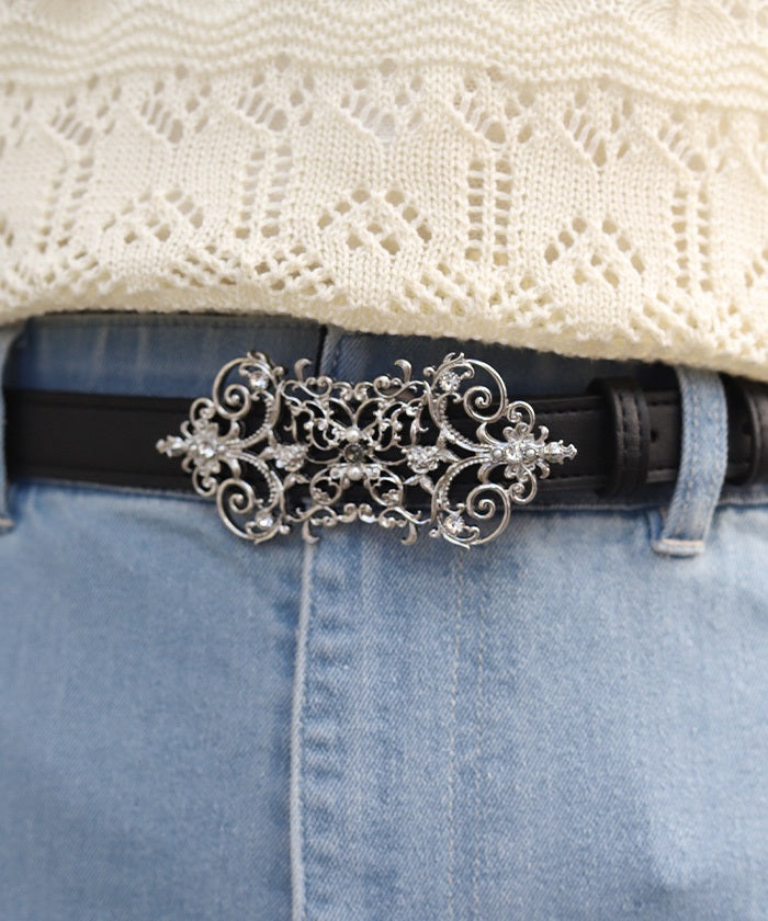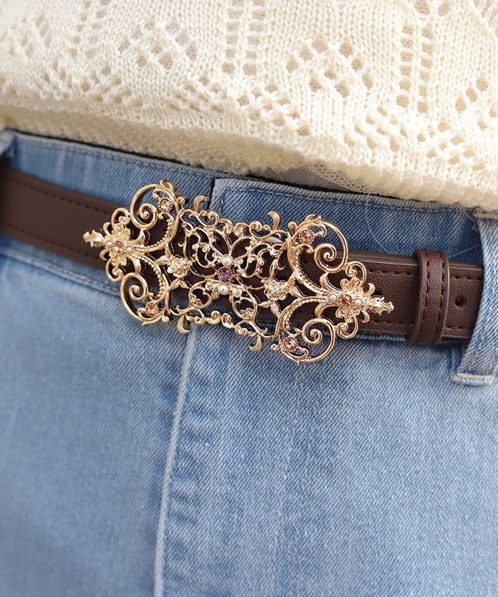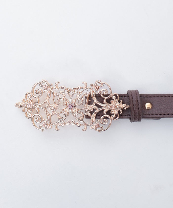 The buckle, incorporating gorgeous embellishments, adorns the front.