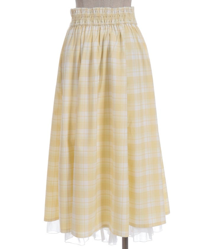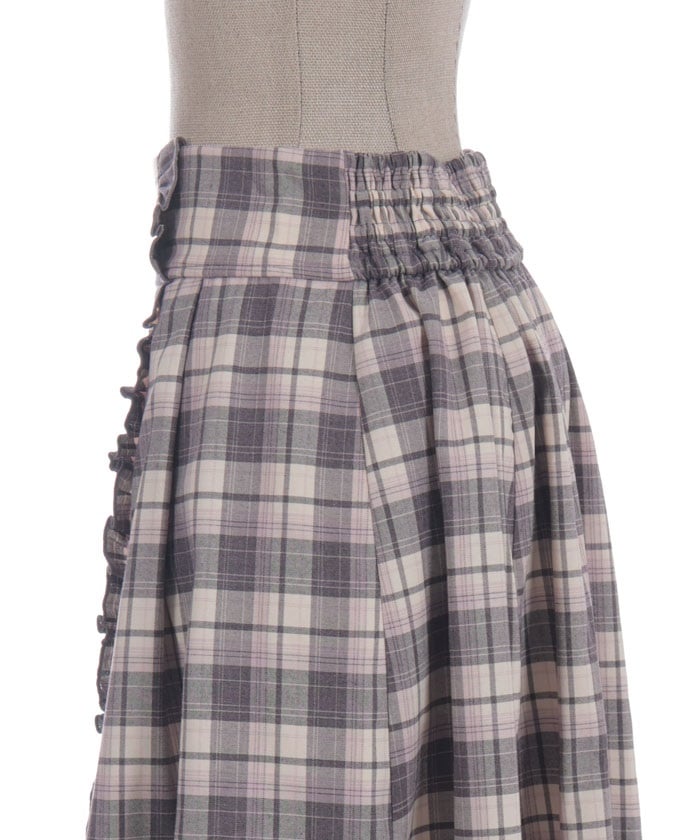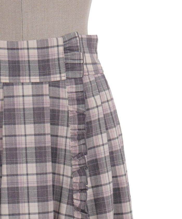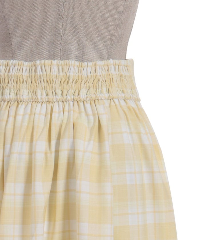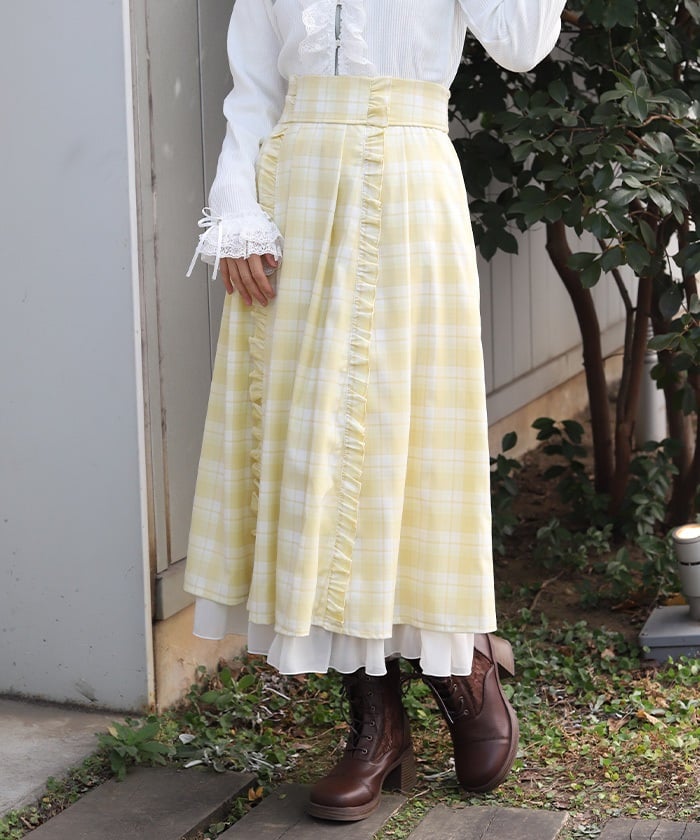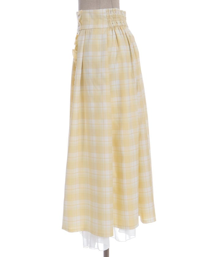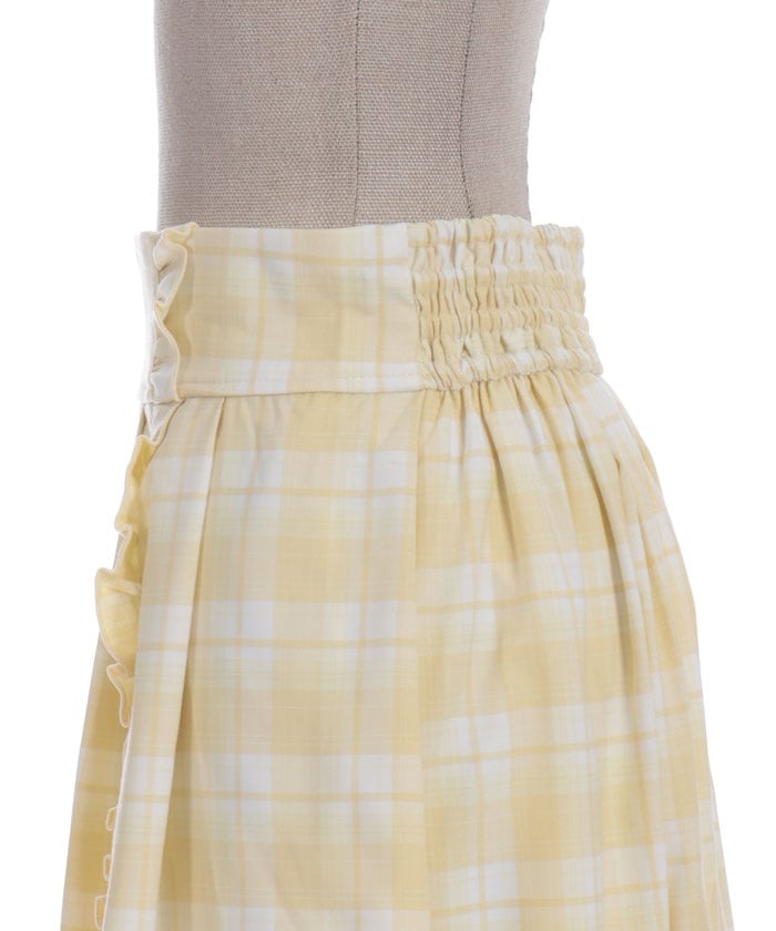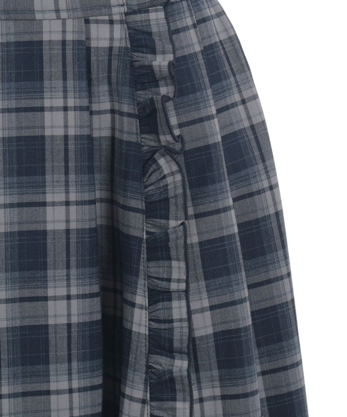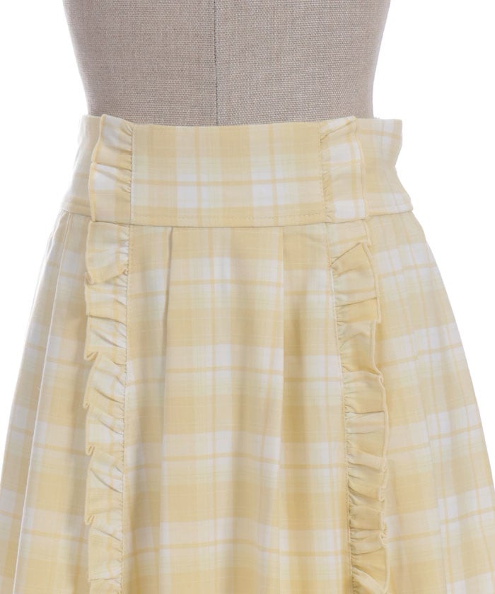 This ruffle-design skirt features a light, spring-inspired check pattern for a soft, relaxed feel.