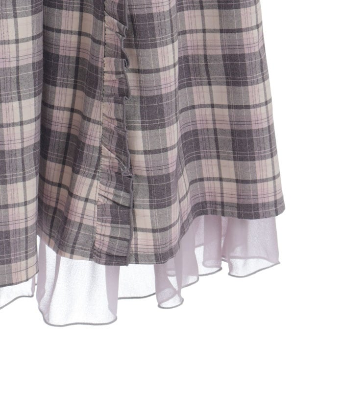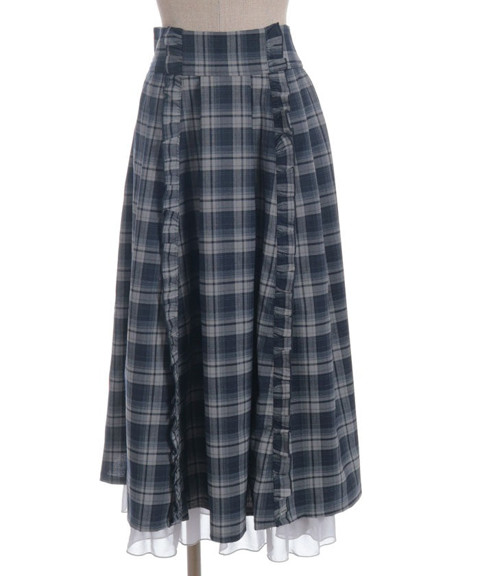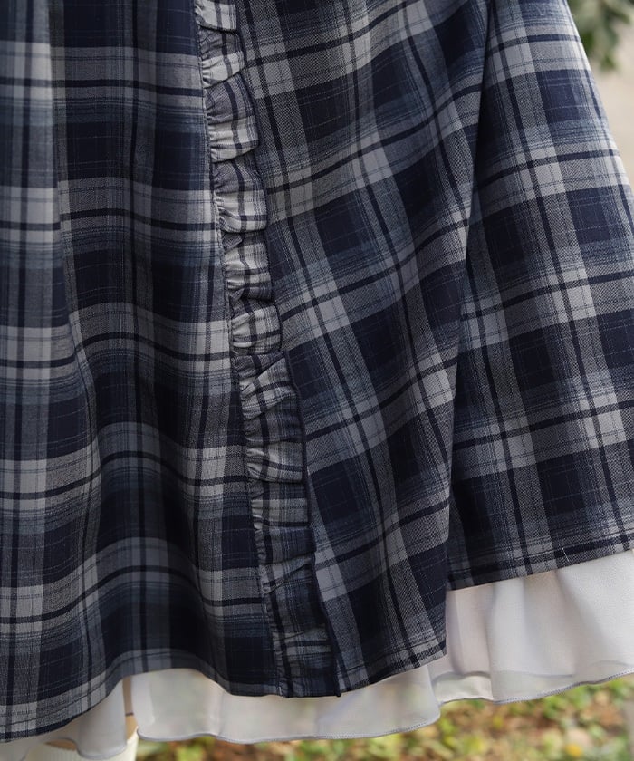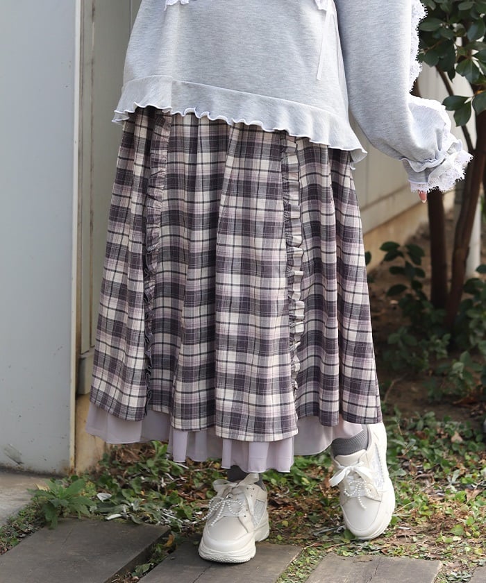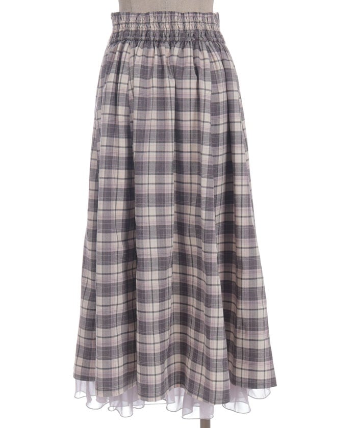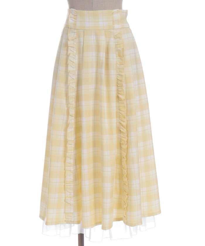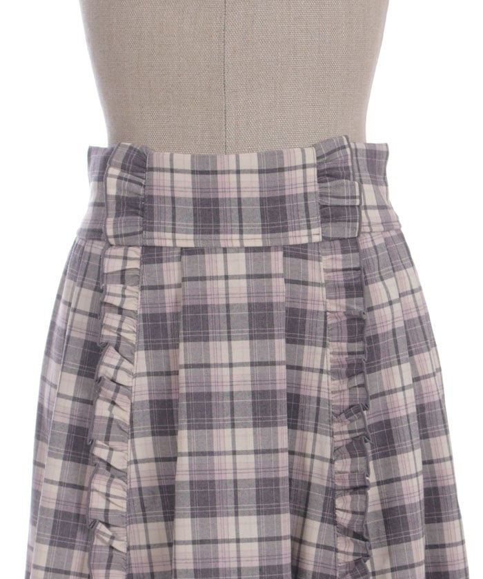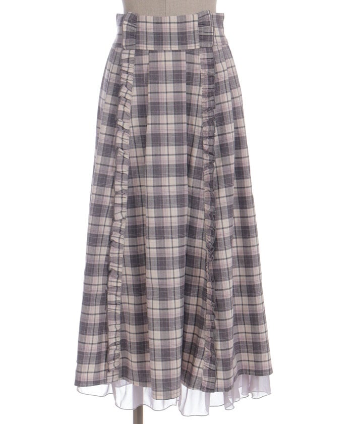 This ruffle-design skirt features a light, spring-inspired check pattern for a soft, relaxed feel.