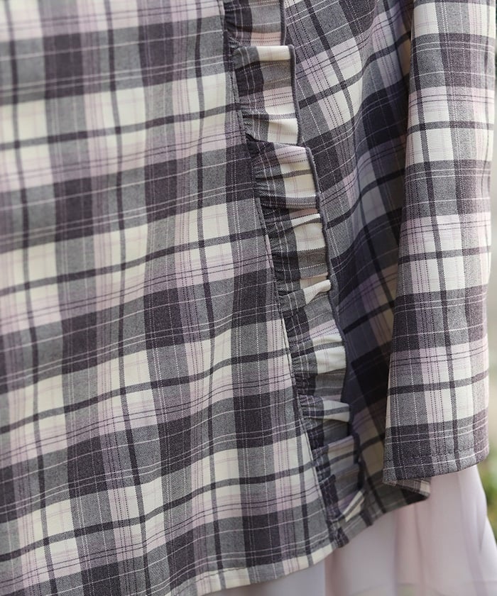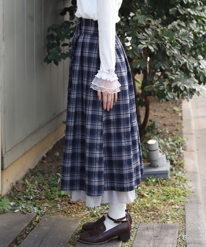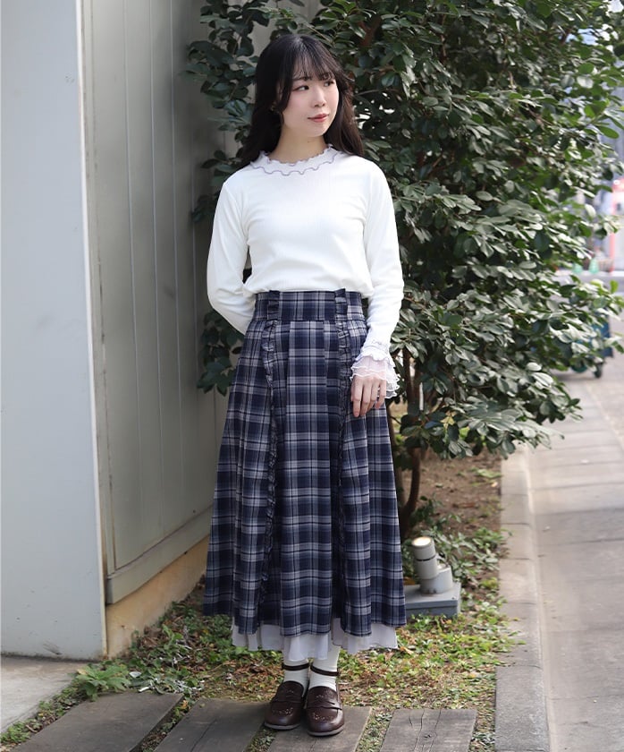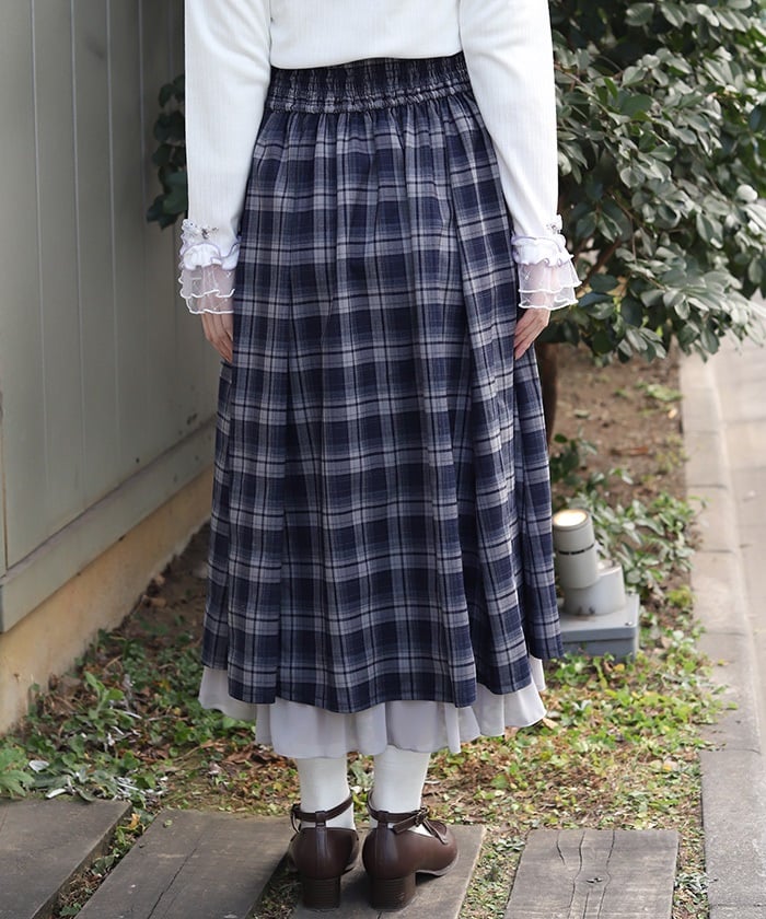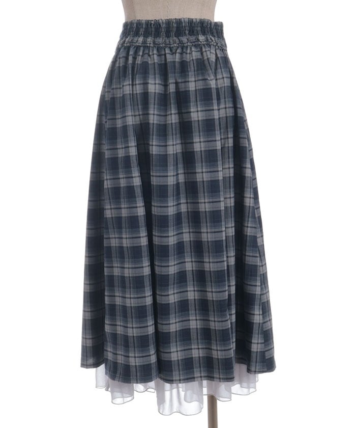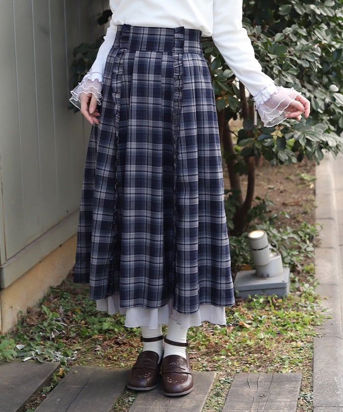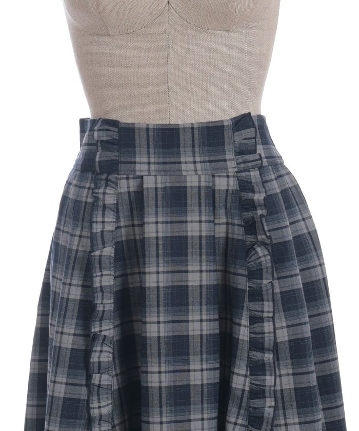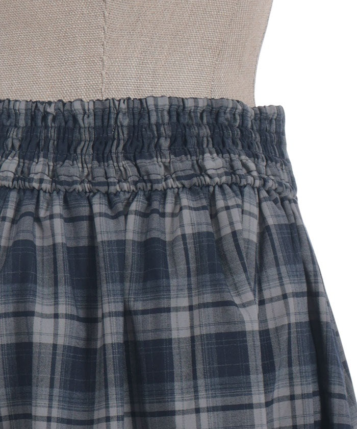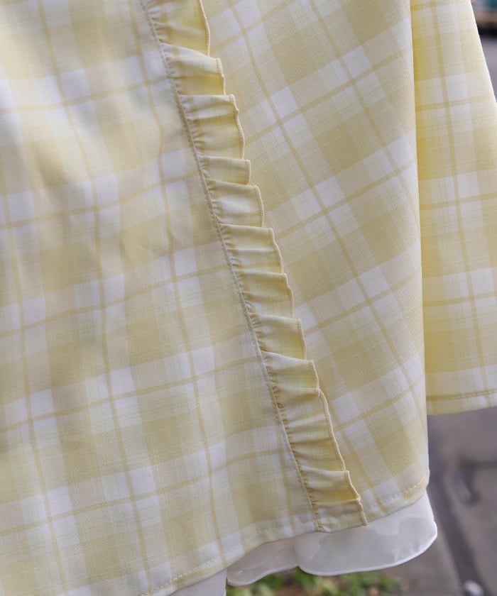This ruffle-design skirt features a light, spring-inspired check pattern for a soft, relaxed feel.
