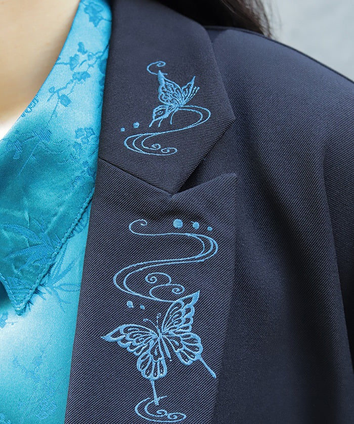 Butterfly Embroidery Japanese Sleeve Tailored Jacket