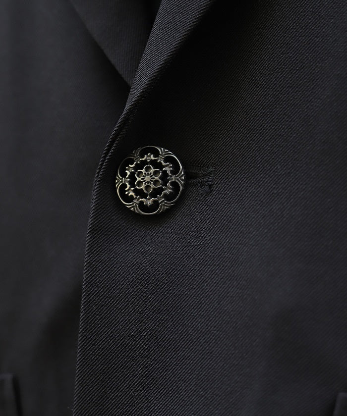 The simple yet relaxed silhouette of this tailored jacket is paired with traditional Japanese sleeves for a Japanese-Western fusion look.