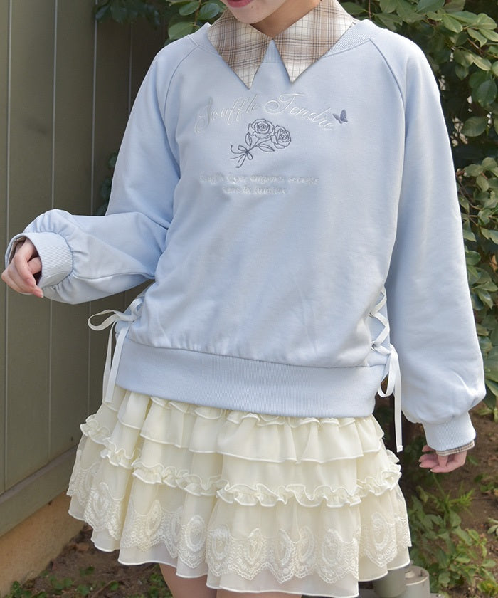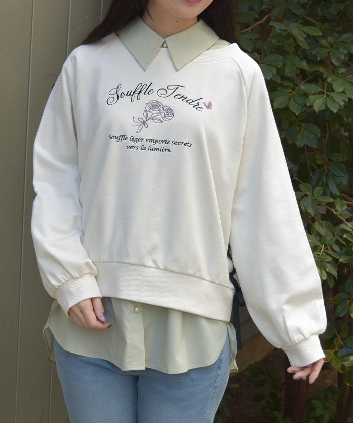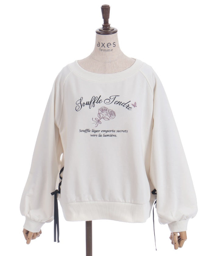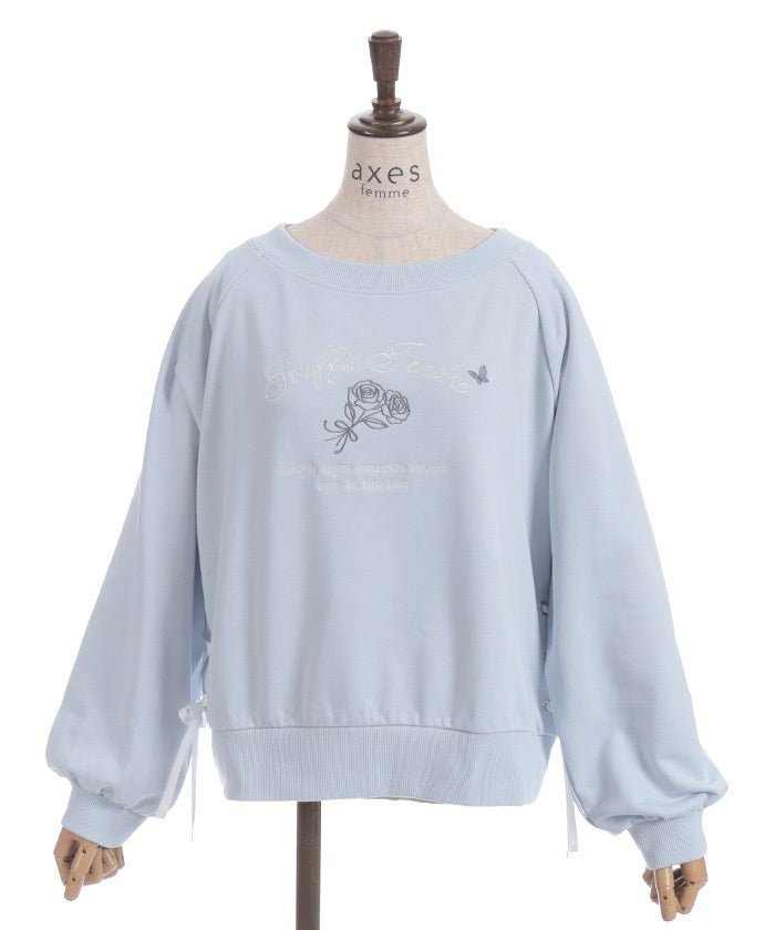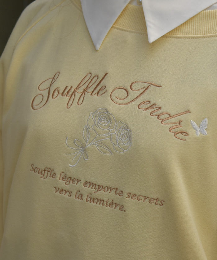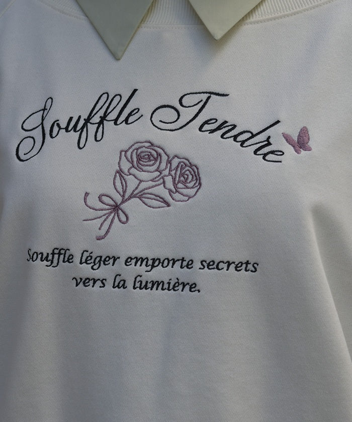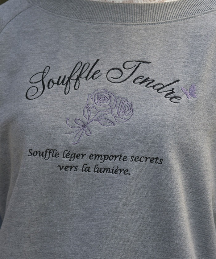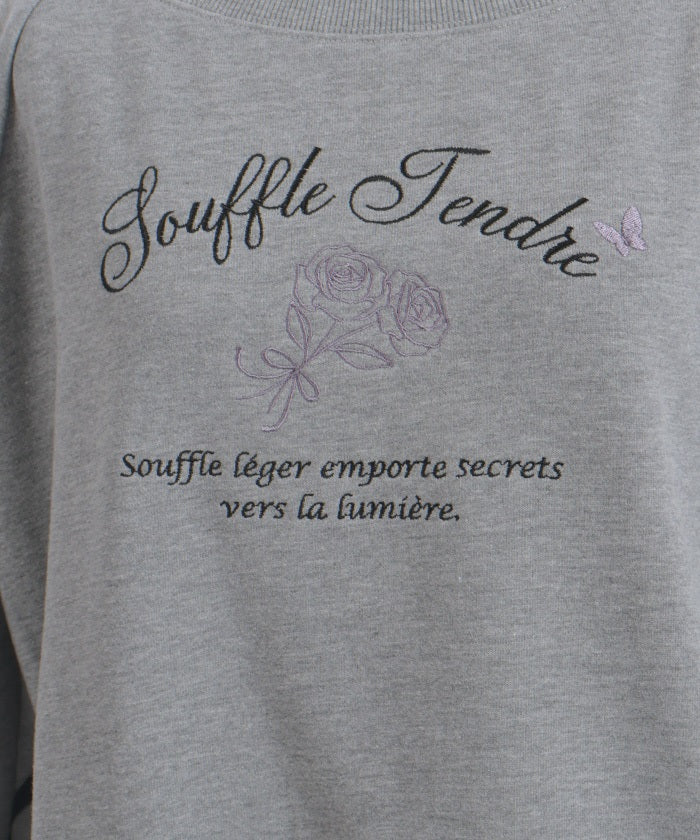 This fleece sweatshirt features a logo and rose embroidery.
