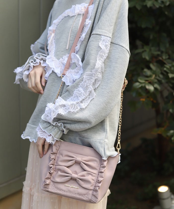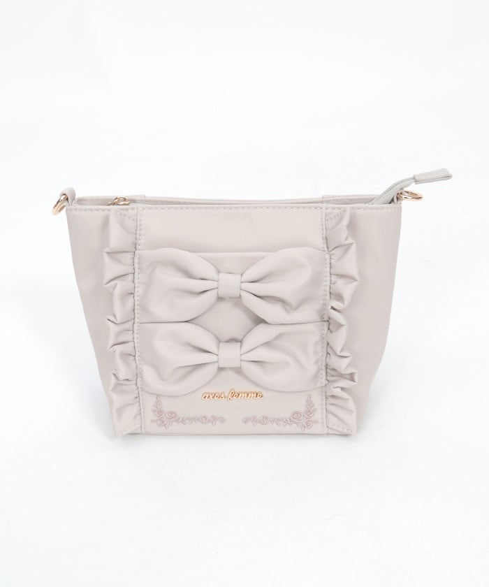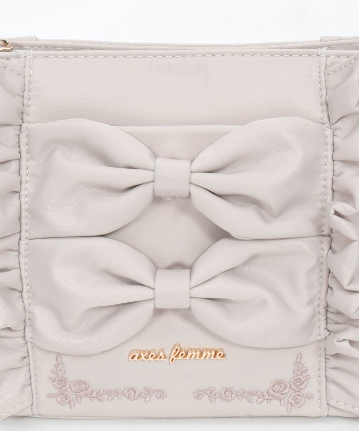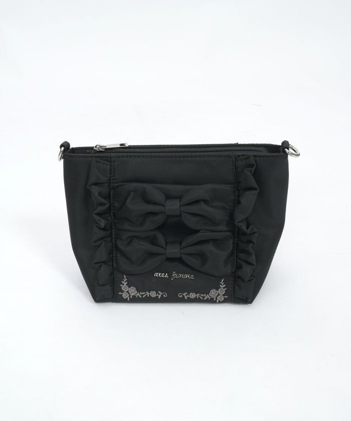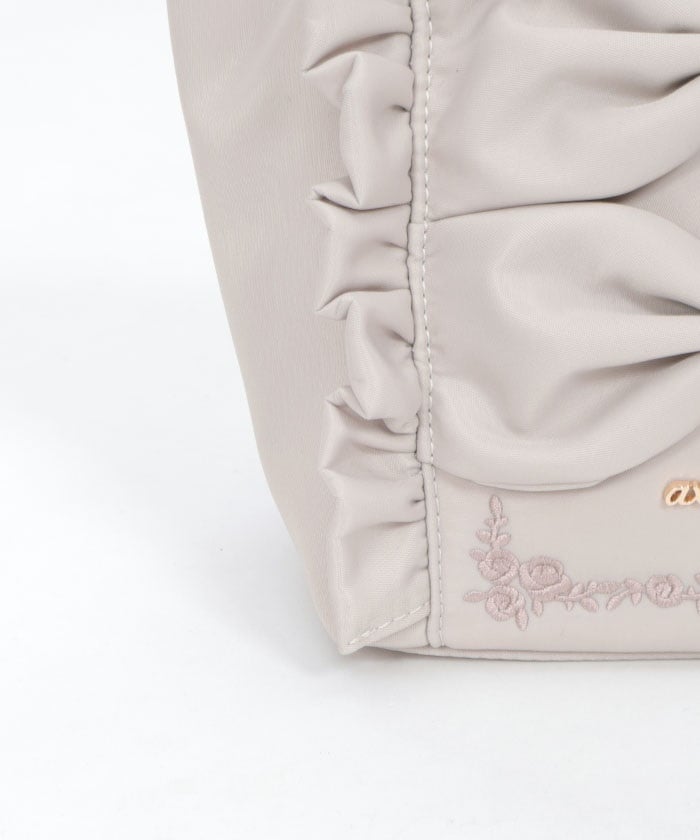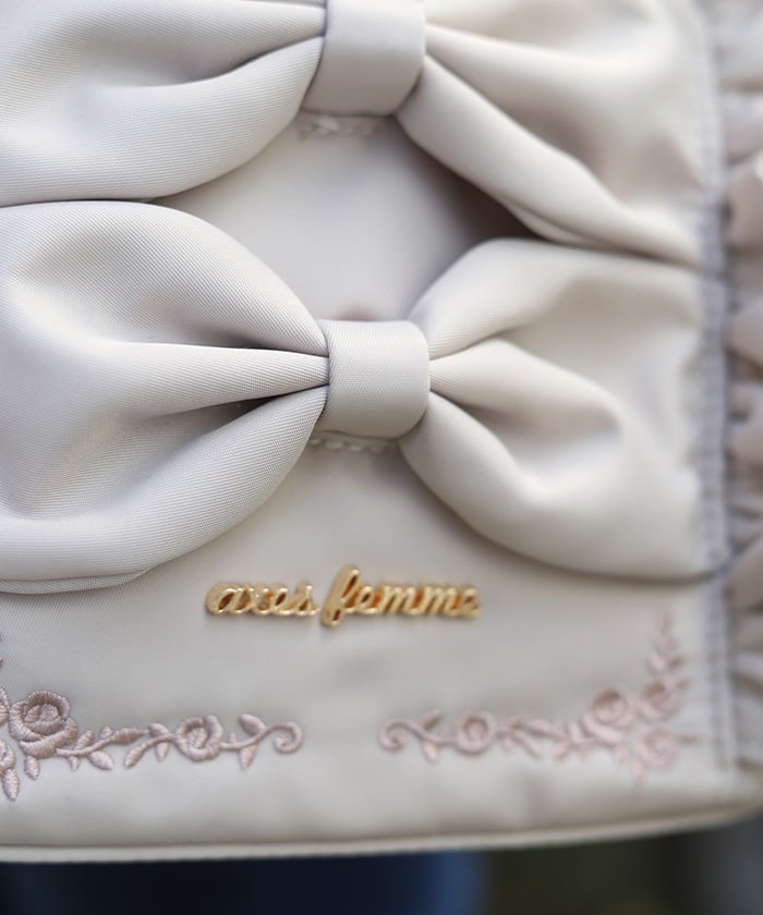 This shoulder bag features gorgeous embroidery and a ribbon design.