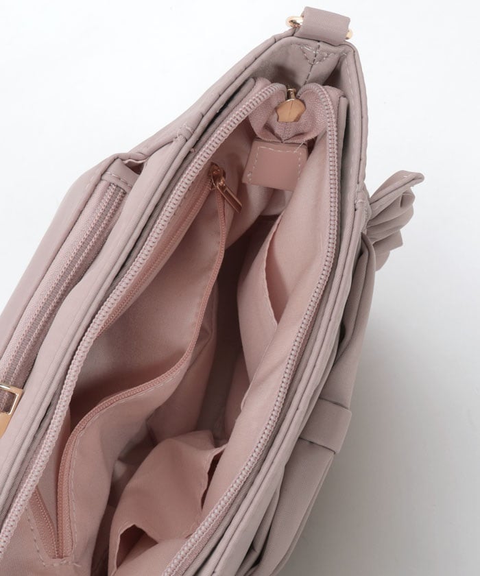 In addition to an interior pocket, it also has exterior pockets on the front and back, making it convenient for storing small items you need quick access to, like a pass case, lipstick, or keys.