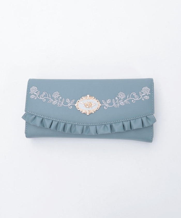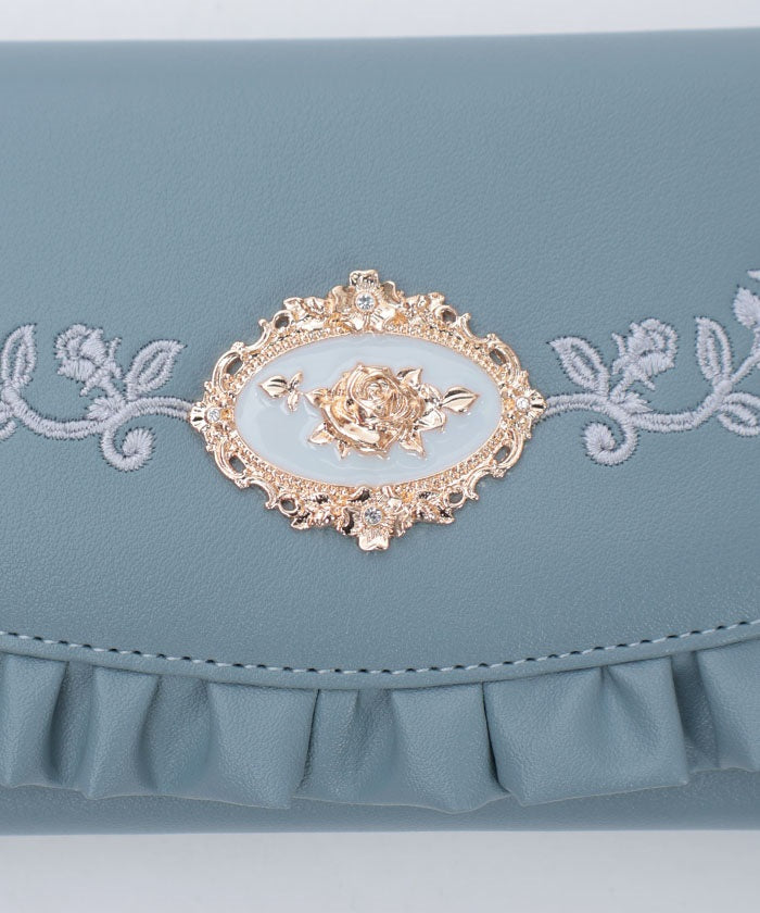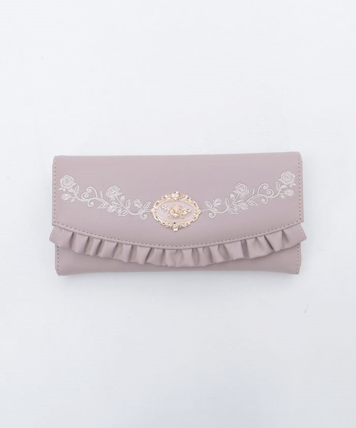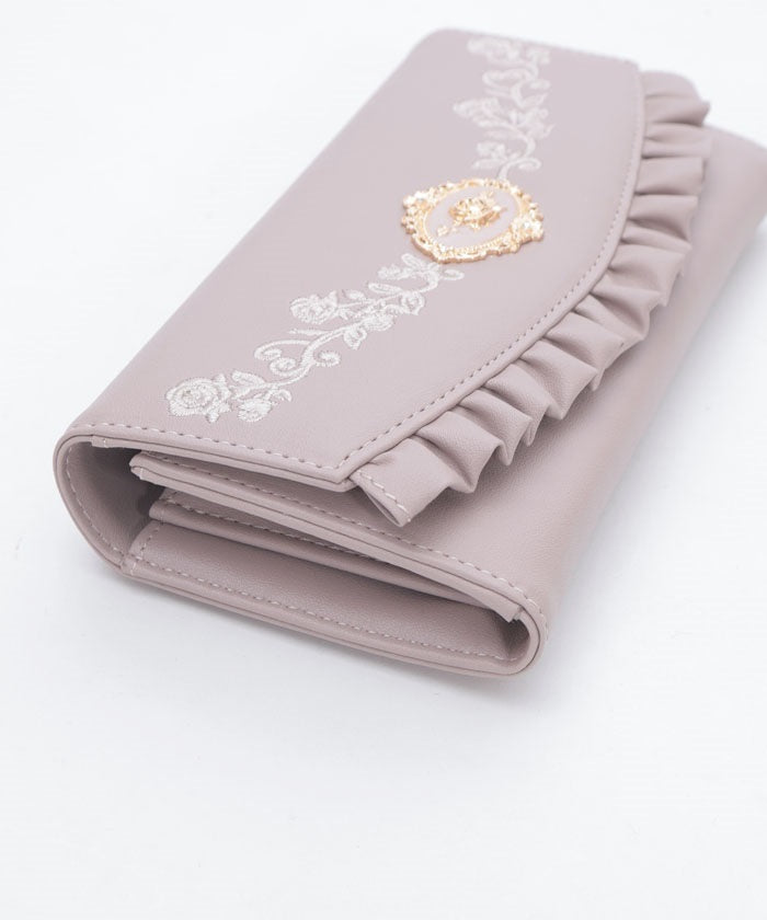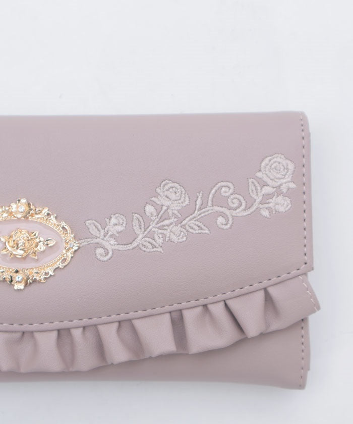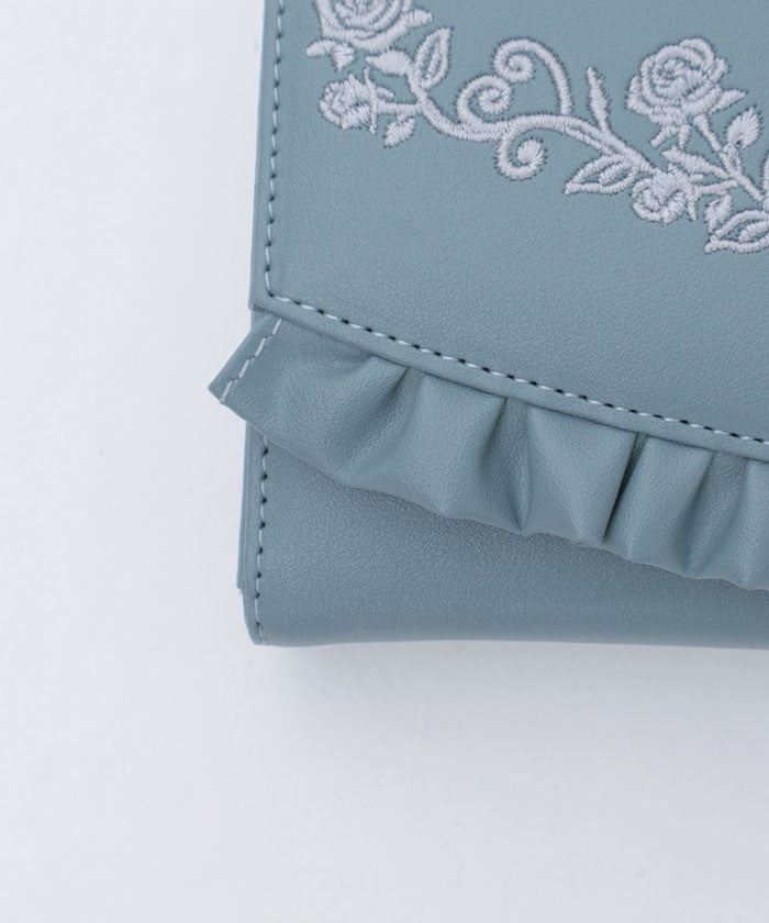 Rose Embroidery Frill Mini Wallet