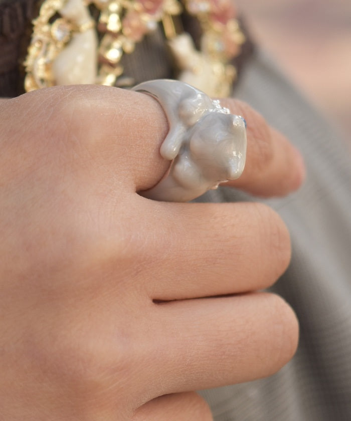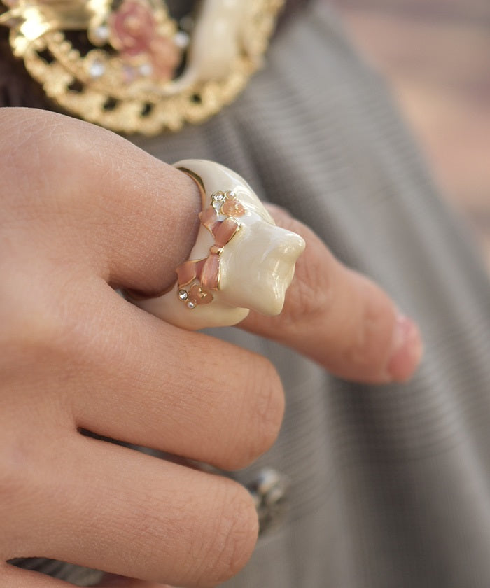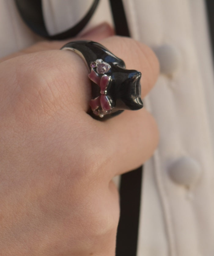 This adorable cat-motif ring features a cute, peeking cat pose.