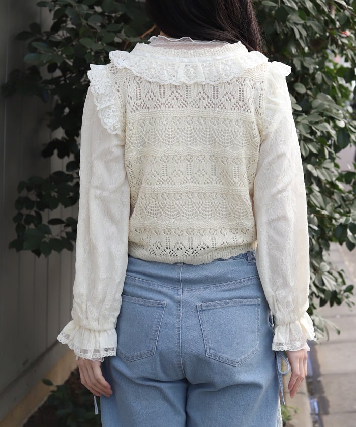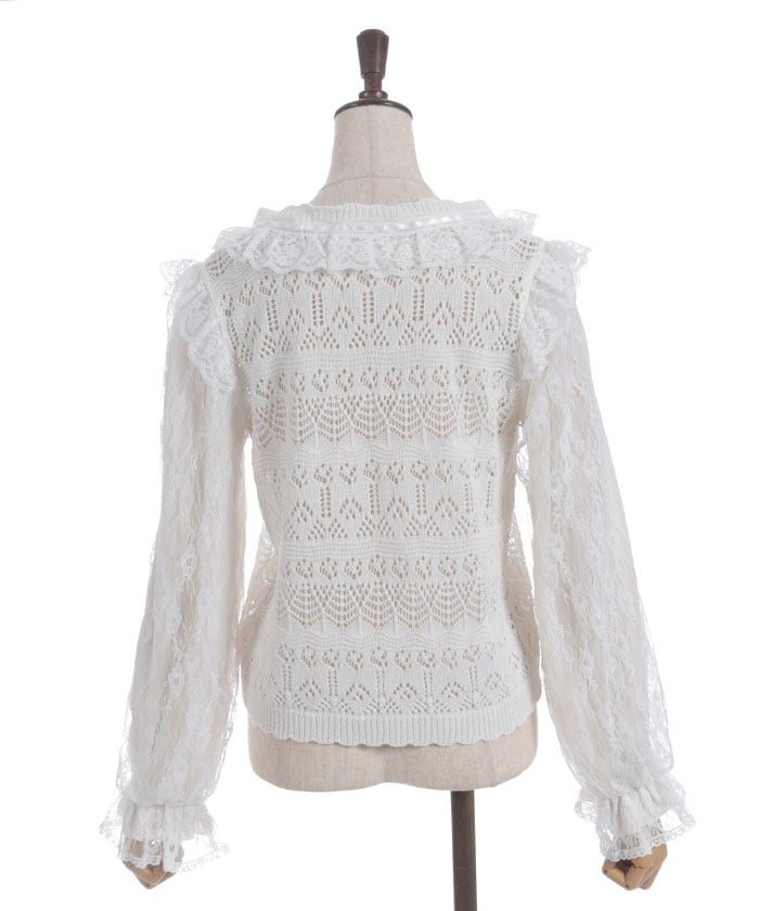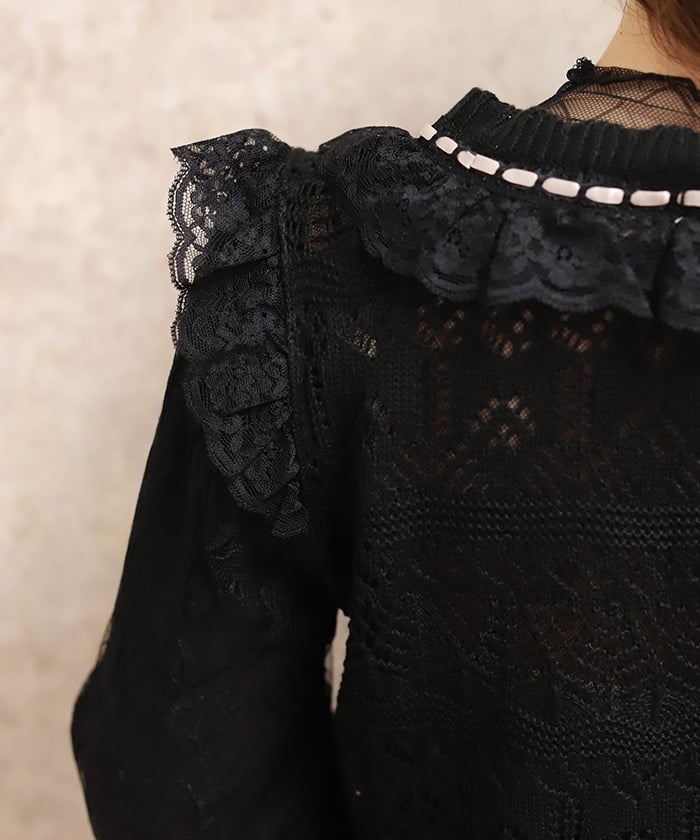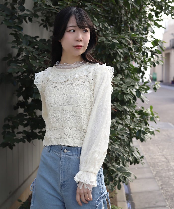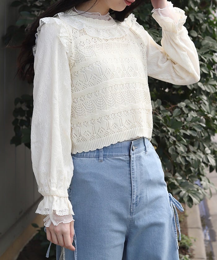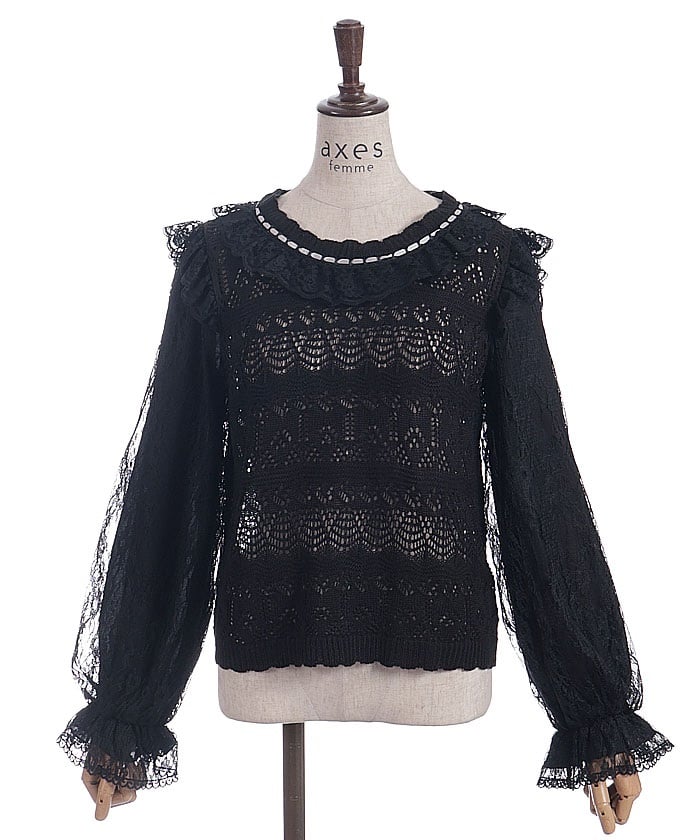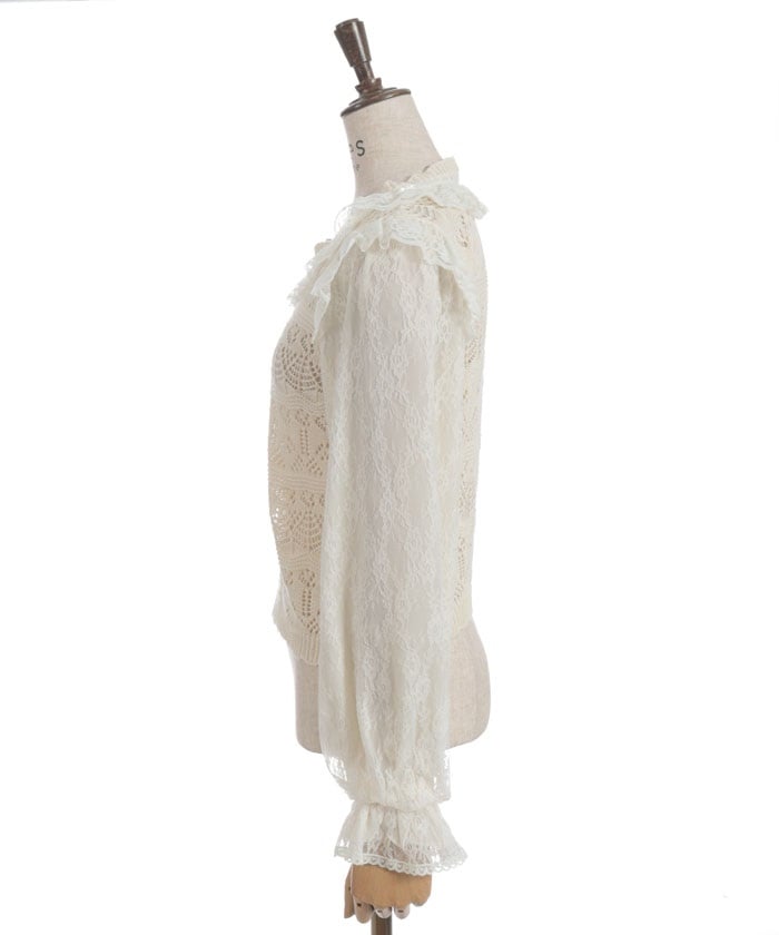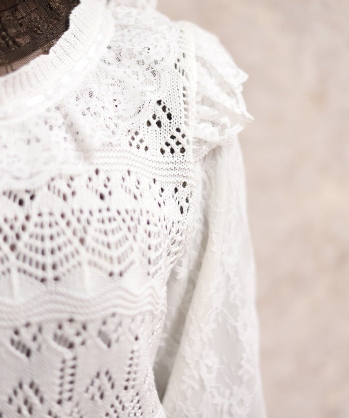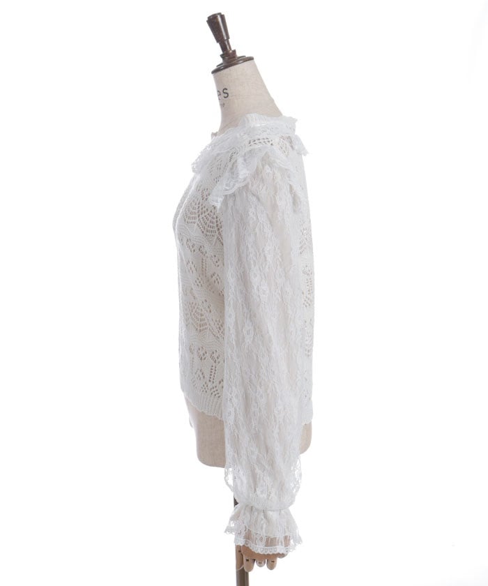 Generous lace accents create a feminine impression and add just the right amount of volume to the sleeves and body. The sheer design lends this piece a touch of sophistication while maintaining a touch of sweetness.