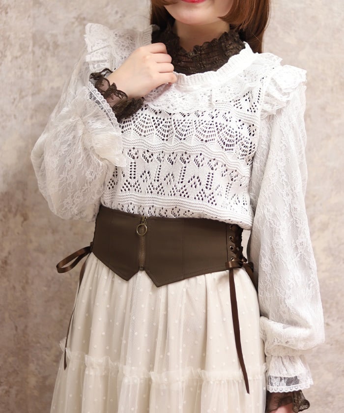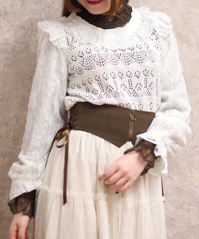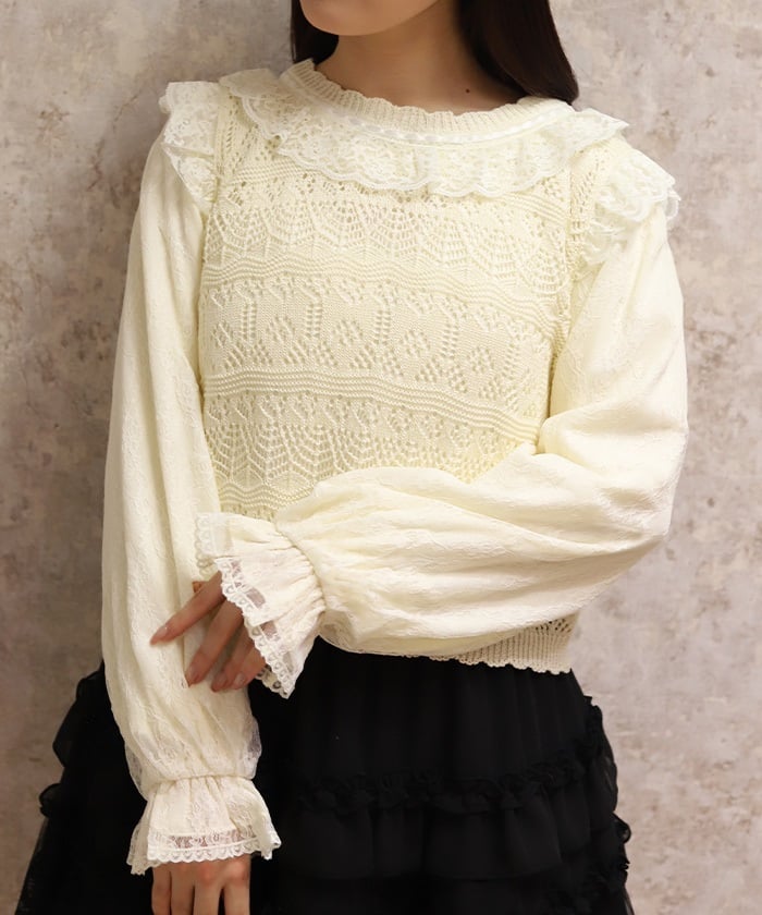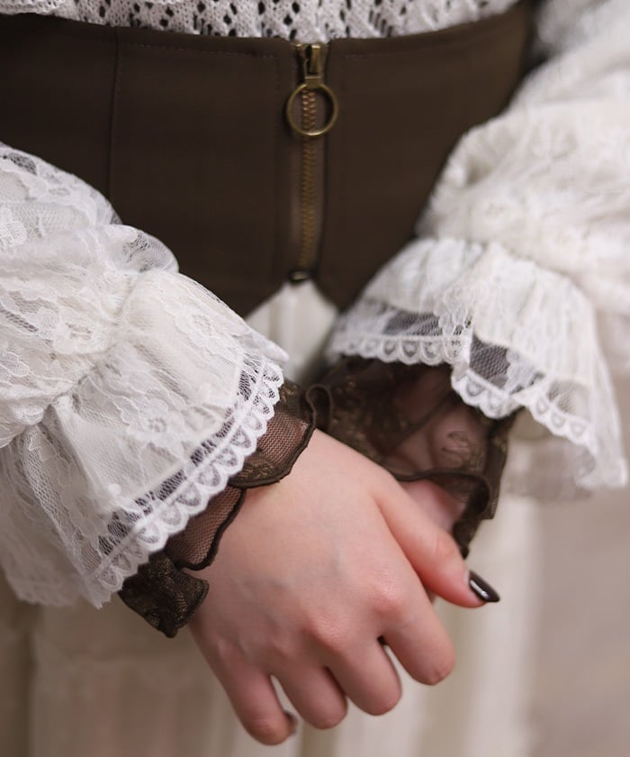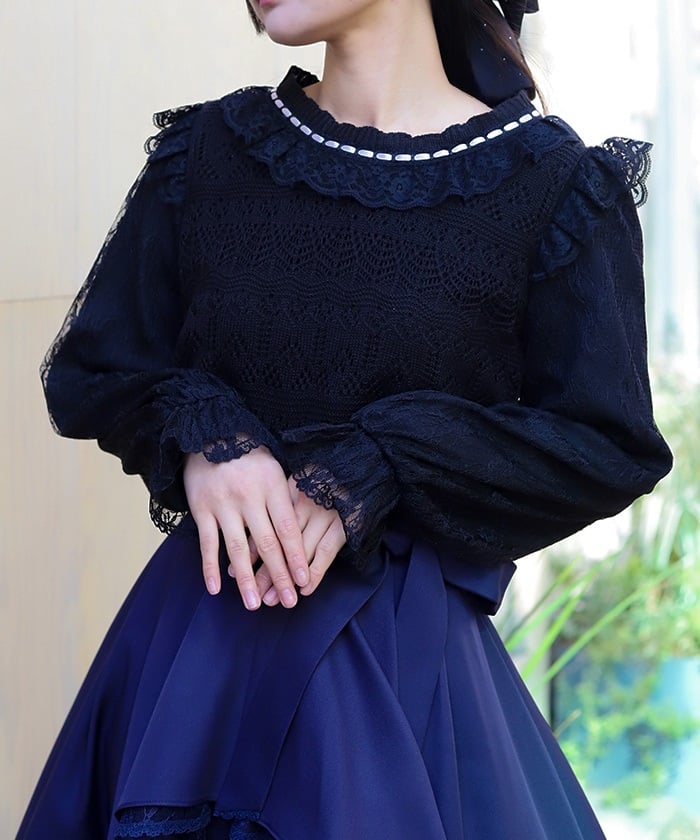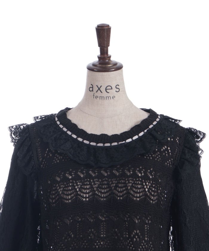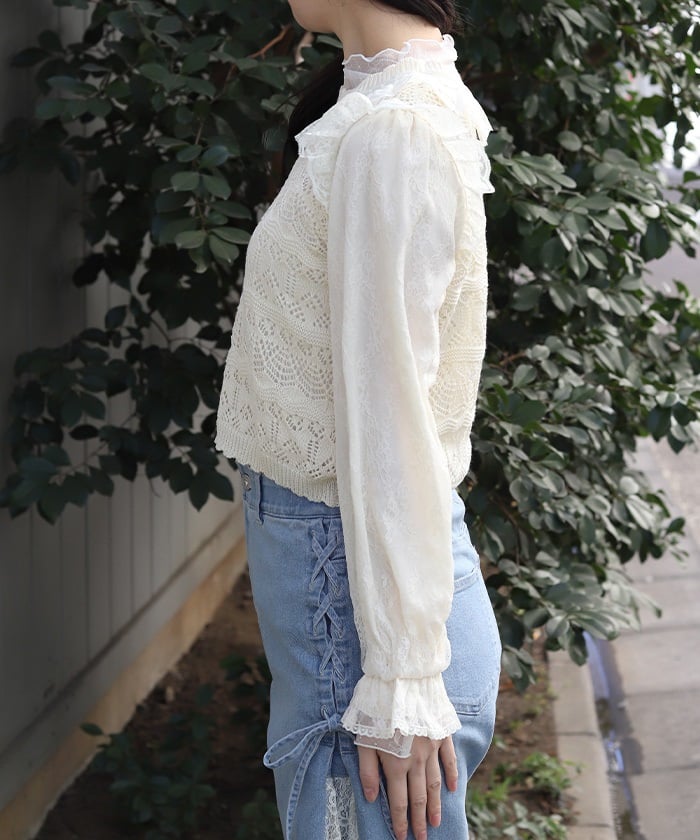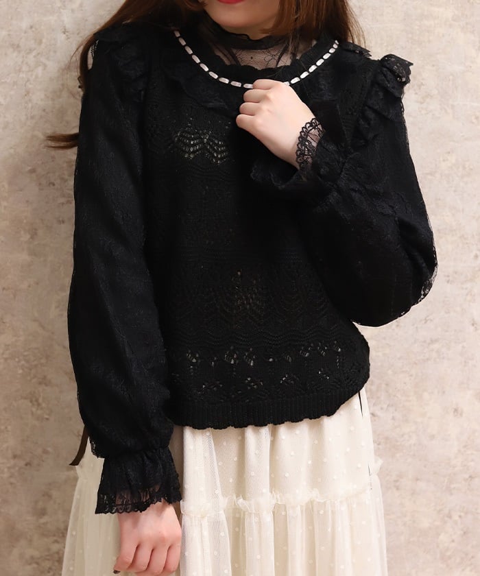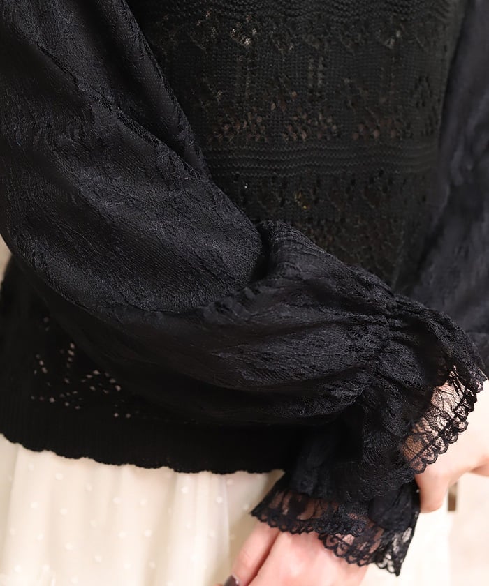 Generous lace accents create a feminine impression and add just the right amount of volume to the sleeves and body. The sheer design lends this piece a touch of sophistication while maintaining a touch of sweetness.