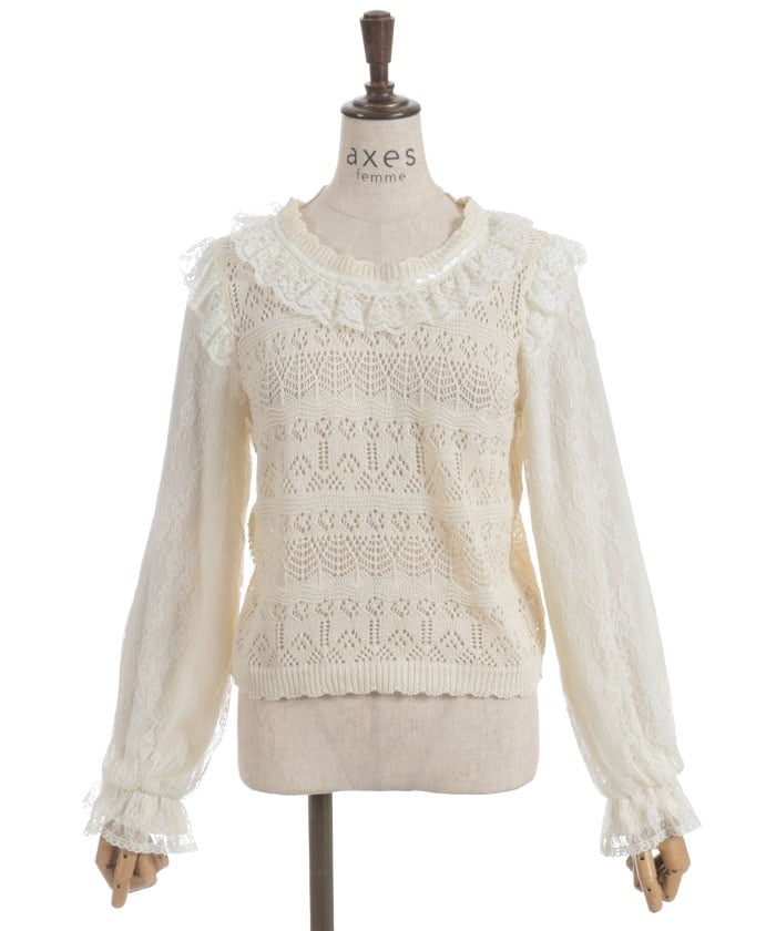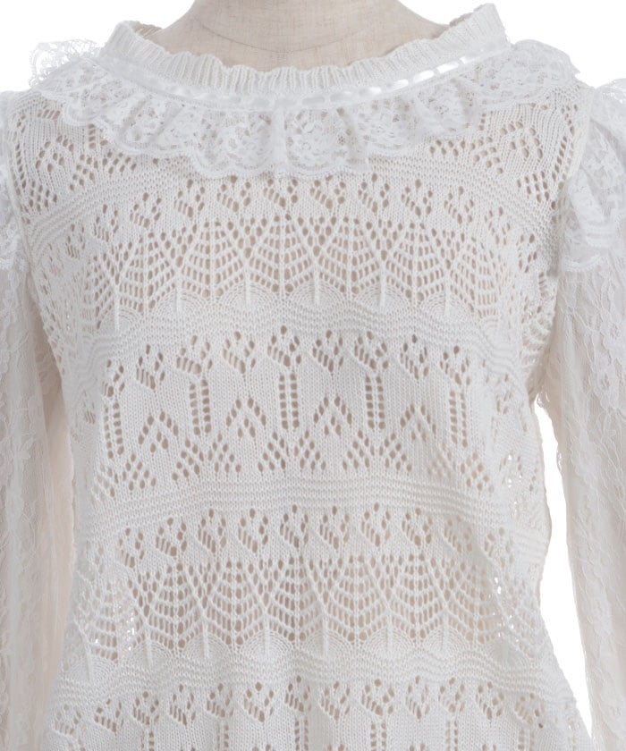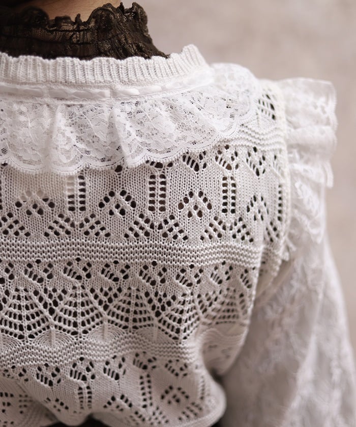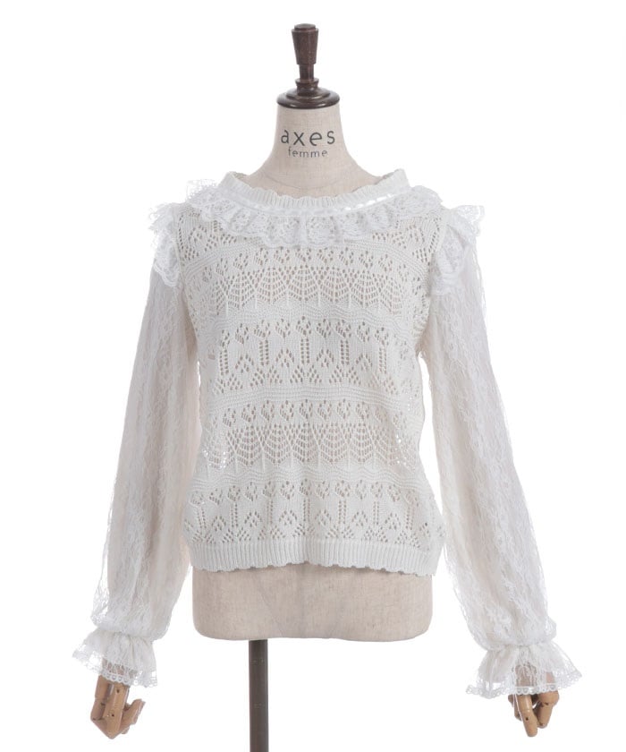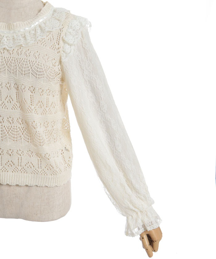 This knit top features delicate openwork knitting for an elegant look, adding a light, airy touch to any outfit.