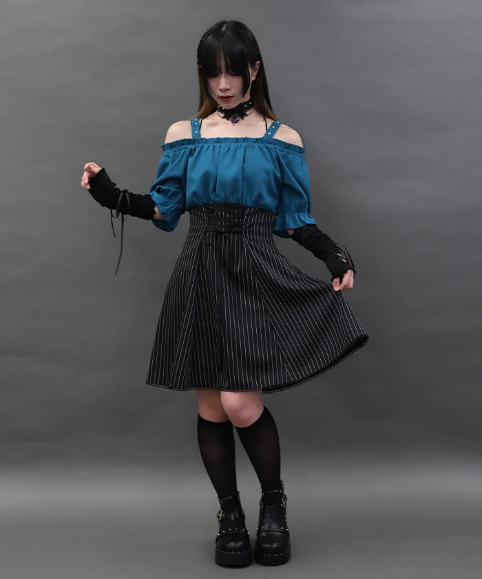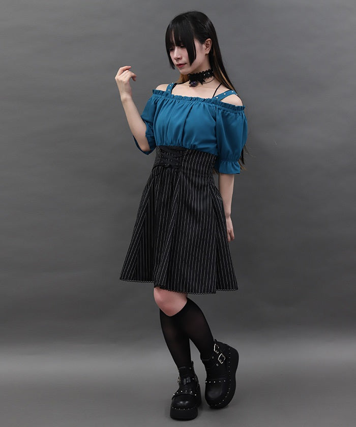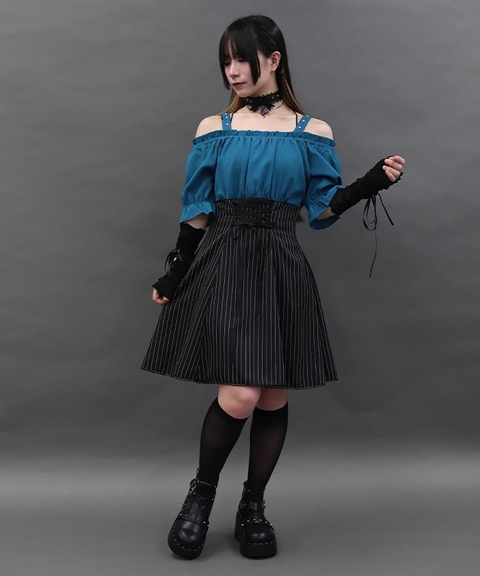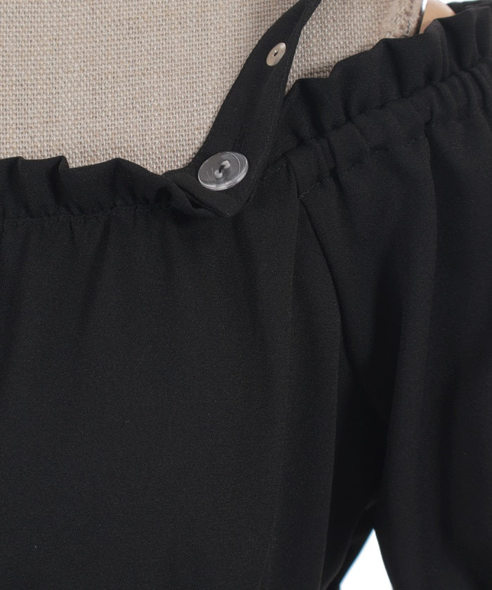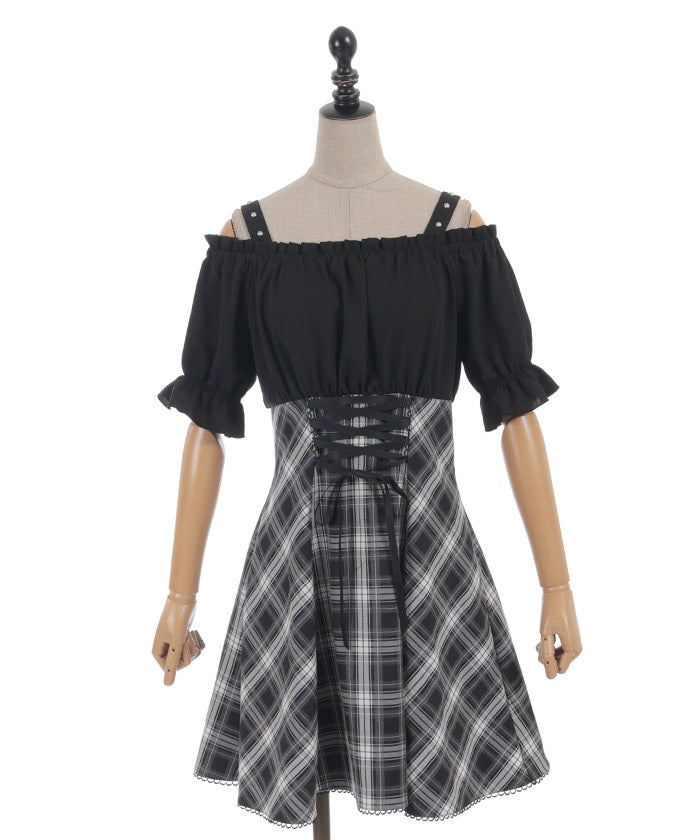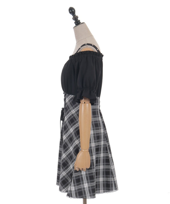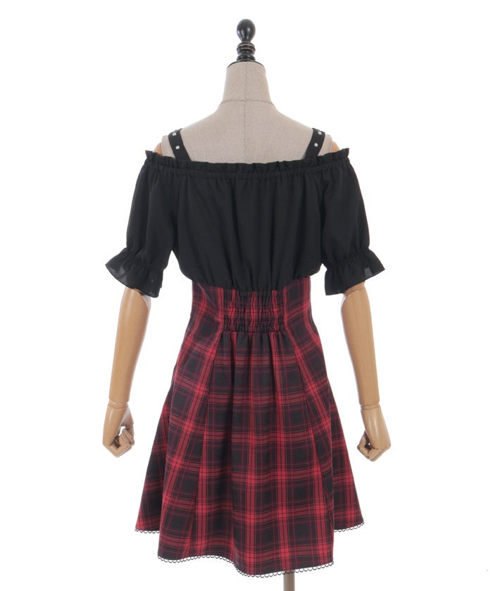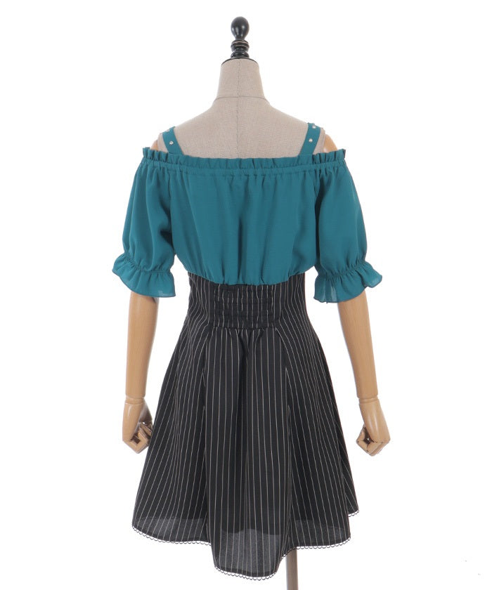 A one-piece dress that completes the styling of an off-shoulder blouse and skirt!