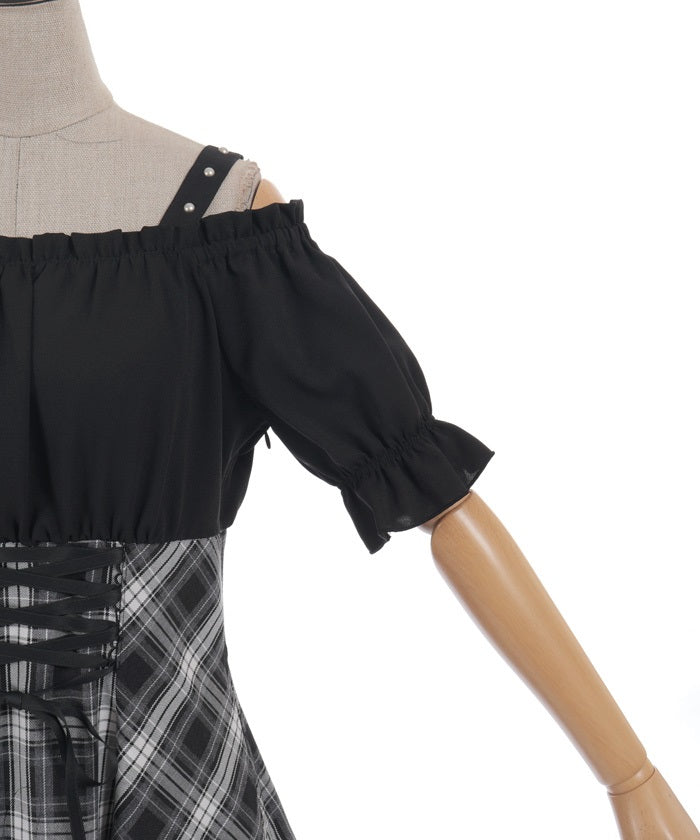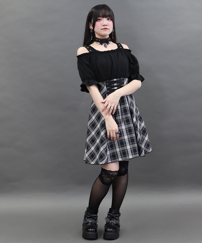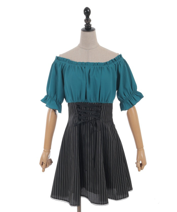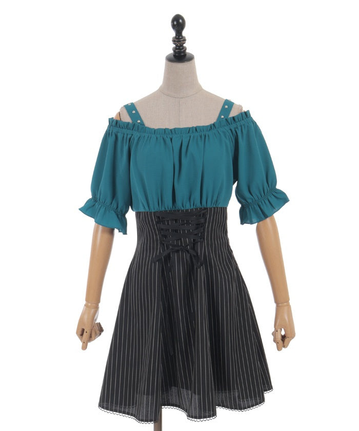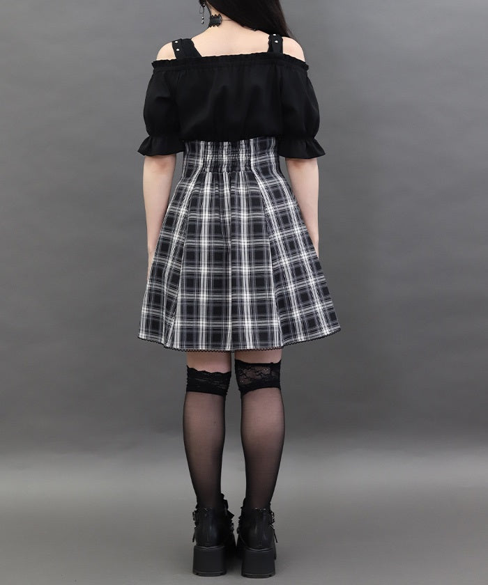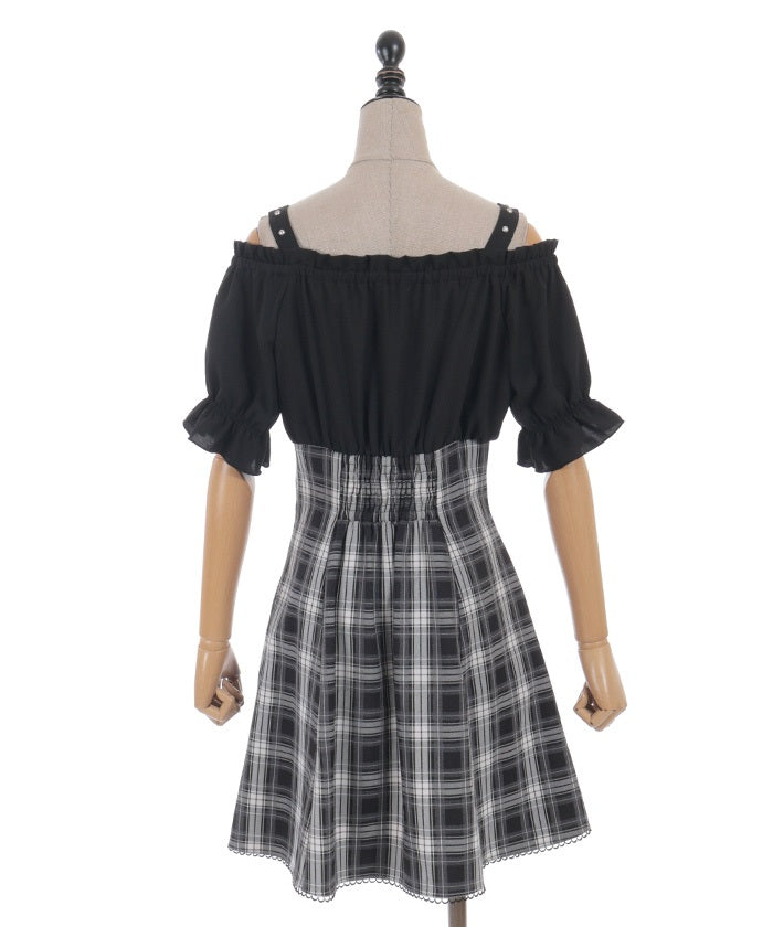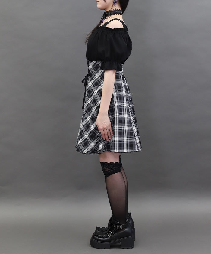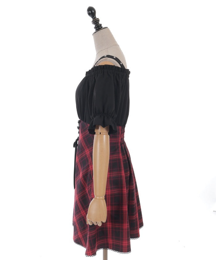 A one-piece dress that completes the styling of an off-shoulder blouse and skirt!