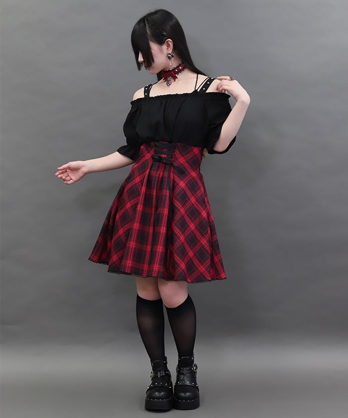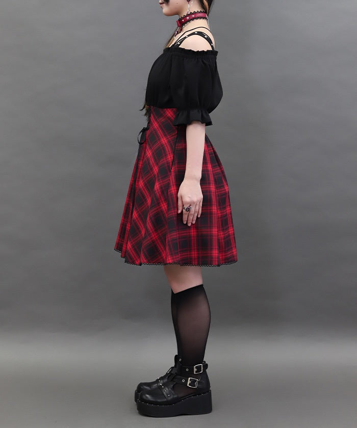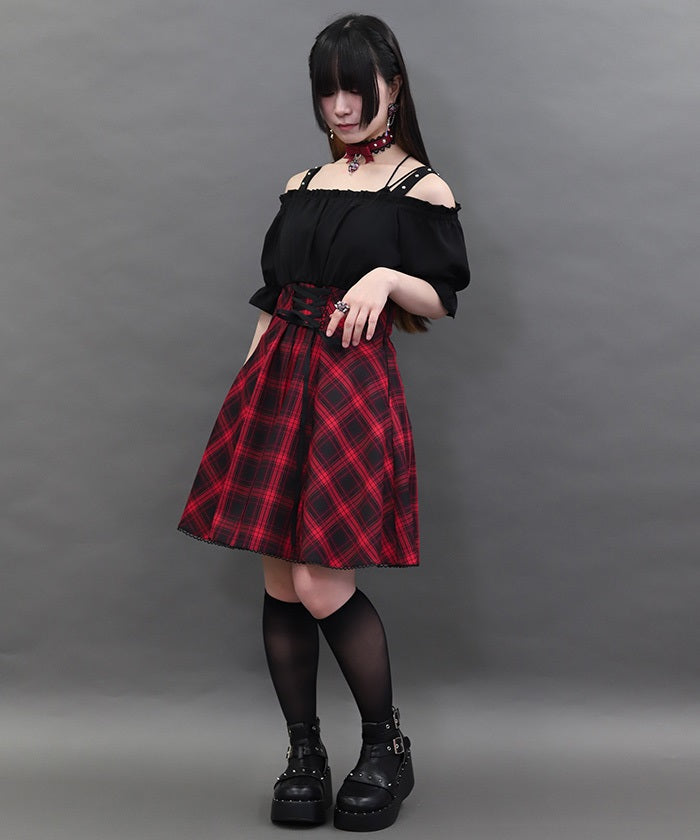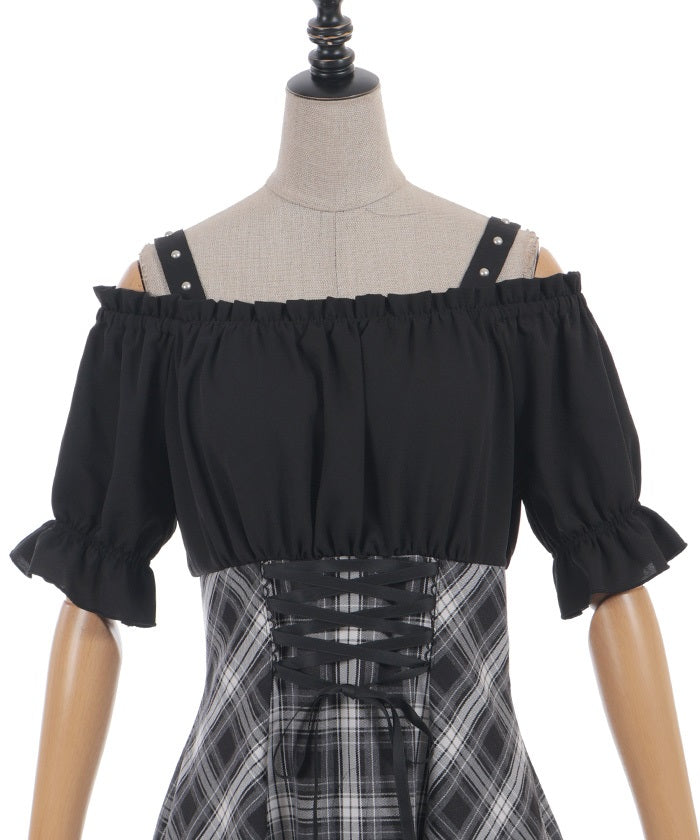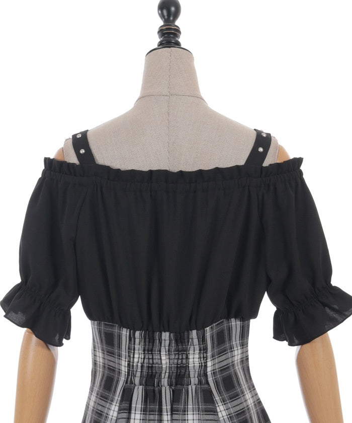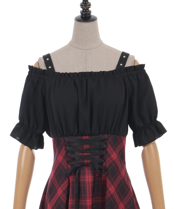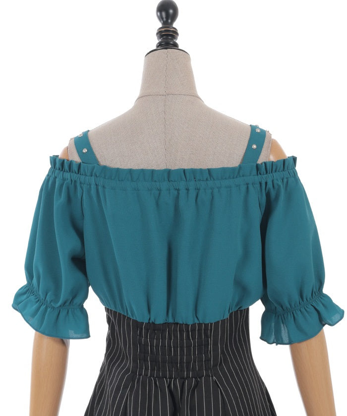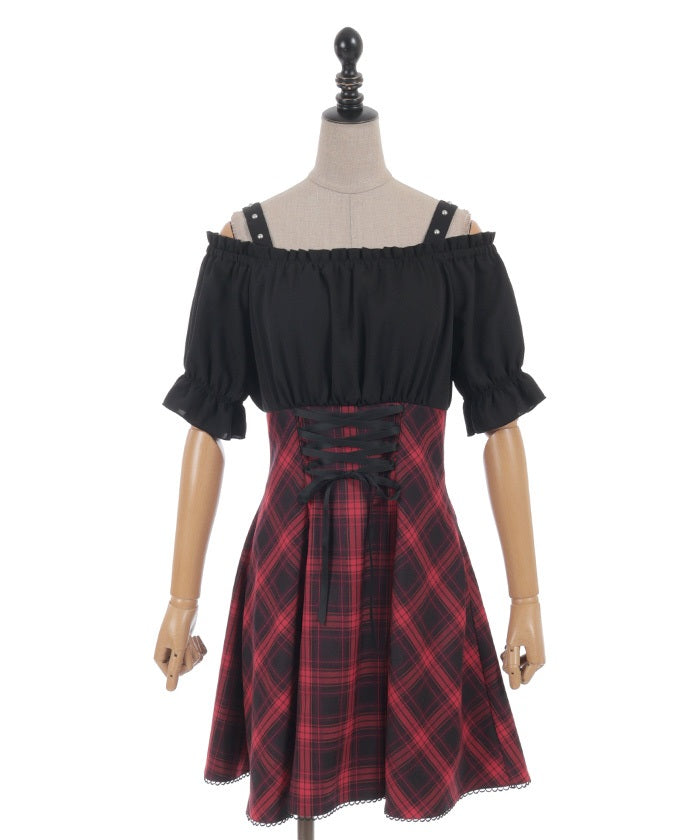 A one-piece dress that completes the styling of an off-shoulder blouse and skirt!