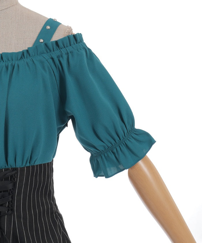 The top part can also be worn off-shoulder.