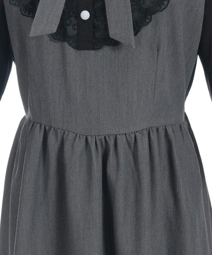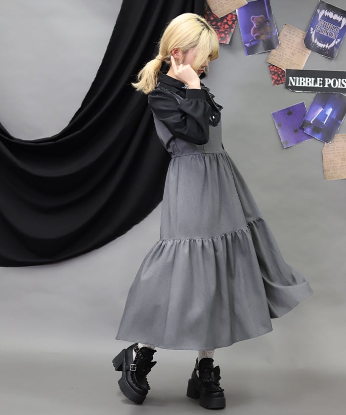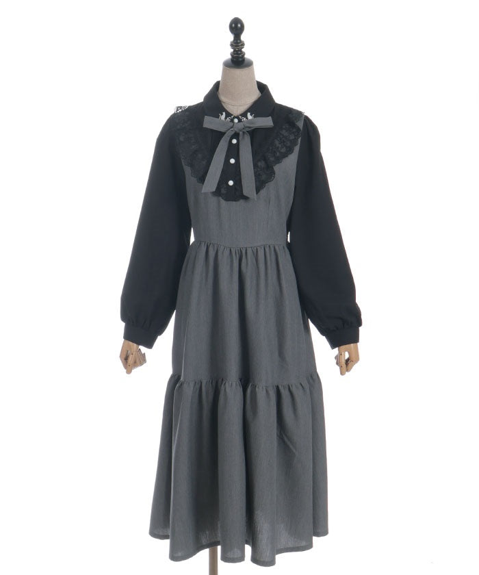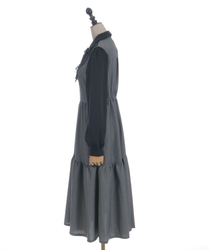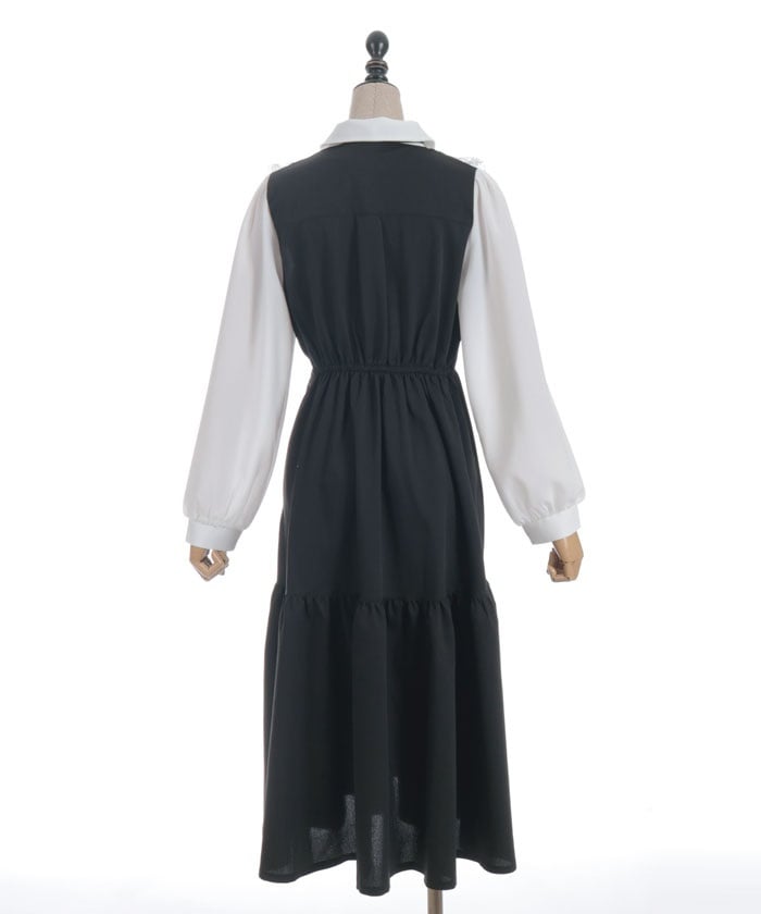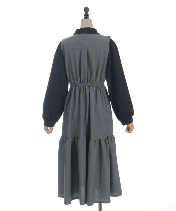 This long dress features a neat, uniform-style blocking design.