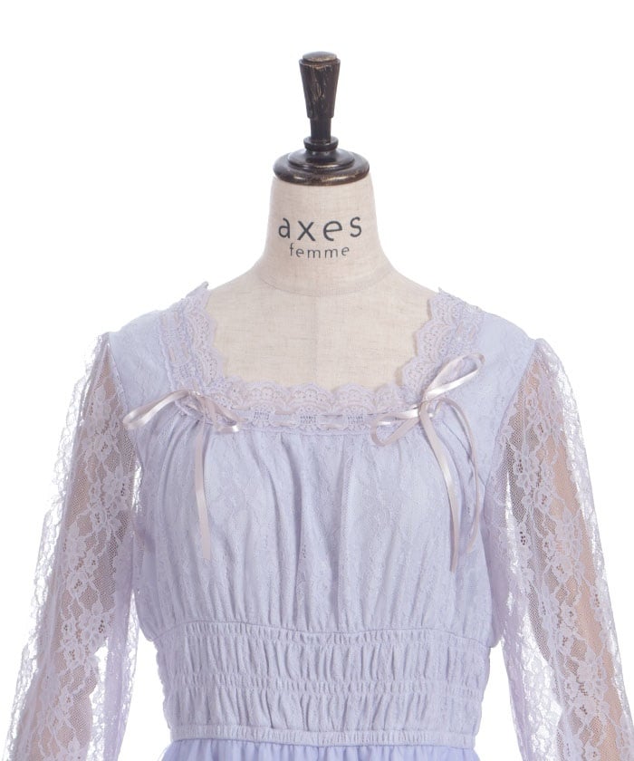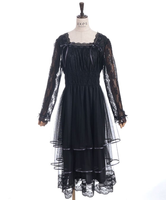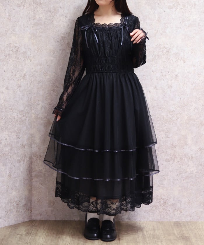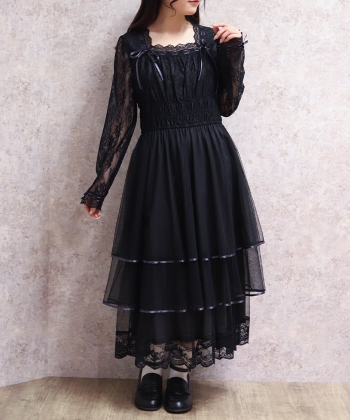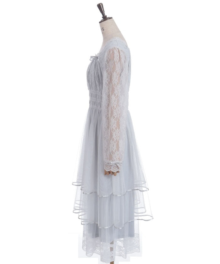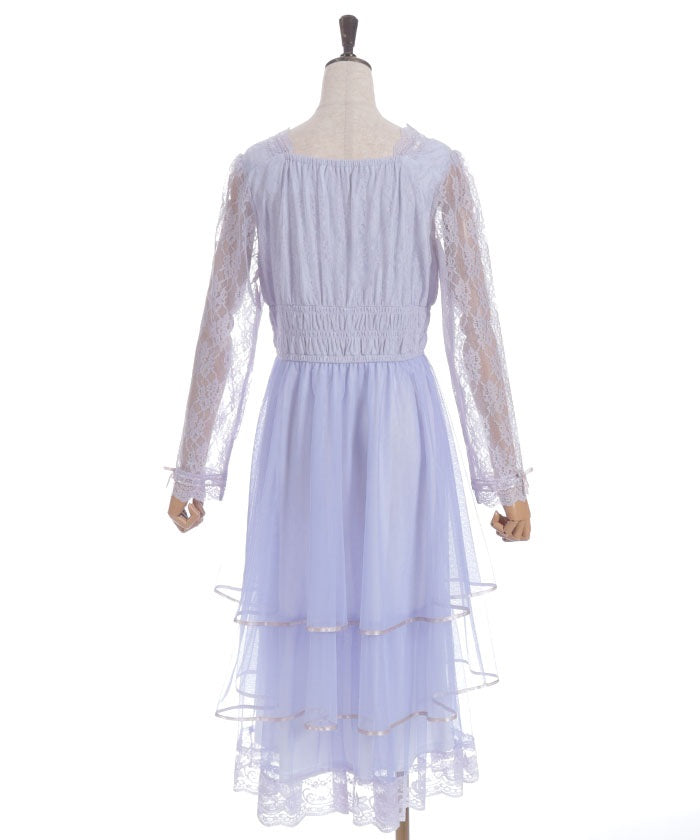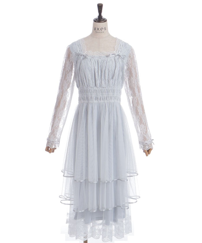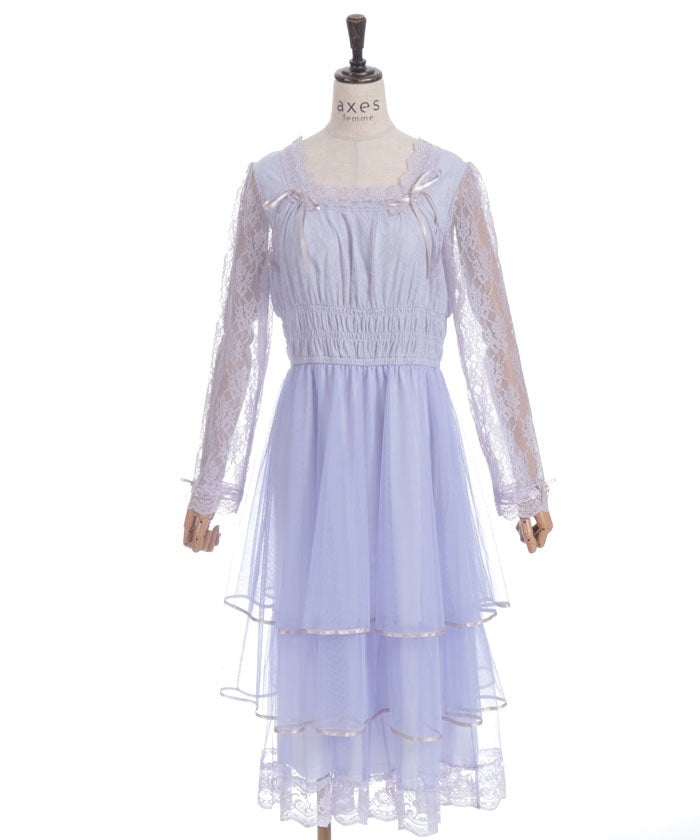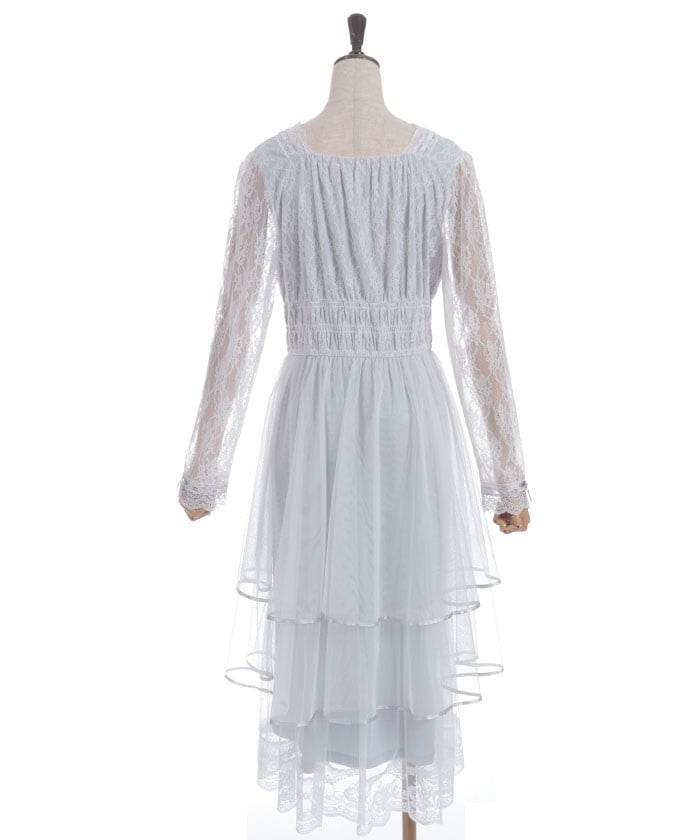 The delicate material lends an elegant impression, and the tiered silhouette that widens towards the hem creates a beautiful line. Its sweet yet demure design shows attention to detail.