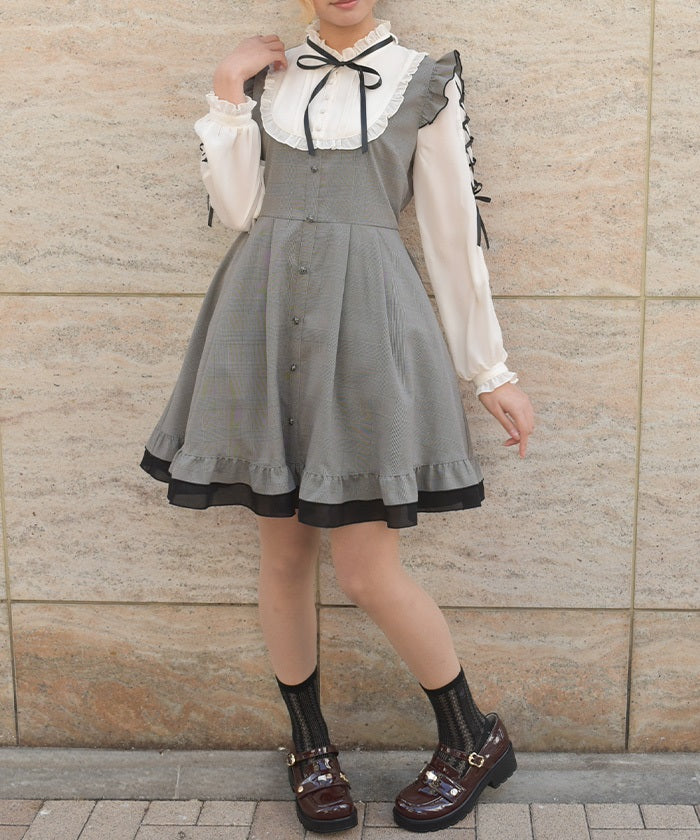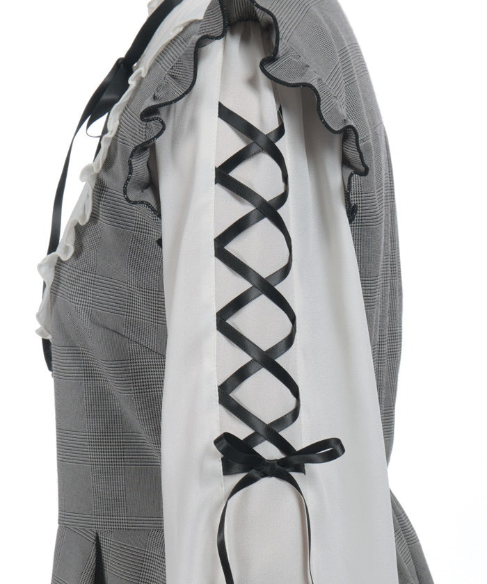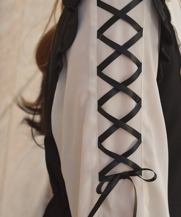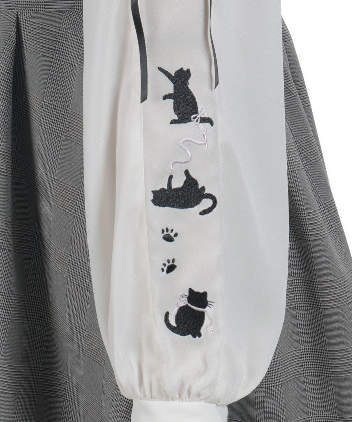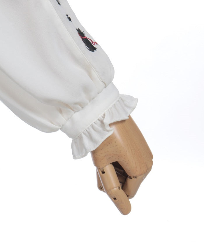 The cat embroidery on the sleeves adds a gentle accent, adding a charming touch with every movement. The overall silhouette is streamlined, with a subtle preppy vibe and classic details for a girly impression.