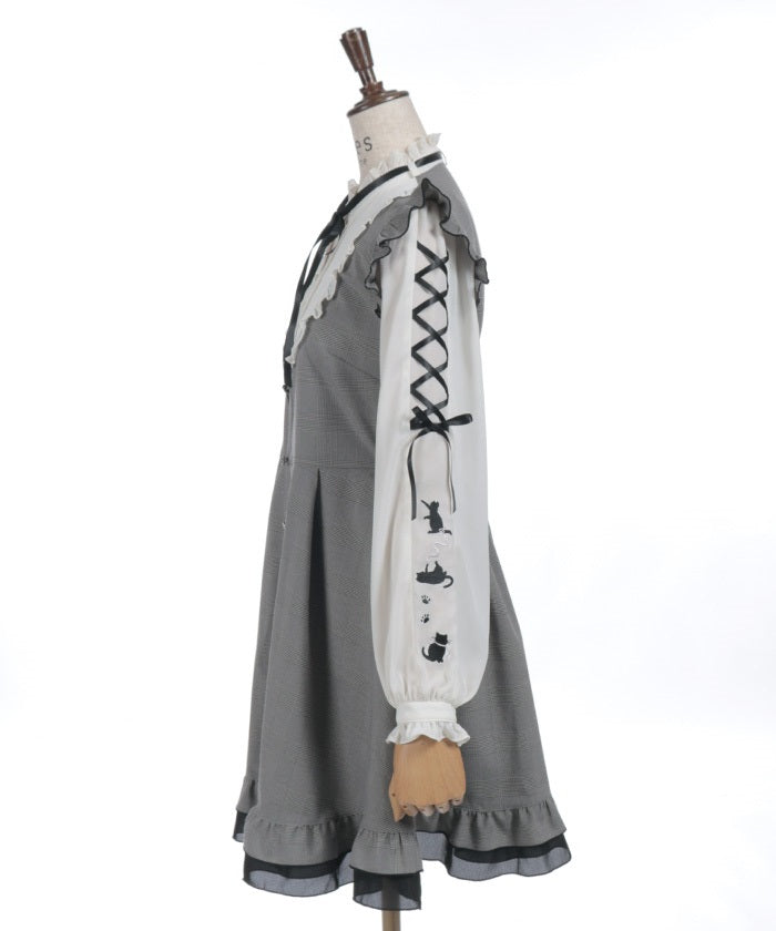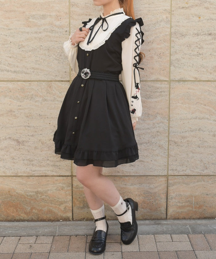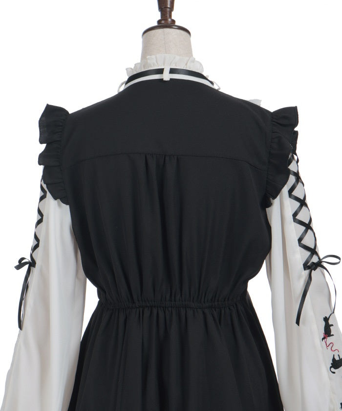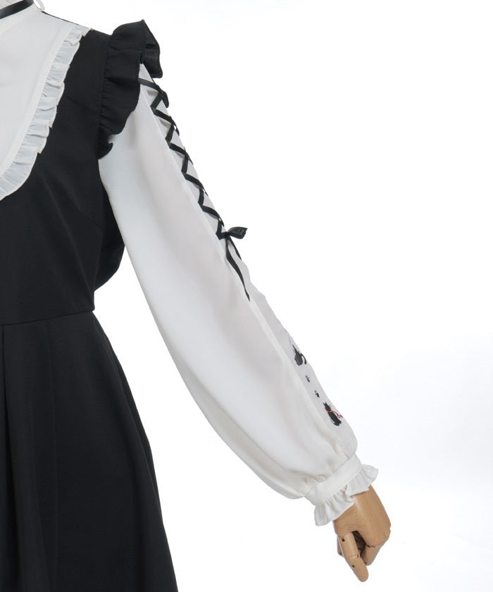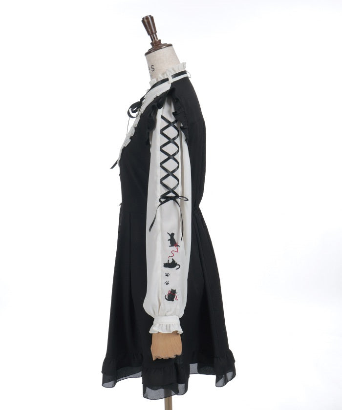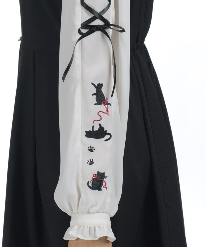This dress features playful cat embroidery on the sleeves, adding a touch of casual cuteness.