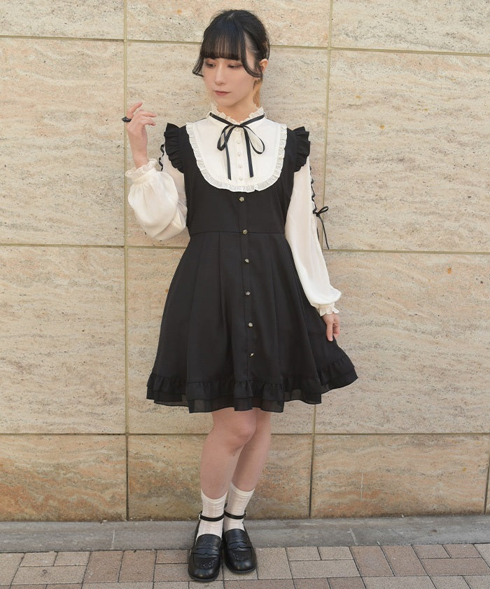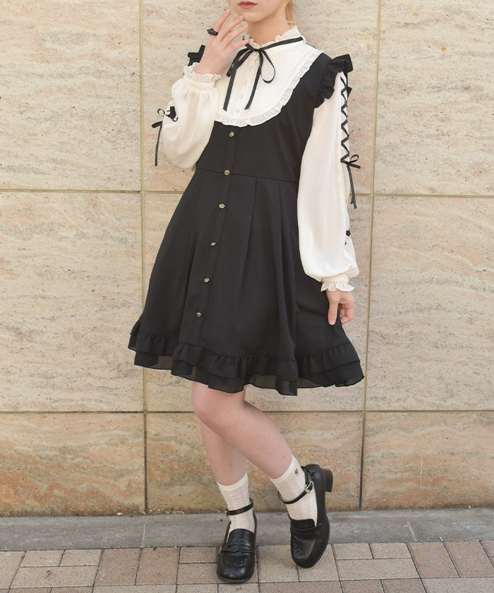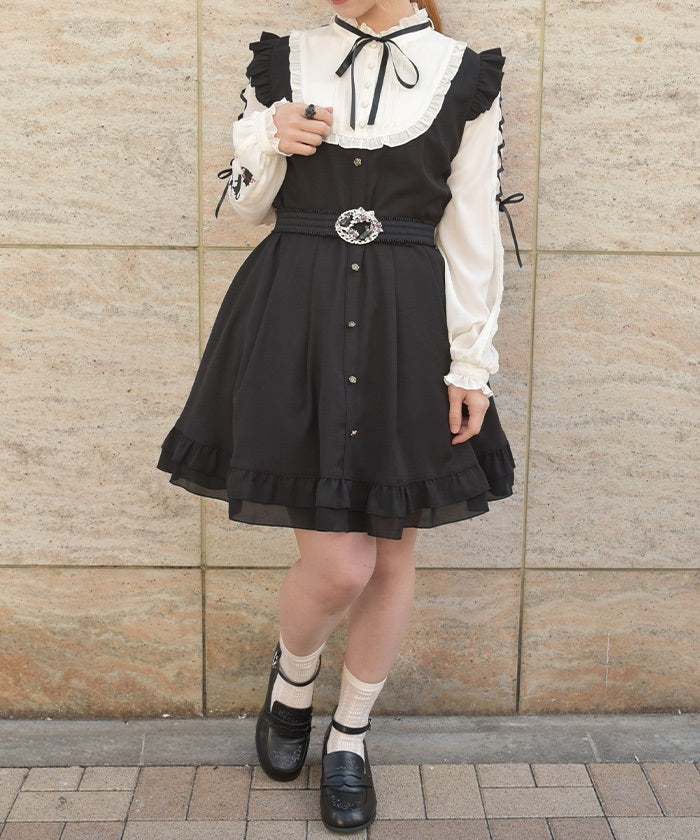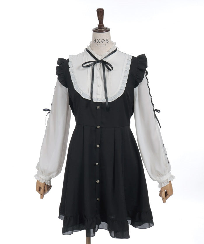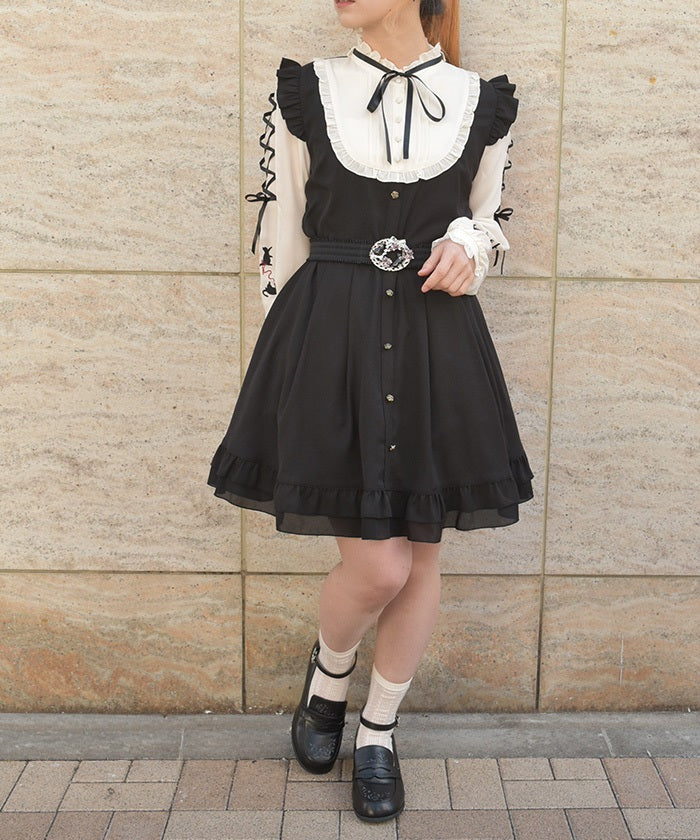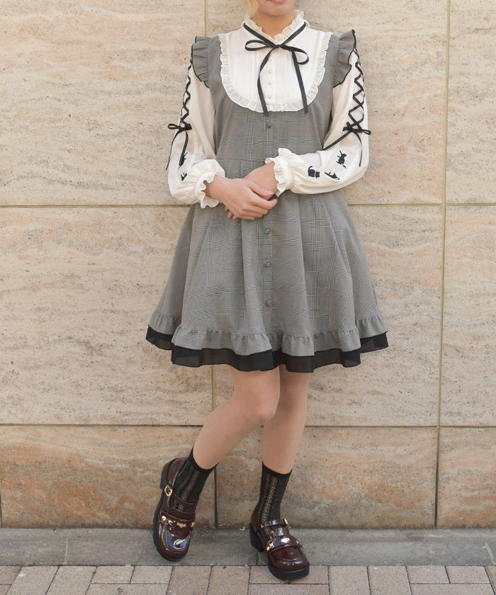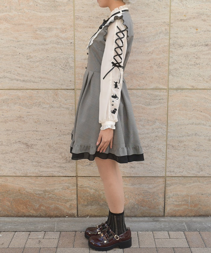 This dress features playful cat embroidery on the sleeves, adding a touch of casual cuteness.
