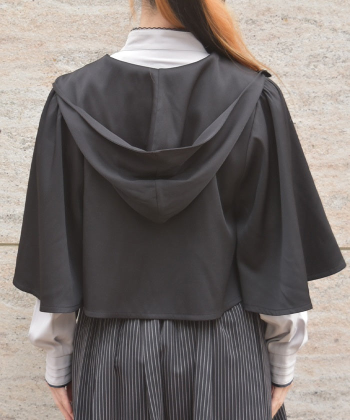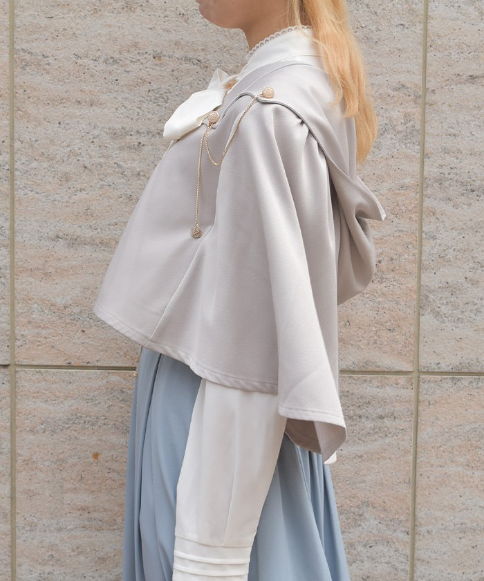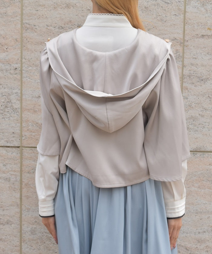 The compact silhouette and hood add a casual touch to a sophisticated look. The front button detail adds a touch of elegance, making it a lightweight piece to throw on.