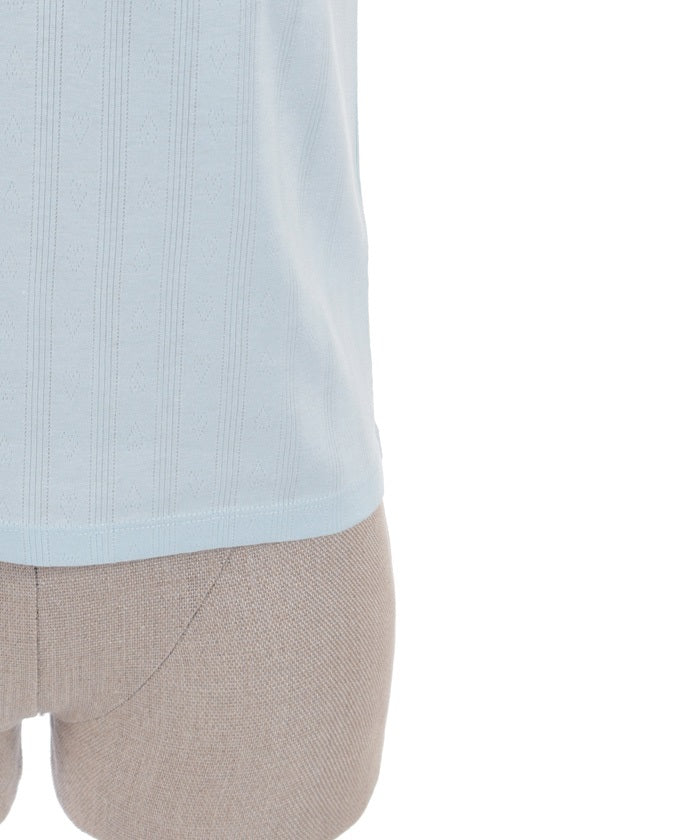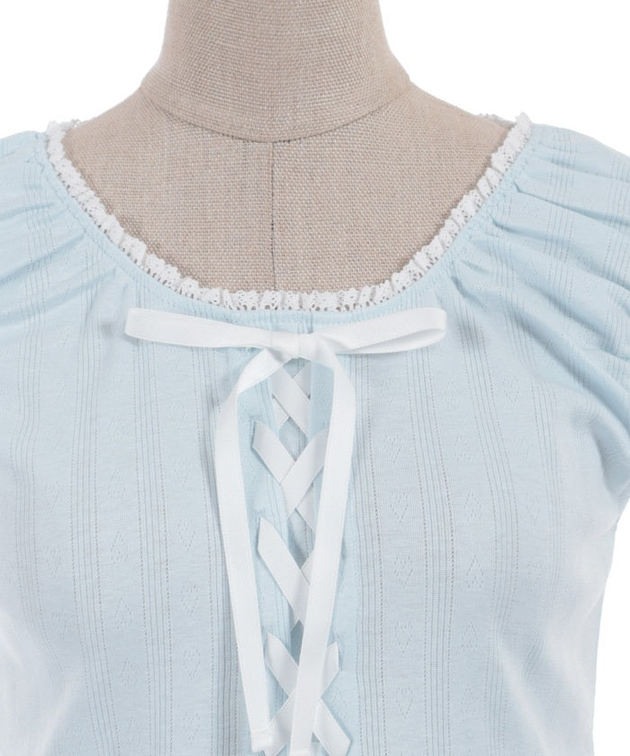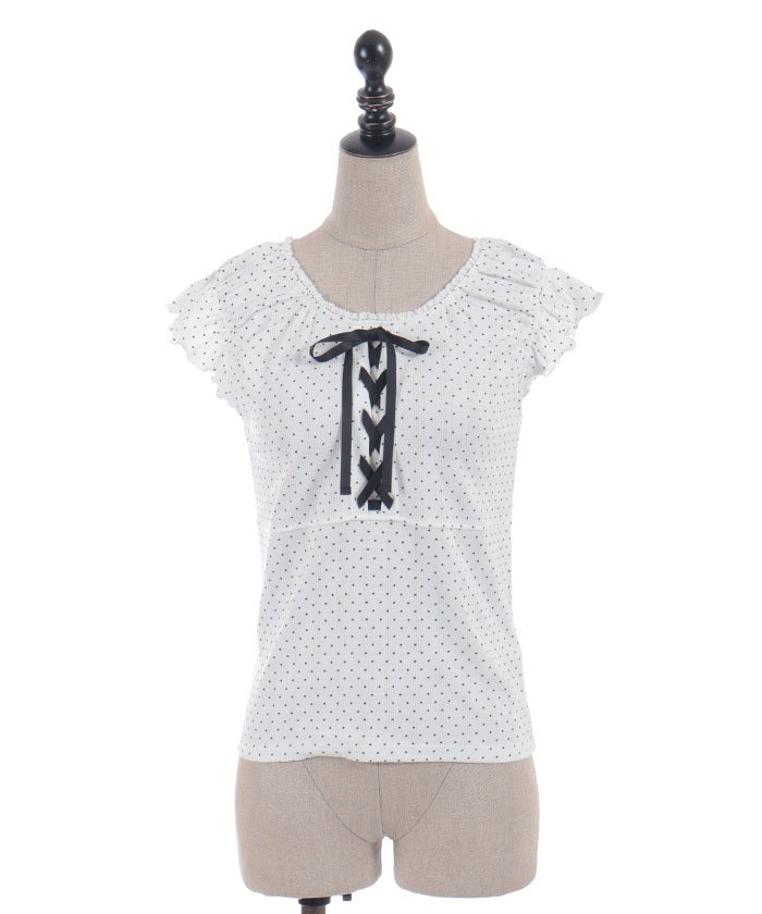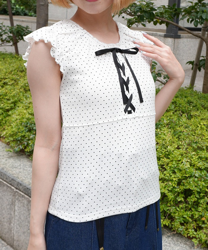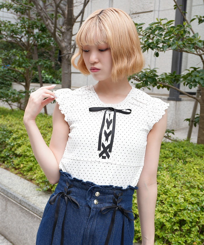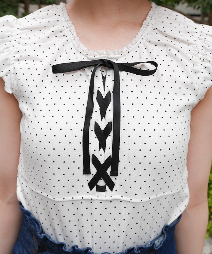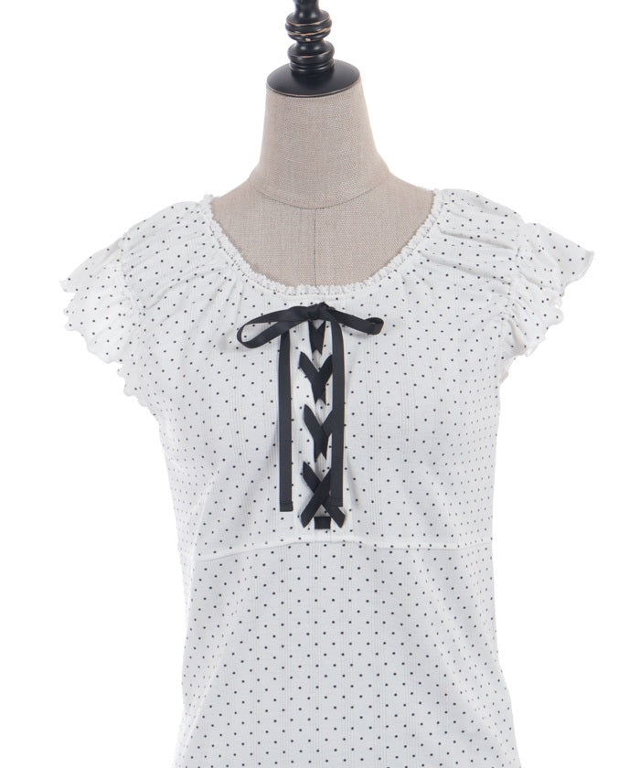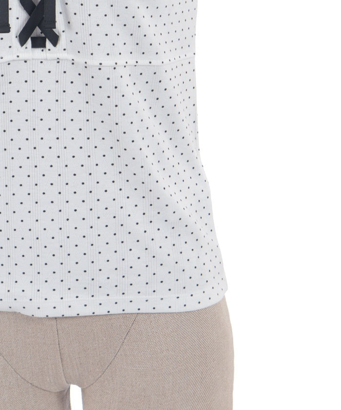 Available in two colors: a summery light blue and white with a trendy polka dot print.
