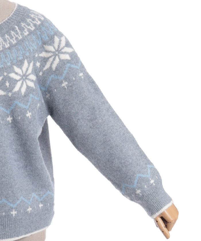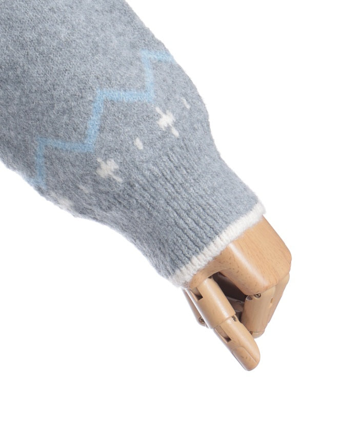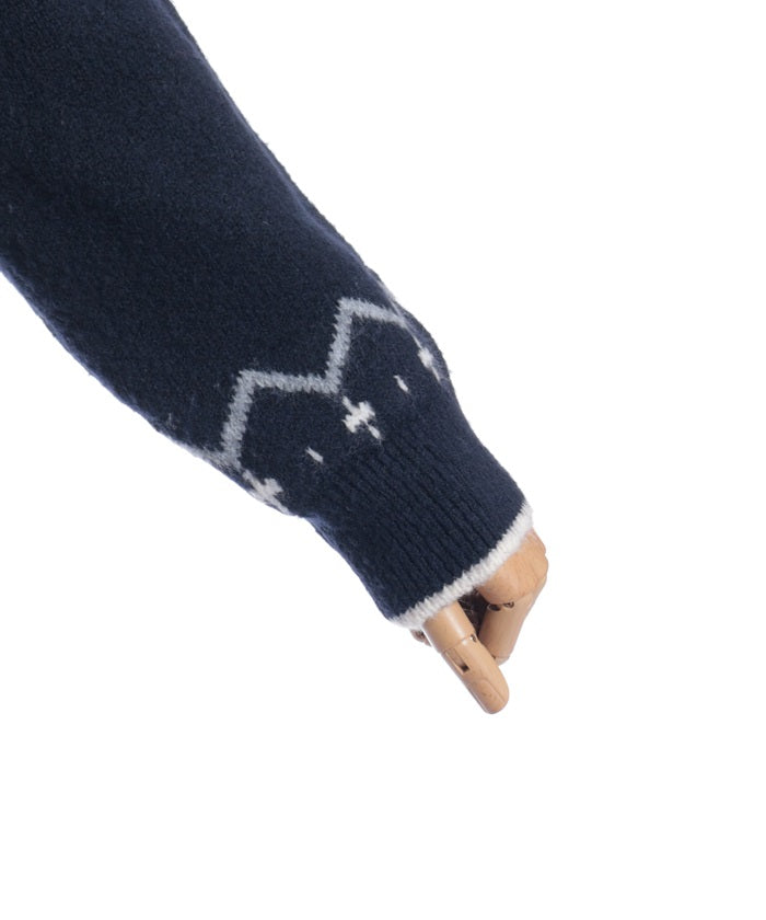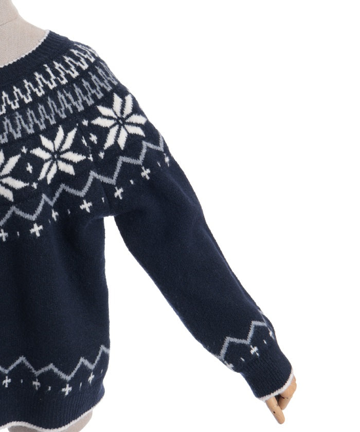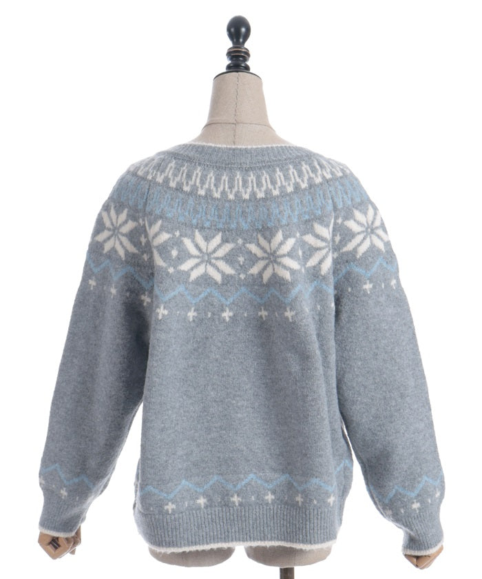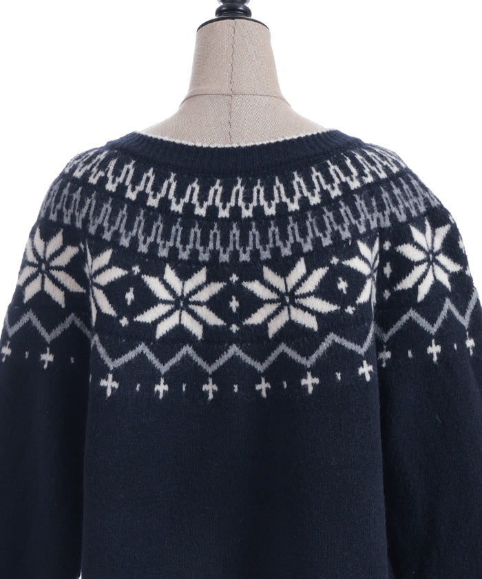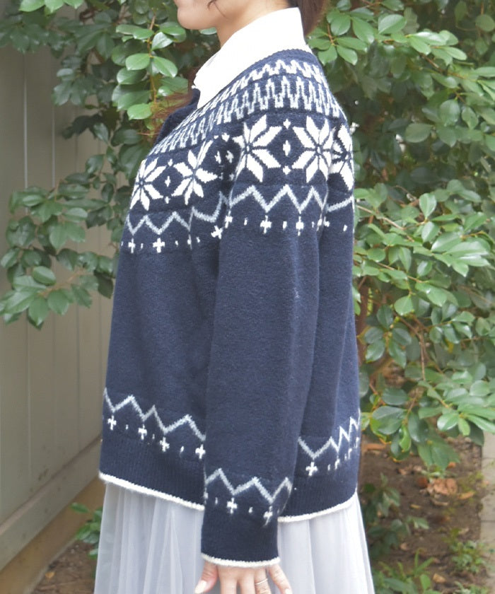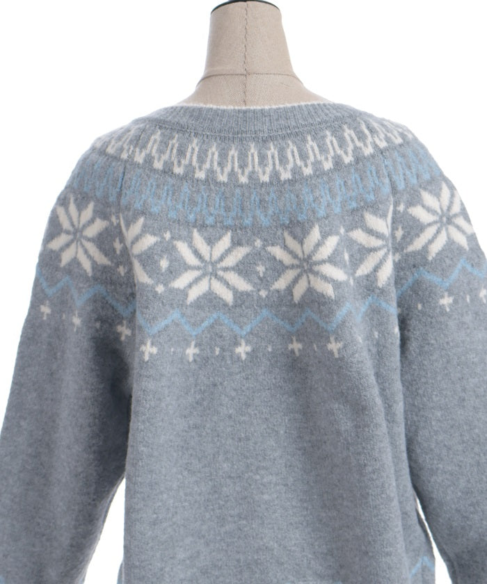 A jacquard cardigan featuring an eye-catching Nordic-inspired pattern.