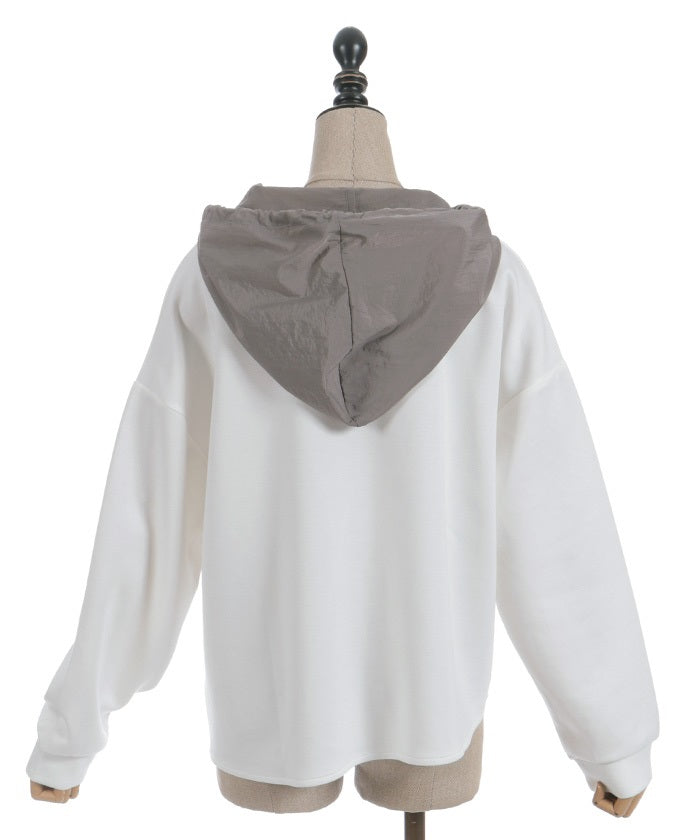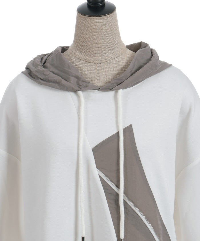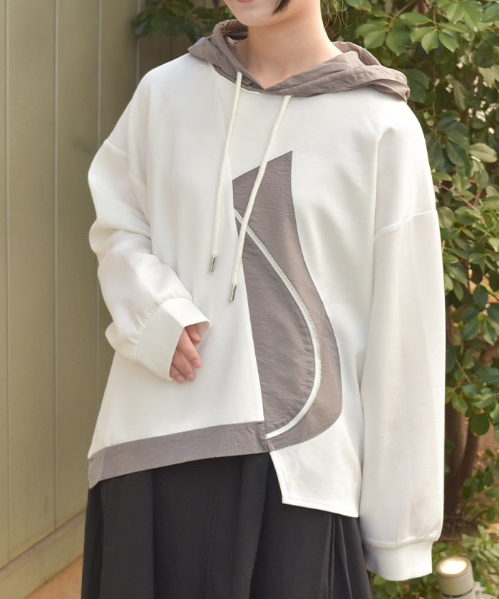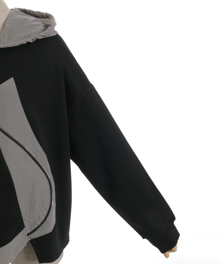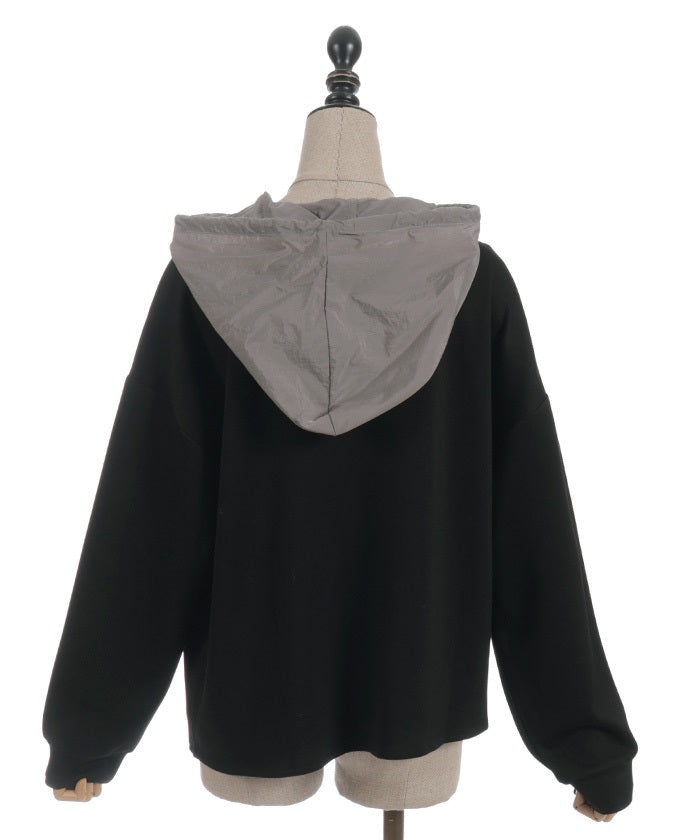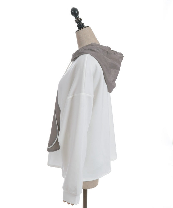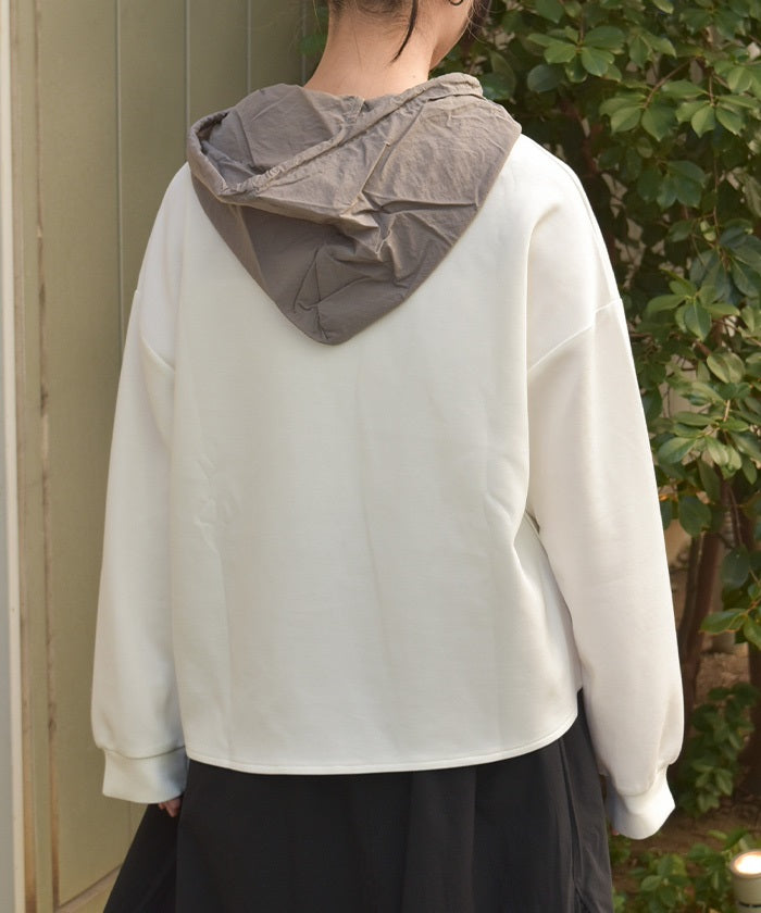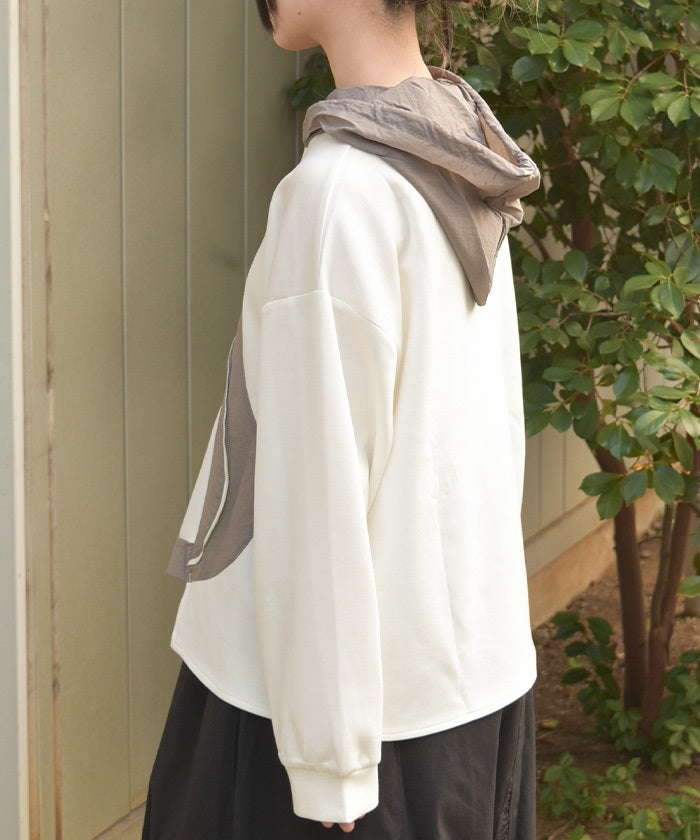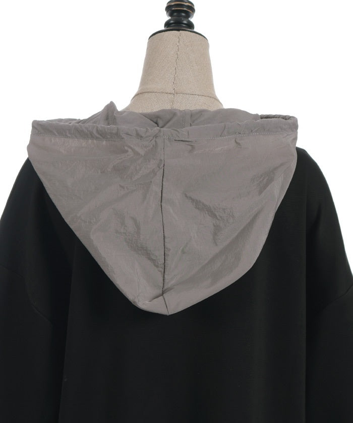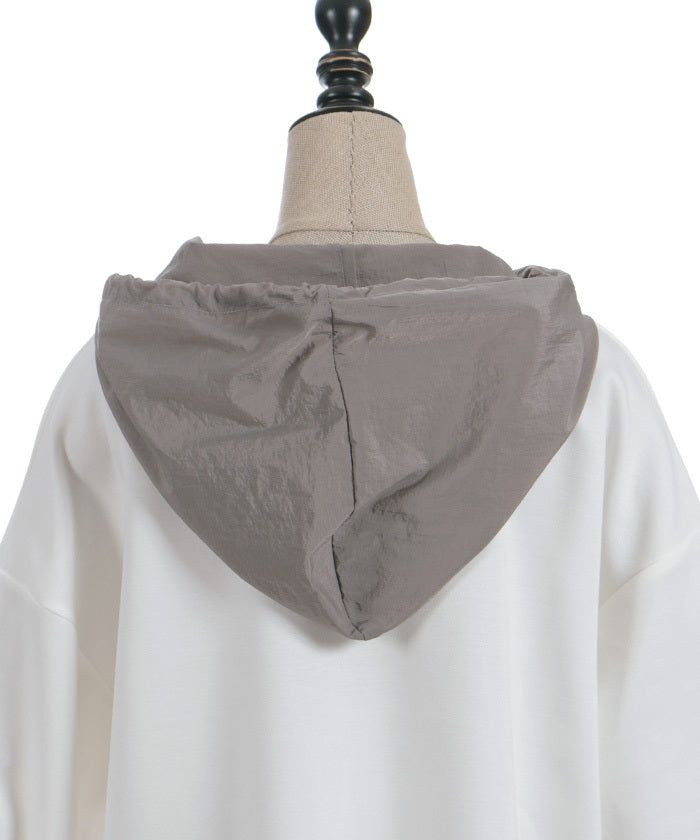 This mixed-material hoodie features a simple yet striking design.