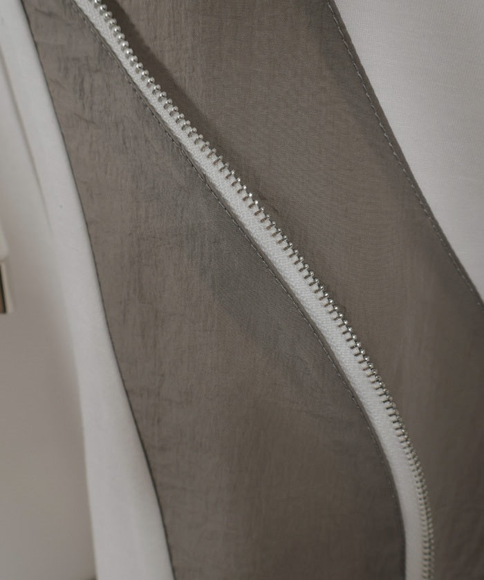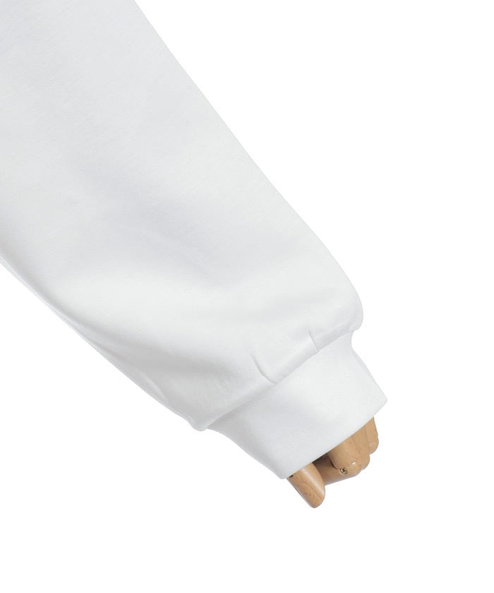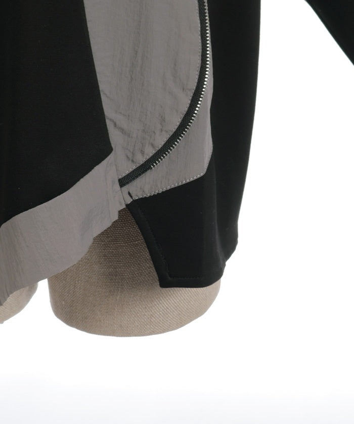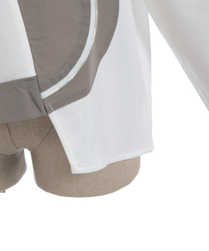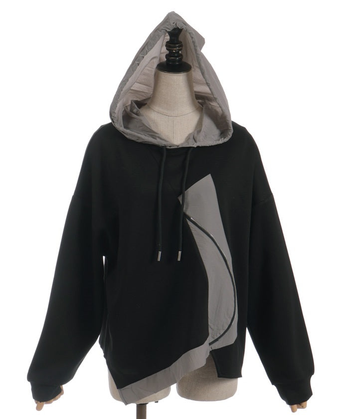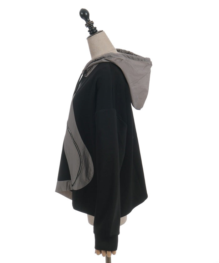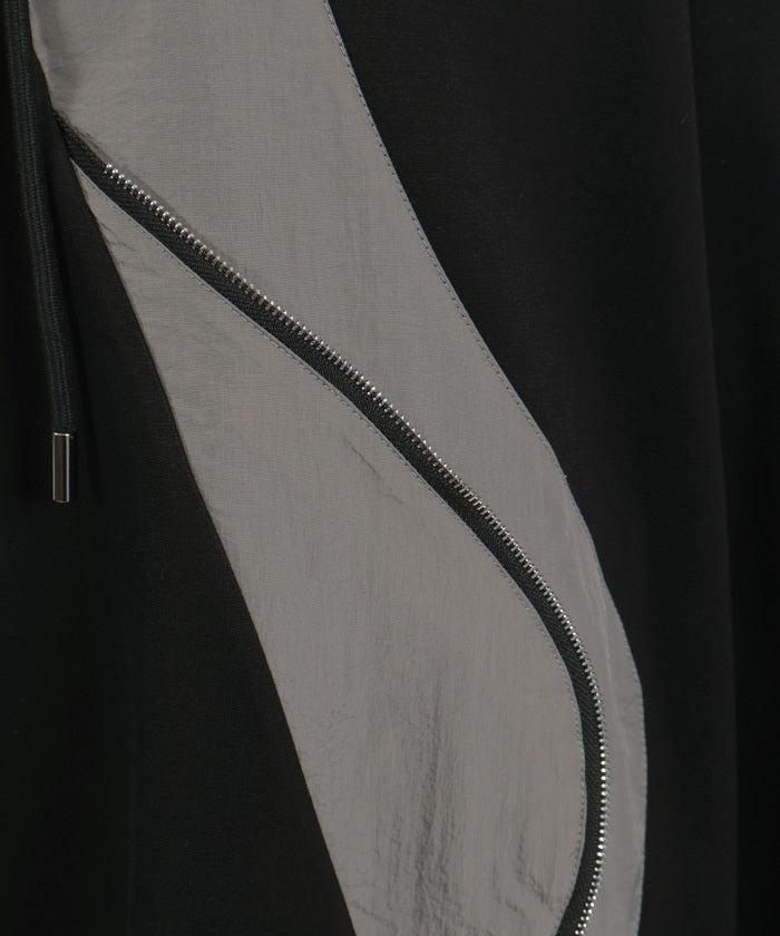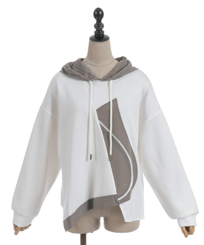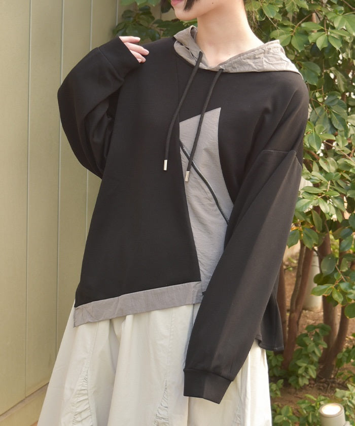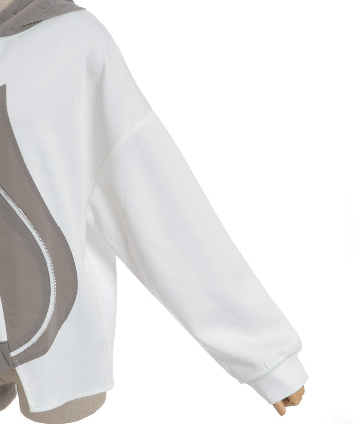 This mixed-material hoodie features a simple yet striking design.
