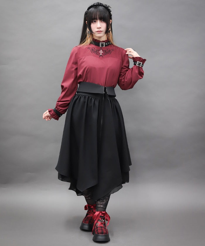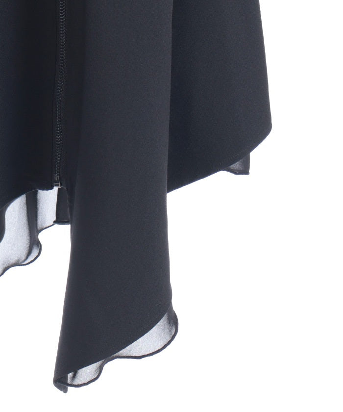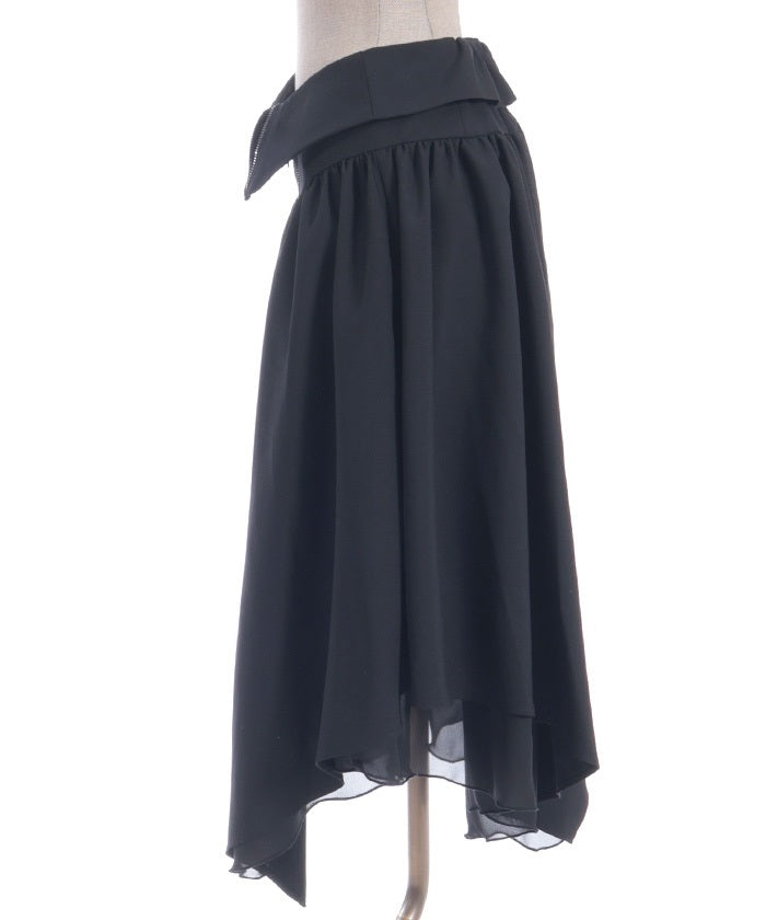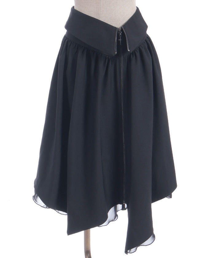 An item dripping with high-fashion flair in its asymmetrical hem and zipper design.