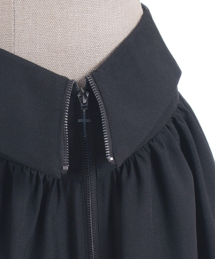 The cross charm on the zipper is the highlight.