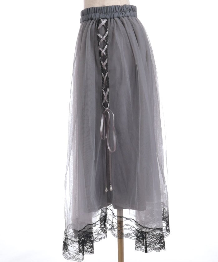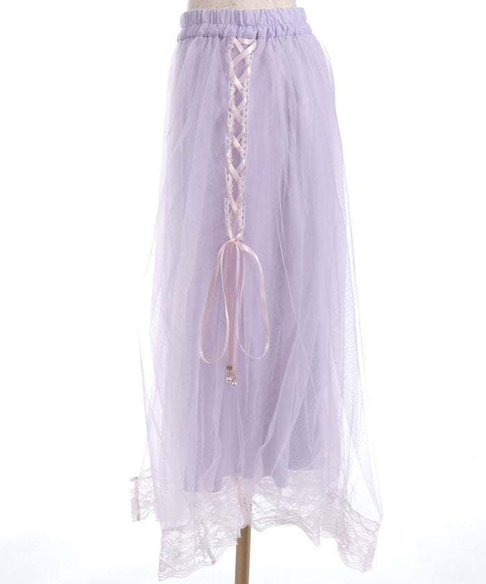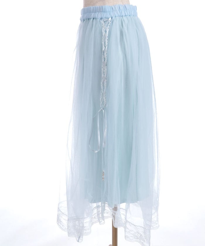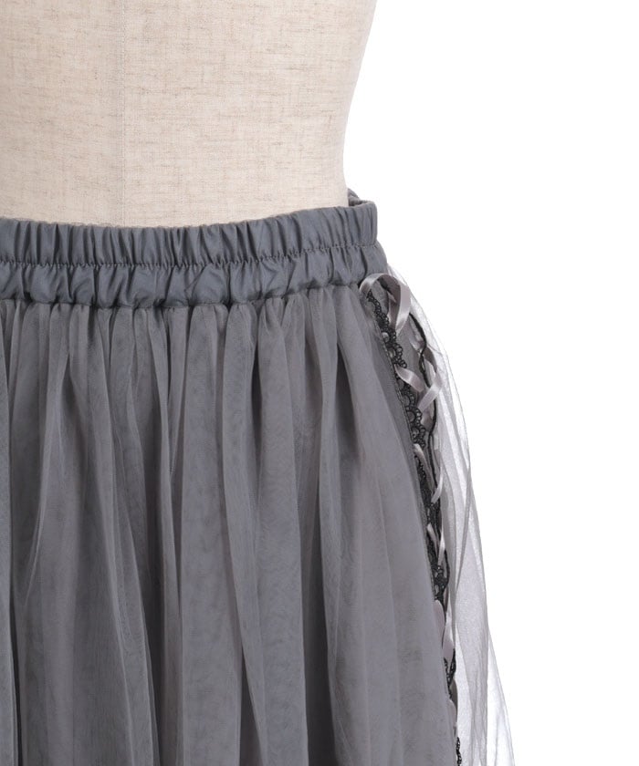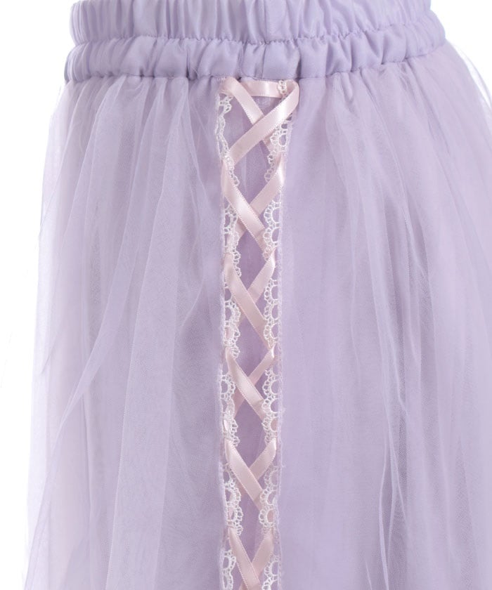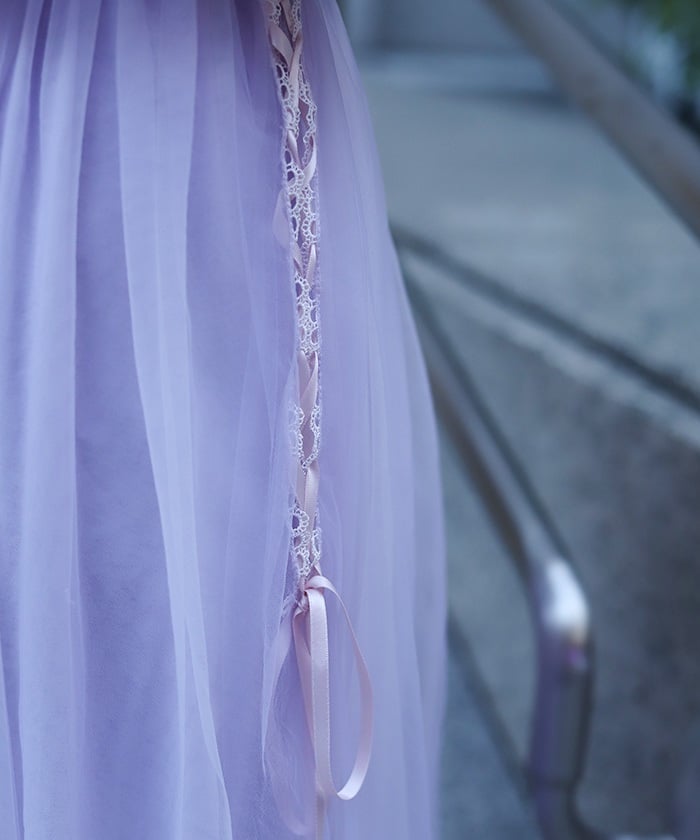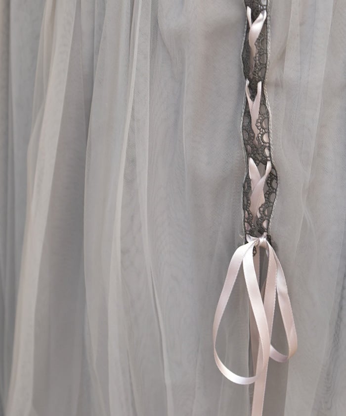 The soft tulle flows softly, creating a light, flowing effect. The lace at the hem and lace-up sides add a subtle touch, adding a touch of elegance to the sweet look.