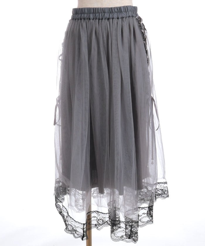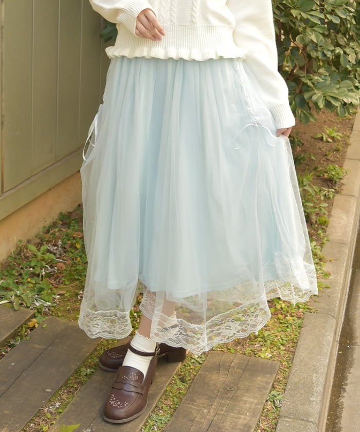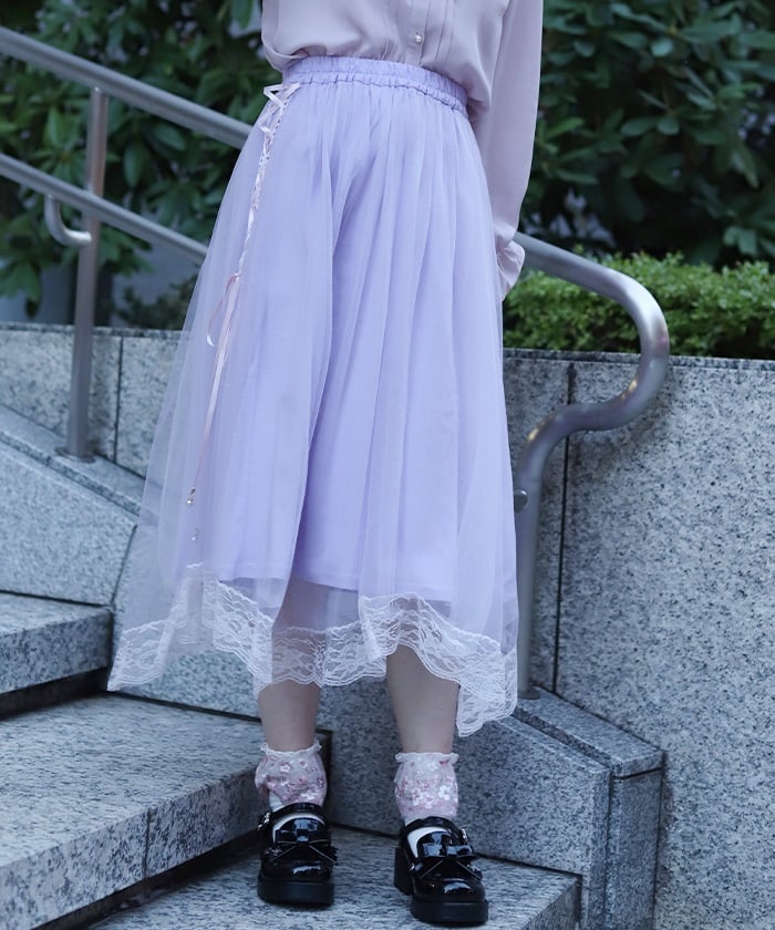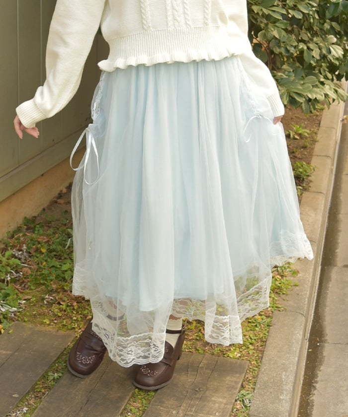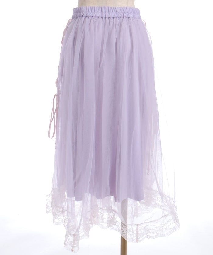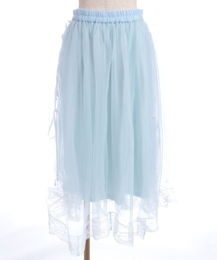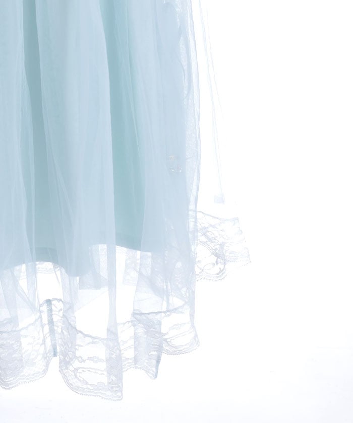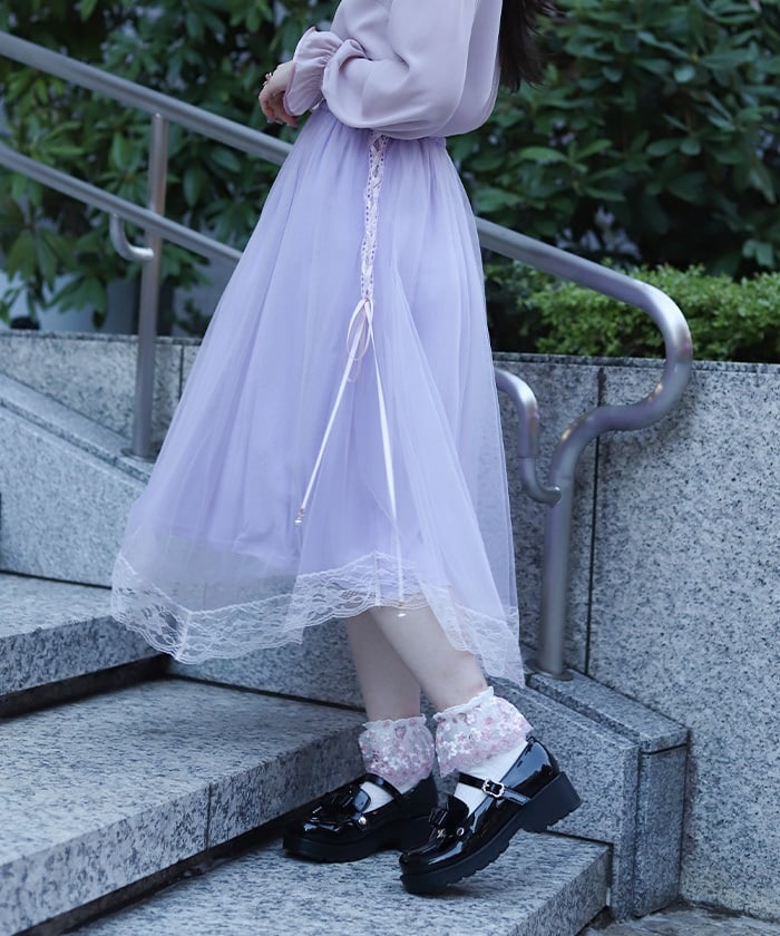 The soft tulle flows softly, creating a light, flowing effect. The lace at the hem and lace-up sides add a subtle touch, adding a touch of elegance to the sweet look.