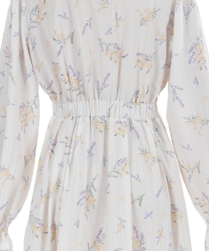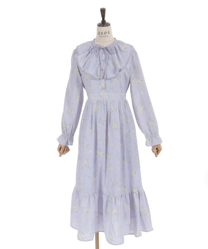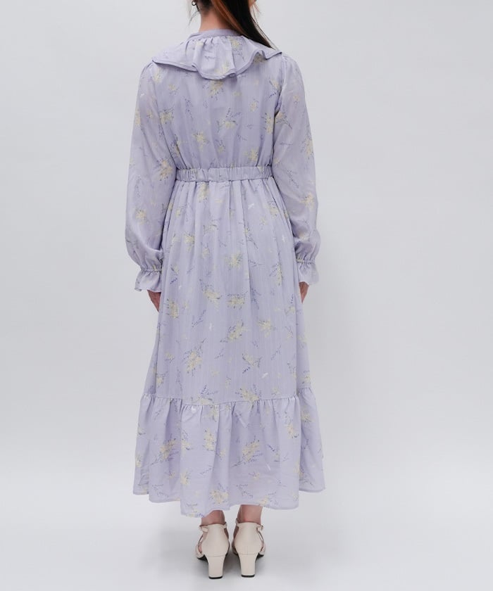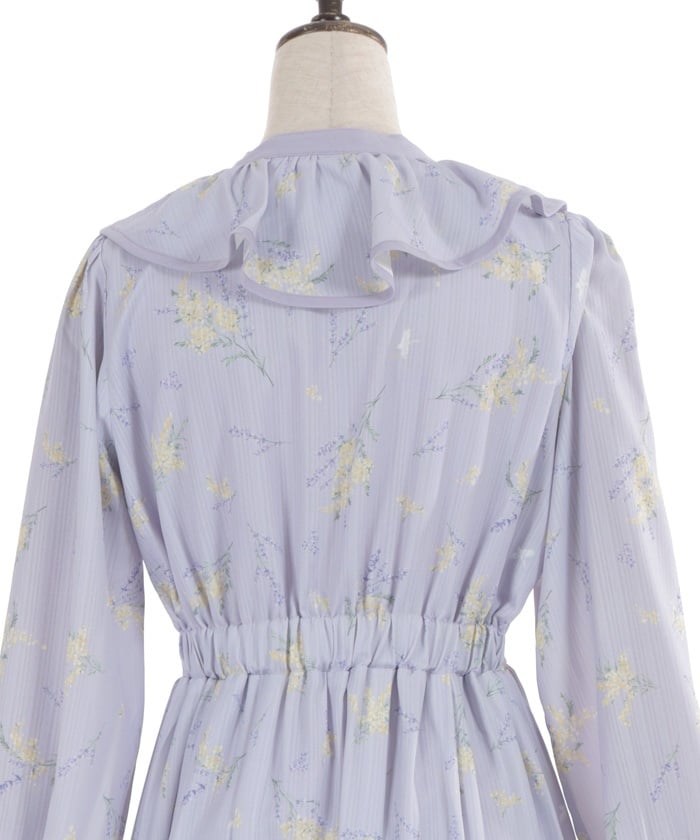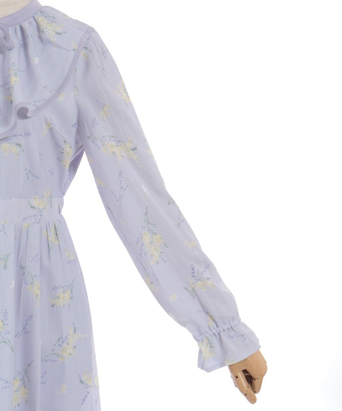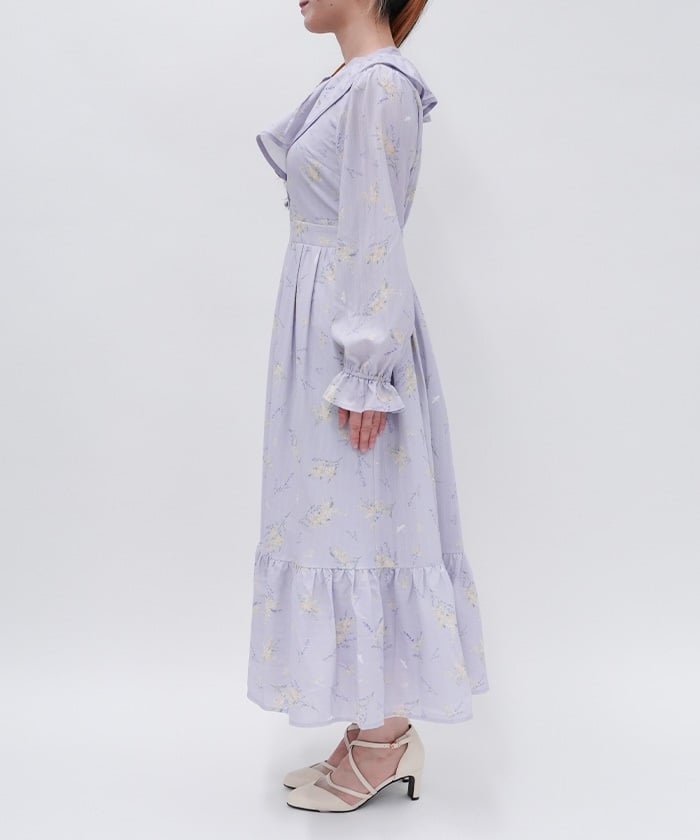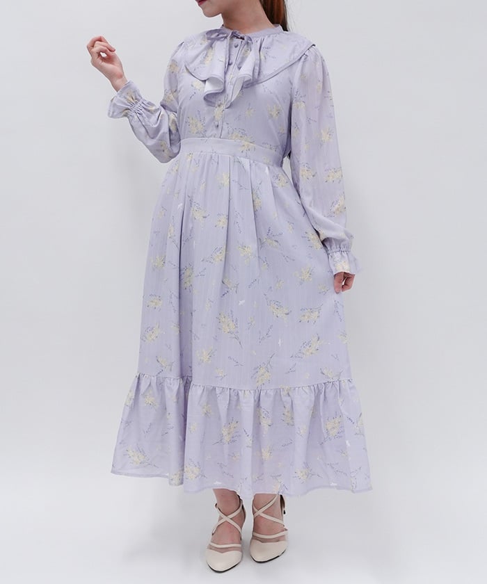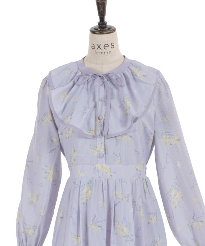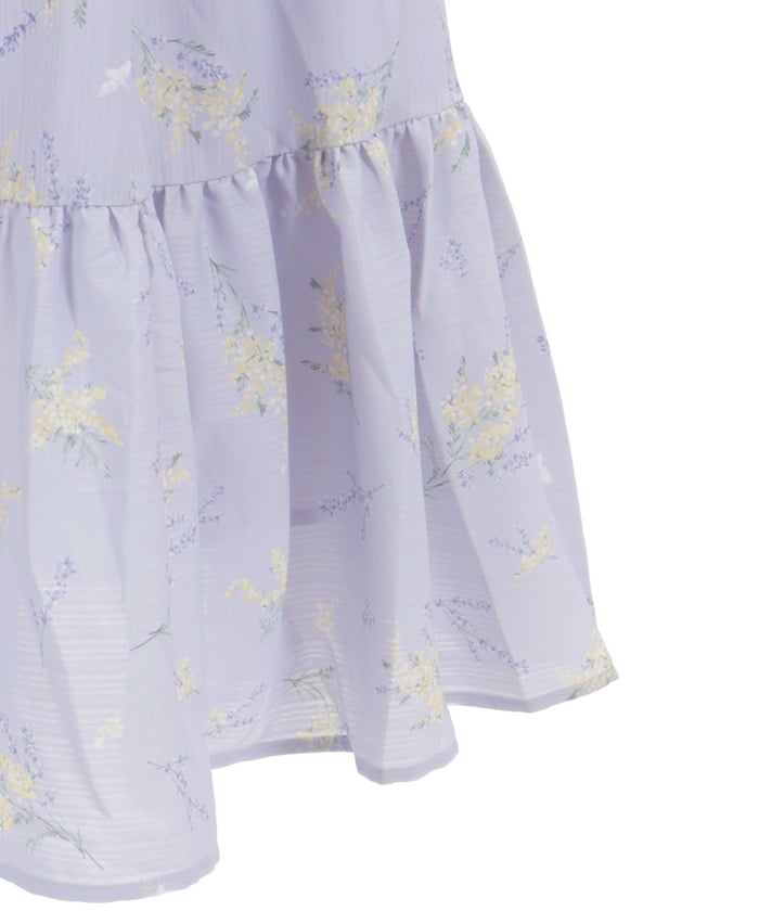 This dress features a gorgeous mimosa and lavender pattern that catches your eye.